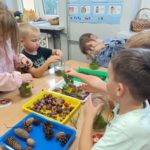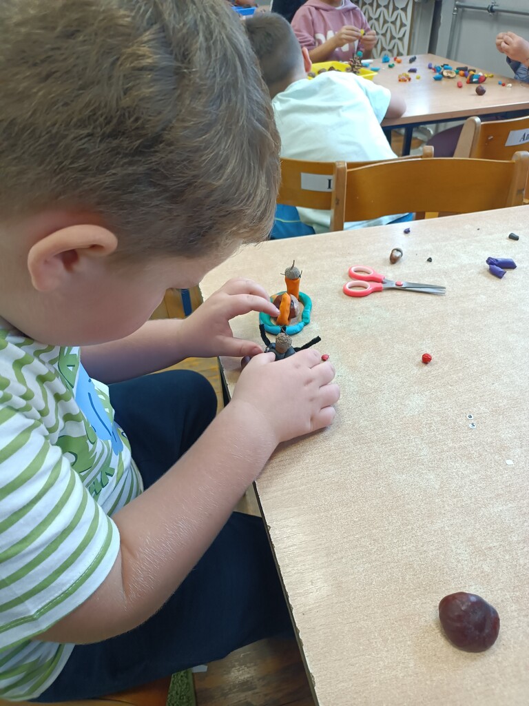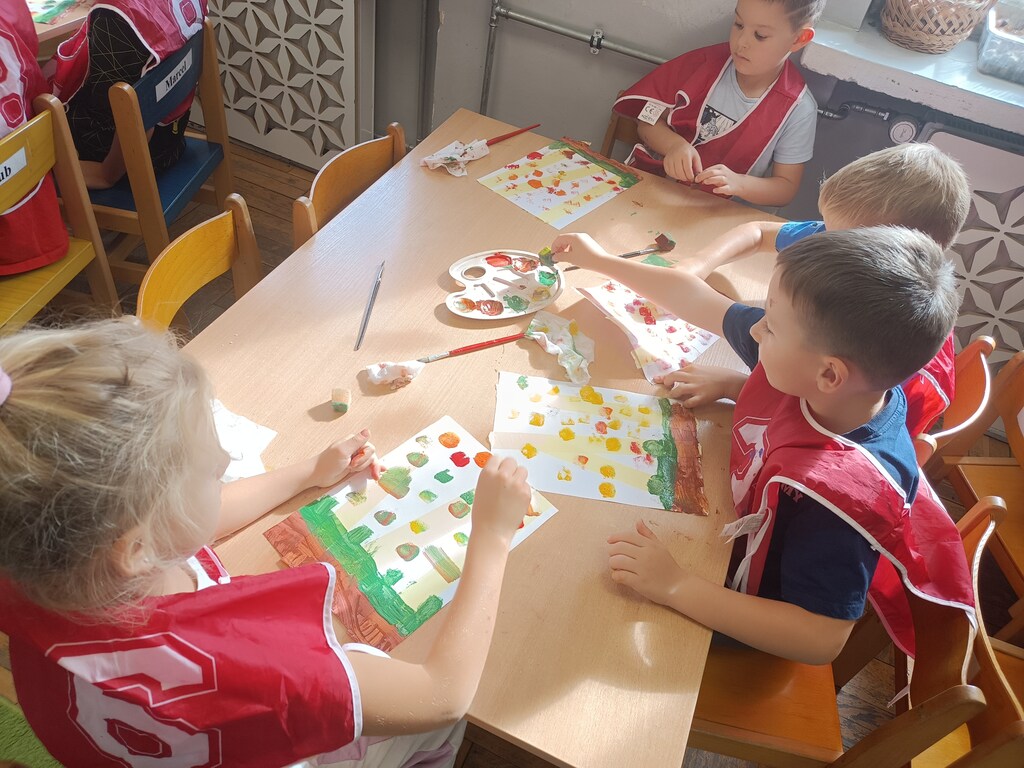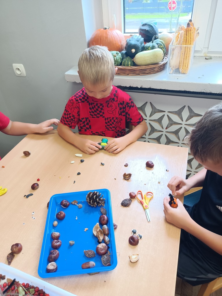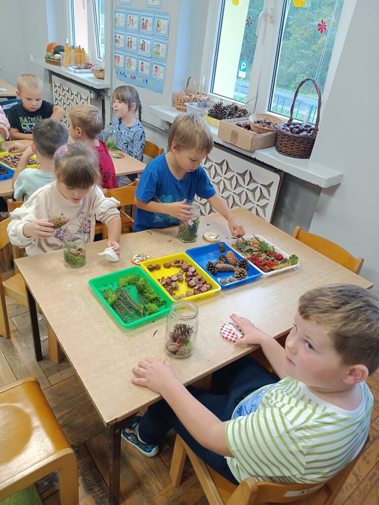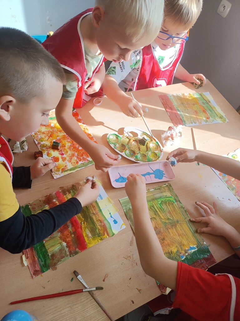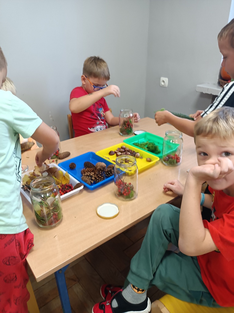Jesień rozgościła się u nas na dobre. Przedszkolaki w ostatnim czasie pomogły jej zadomowić się w przedszkolu – dzieci nie tylko „przyprowadziły” jesień do sali, zbierając jej dary 🍎🍂, ale też wykorzystały je kreatywnie w różnych aktywnościach. Powstała m.in. ścieżka sensoryczna 👣, „Jesień w słoiku” zamknięta w muchomorku 🍄, oraz różne prace plastyczne🎨 , a nawet tworzyliśmy leśne zwierzątka, takie jak jeżyki 🦔 i pajączki 🕷️. Wszyscy świetnie się przy tym bawiliśmy!