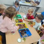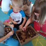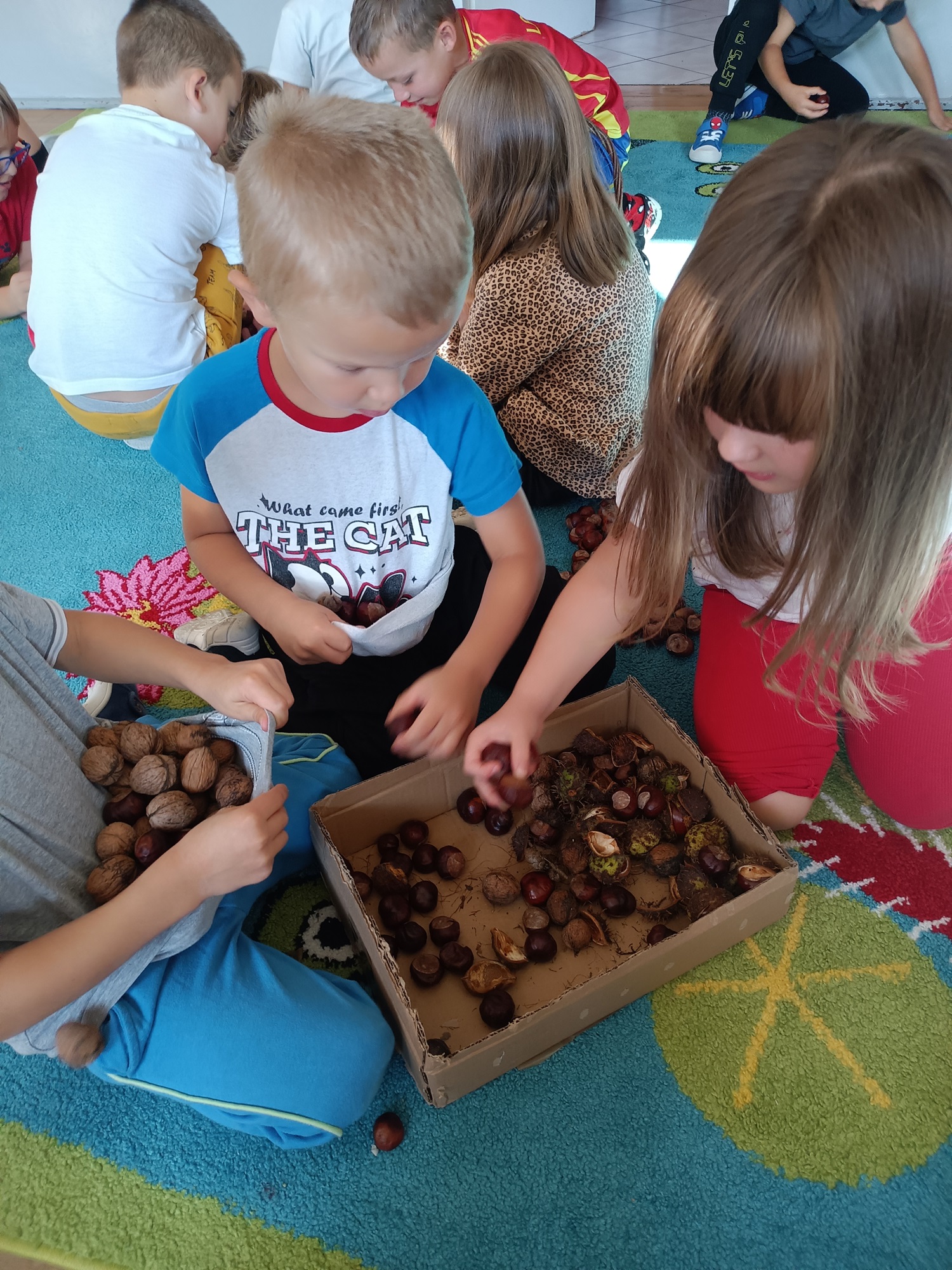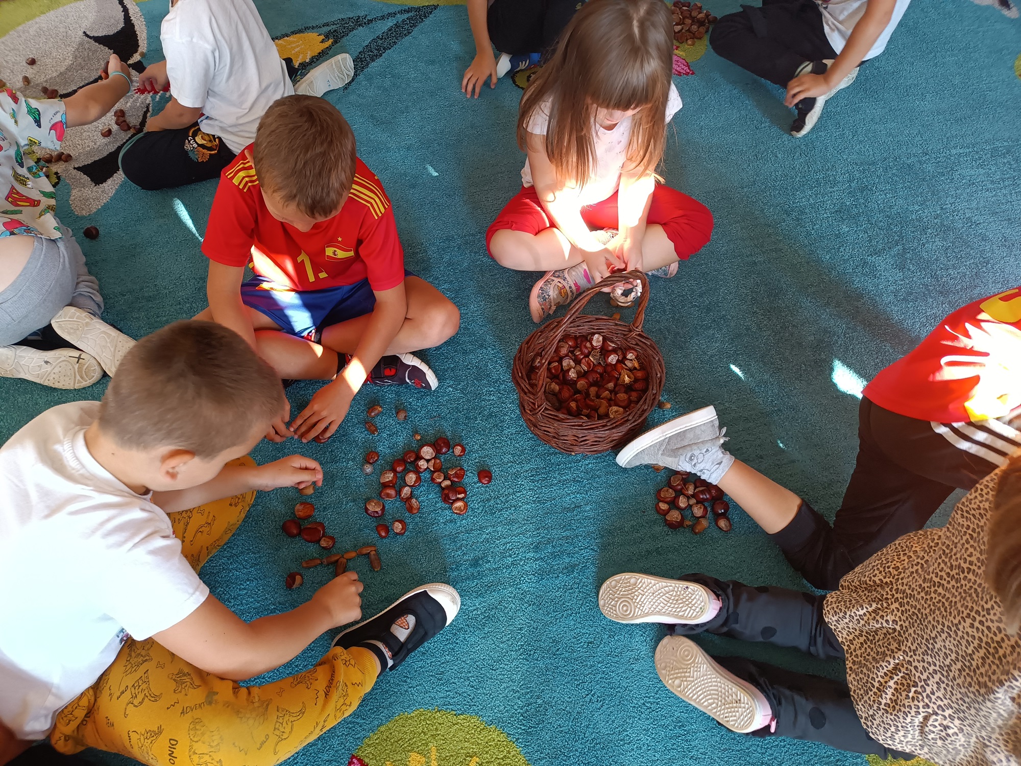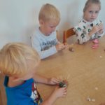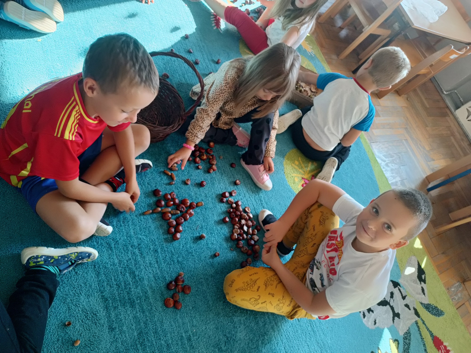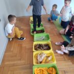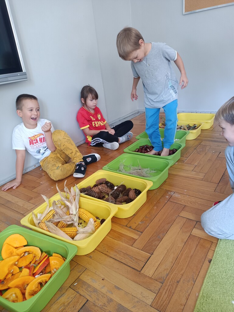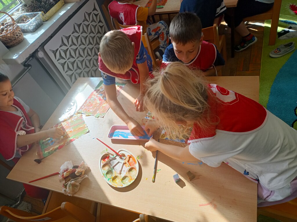 Jesień rozgościła się u nas na dobre. Przedszkolaki w ostatnim czasie pomogły jej zadomowić się w przedszkolu – dzieci nie tylko „przyprowadziły” jesień do sali, zbierając jej dary 🍎🍂, ale też wykorzystały je kreatywnie w różnych aktywnościach. Powstała m.in. ścieżka sensoryczna 👣, „Jesień w słoiku” zamknięta w muchomorku 🍄, oraz różne prace plastyczne🎨 , a nawet tworzyliśmy leśne zwierzątka, takie jak jeżyki 🦔 i pajączki 🕷️. Wszyscy świetnie się przy tym bawiliśmy!