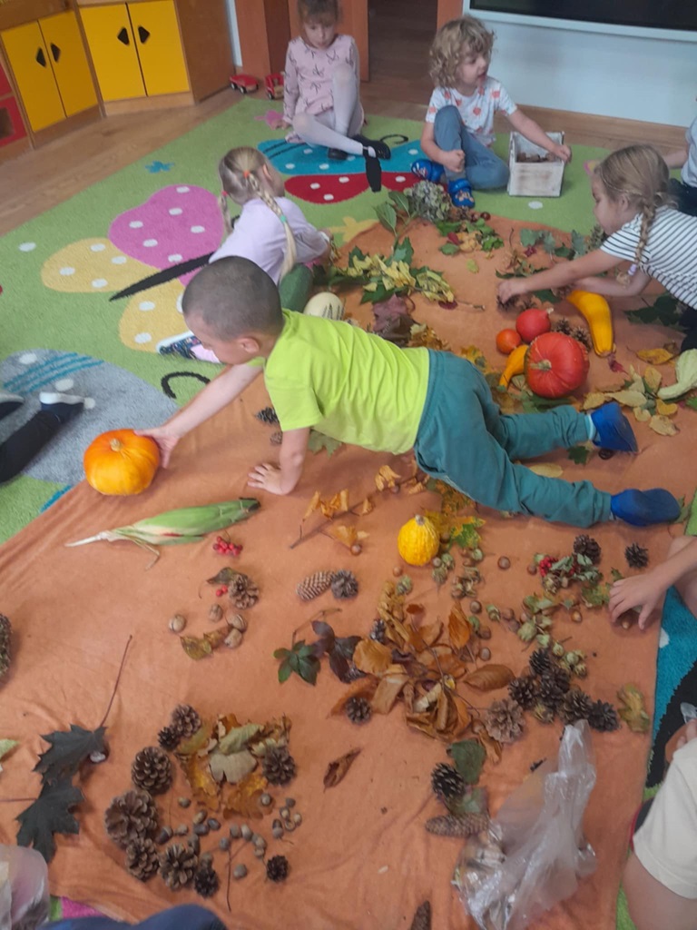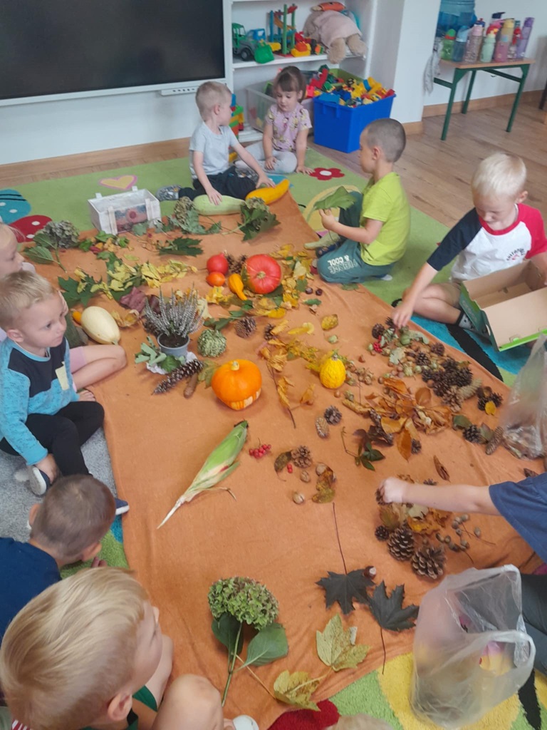23 września nasze maluszki powitały nową porę roku! Pani Jesień zawitała do naszego przedszkola przynosząc swoje dary w postaci żołędzi, kasztanów, liści, jarzębiny oraz jesiennych warzyw i owoców. Dzieci wspólnie wysłuchały jesiennej piosenki ” Co nam jesień przyniesie”🎶 a następnie obejrzeliśmy film edukacyjny ” Jesień – dlaczego liście zmieniają kolor i spadają z drzew?🎬📚 „Wszystkie dary jesieni stały się przepiękną dekoracją naszego przedszkola.🌟🏫🍂.
