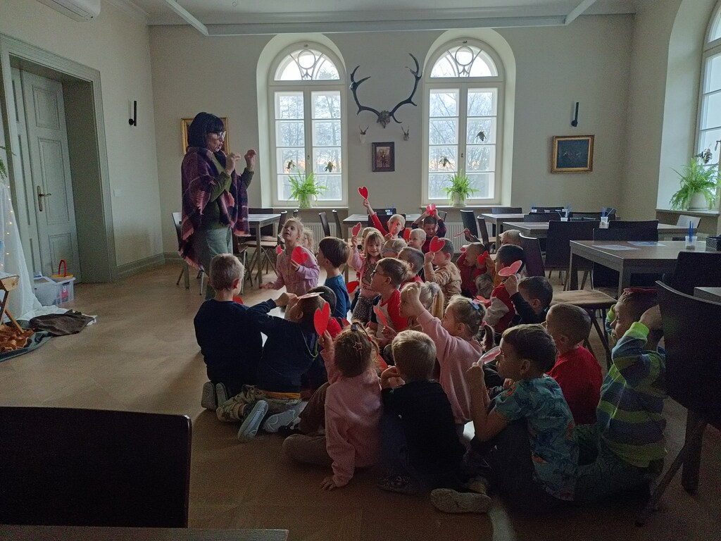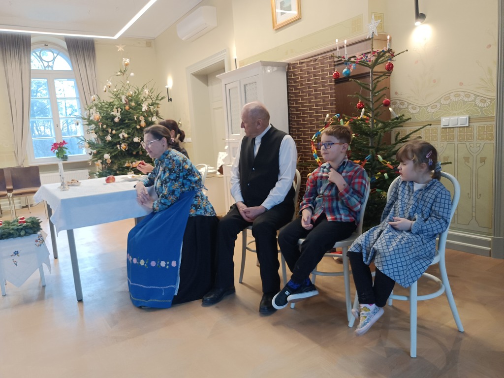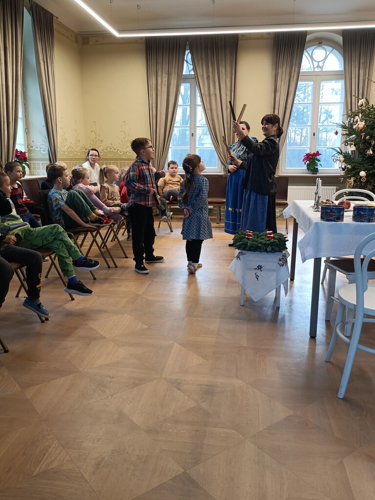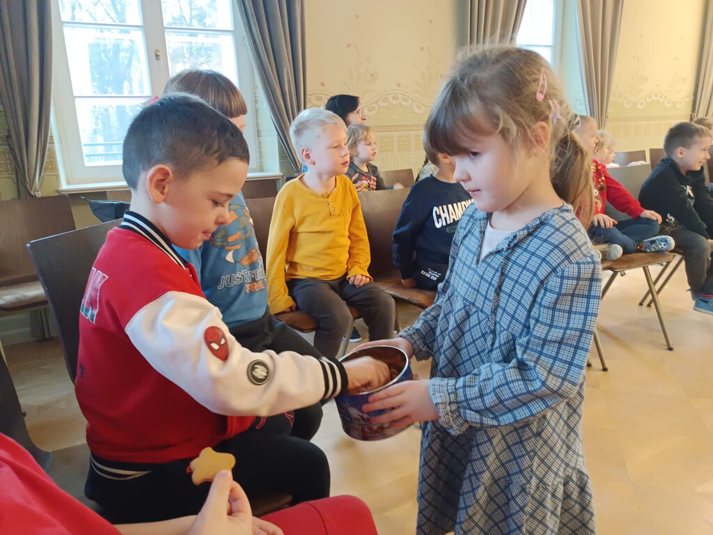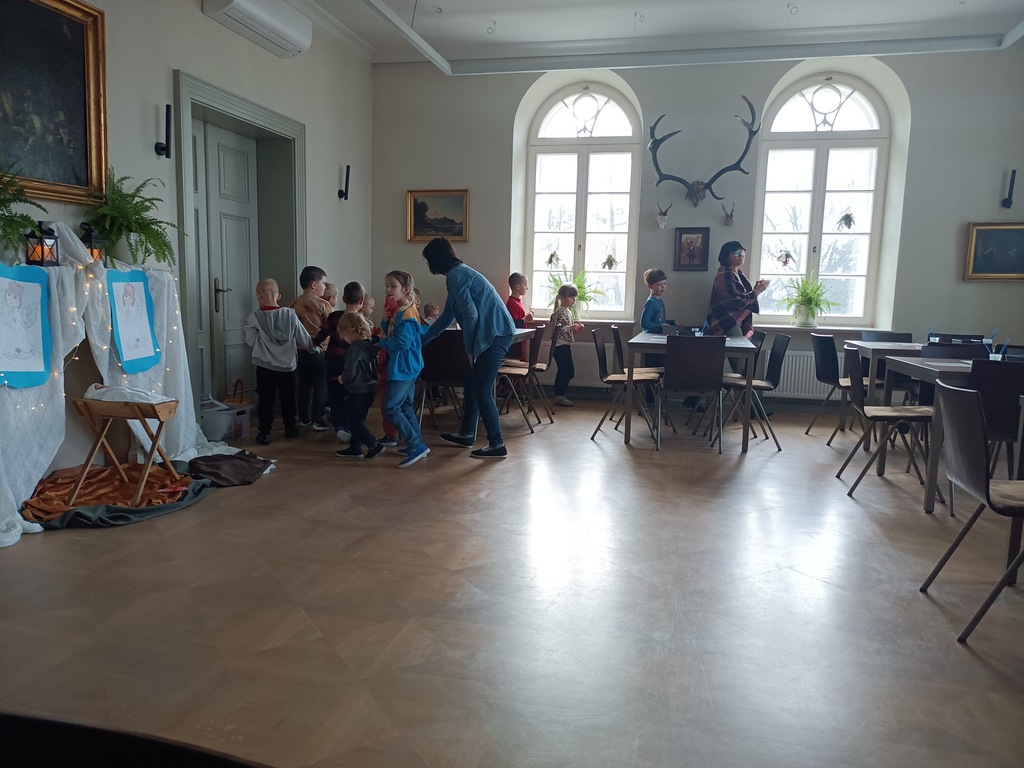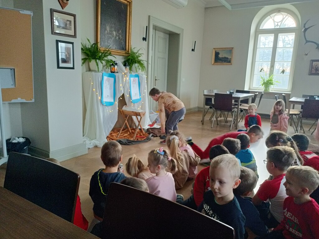 W środę, 17 grudnia, nasze przedszkolaki wybrały się do Centrum Edukacji Regionalnej w Żorach – Pałacu w Baranowicach na żywą lekcję regionalizmu dotyczącą tradycji bożonarodzeniowych. Na początku dzieci śpiewały kolędy, a chętne wcieliły się w role aktorów i wzięły udział w przedstawieniu pt. „Jak dawniej wyglądała Wigilia”. Następnie była przerwa na drugie śniadanie oraz krótka opowieść o narodzinach Jezusa połączona z pracą plastyczną. Była to bardzo udana wycieczka, która wprowadziła nas w świąteczny klimat.