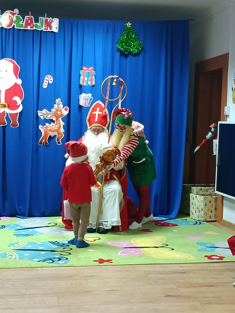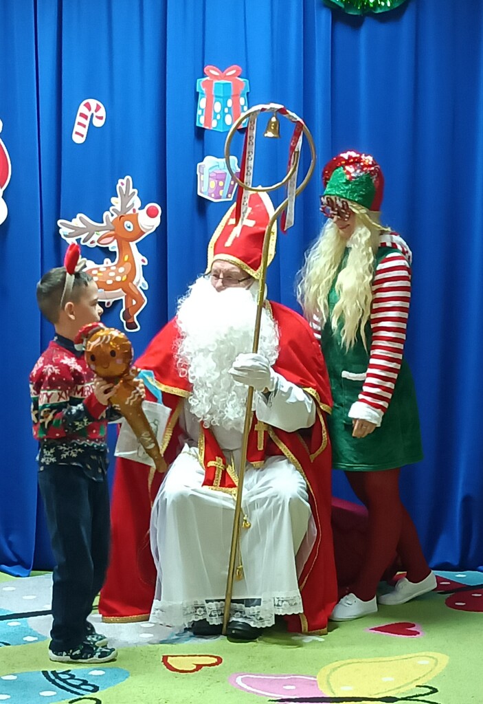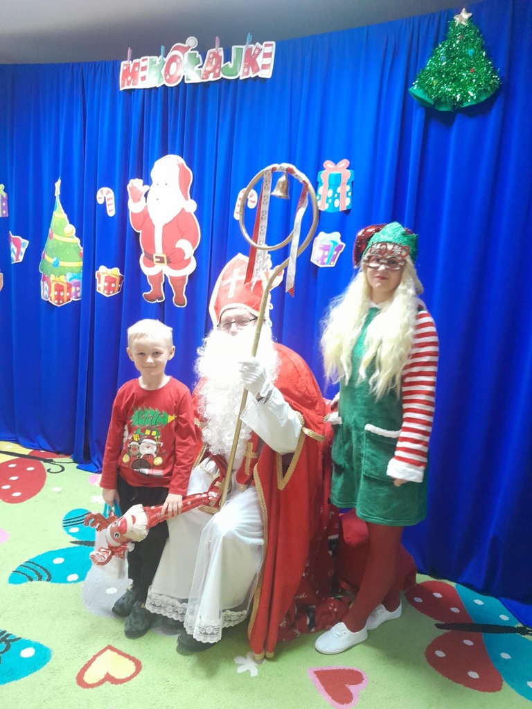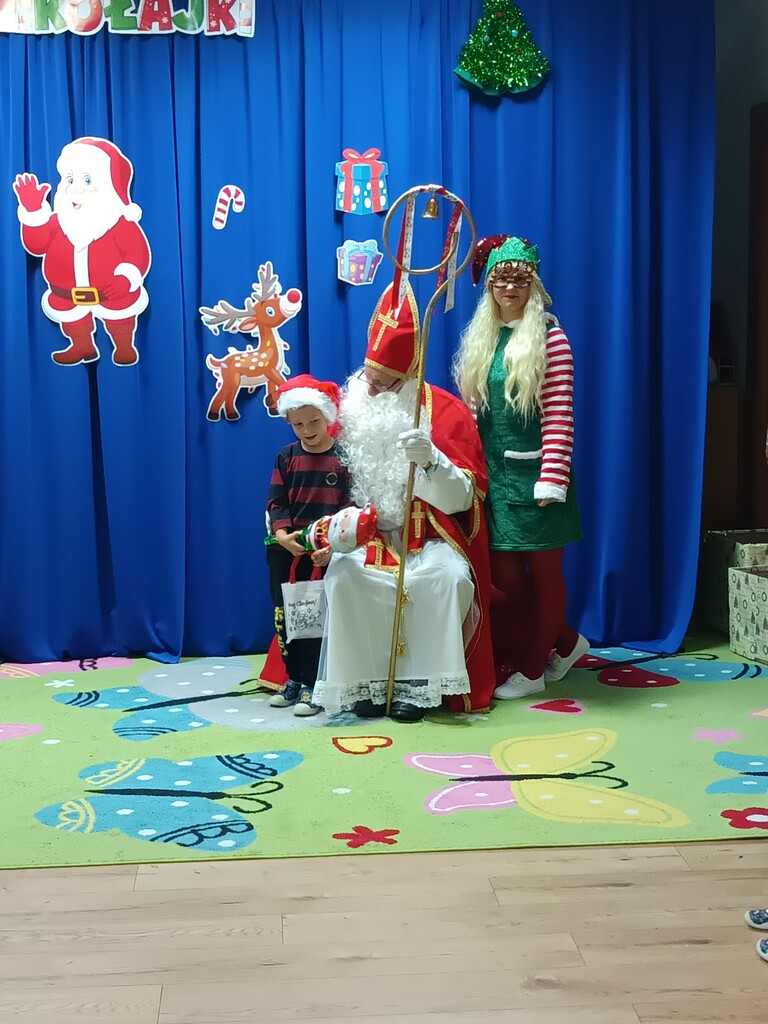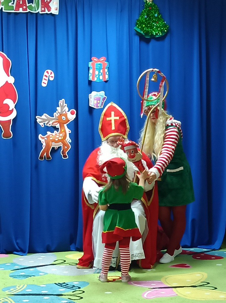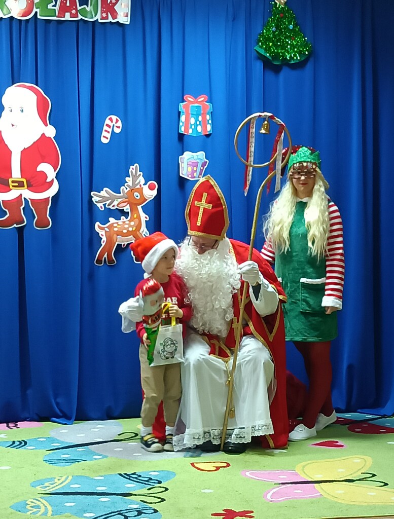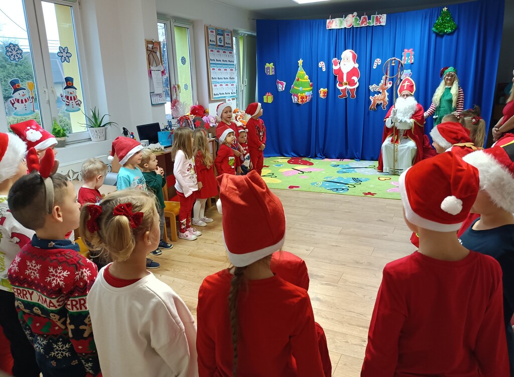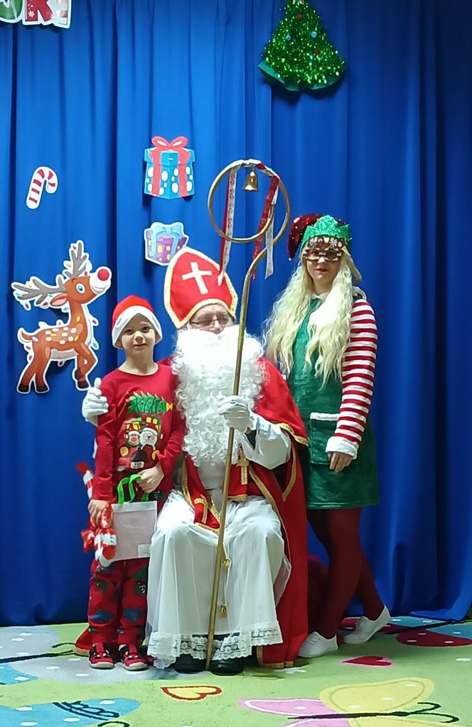 5 grudnia w naszym przedszkolu zrobiło się naprawdę magicznie! Od rana dzieci z ciekawością wyglądały przez okna, czekając na wyjątkowego gościa. W końcu pojawił się Święty Mikołaj biskup, a towarzyszyła mu uśmiechnięta Pani Elf. Ich wizyta od razu wywołała wśród dzieci ogromną radość. Mikołaj porozmawiał z przedszkolakami o dobrym zachowaniu, szacunku, miłości oraz o tym, jak ważne jest pomaganie sobie nawzajem. Dzieci z zaangażowaniem zaśpiewały mu piosenki i wyrecytowały wierszyki, które specjalnie przygotowały na tę okazję.
