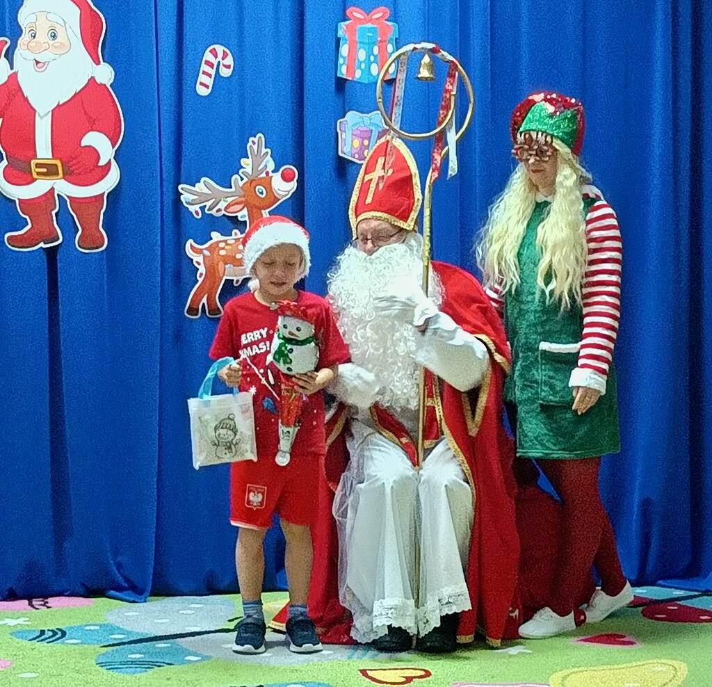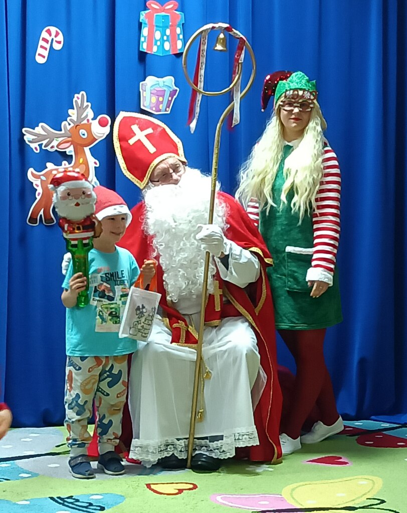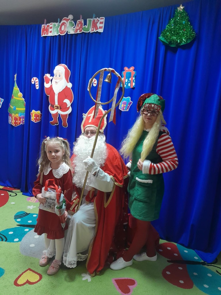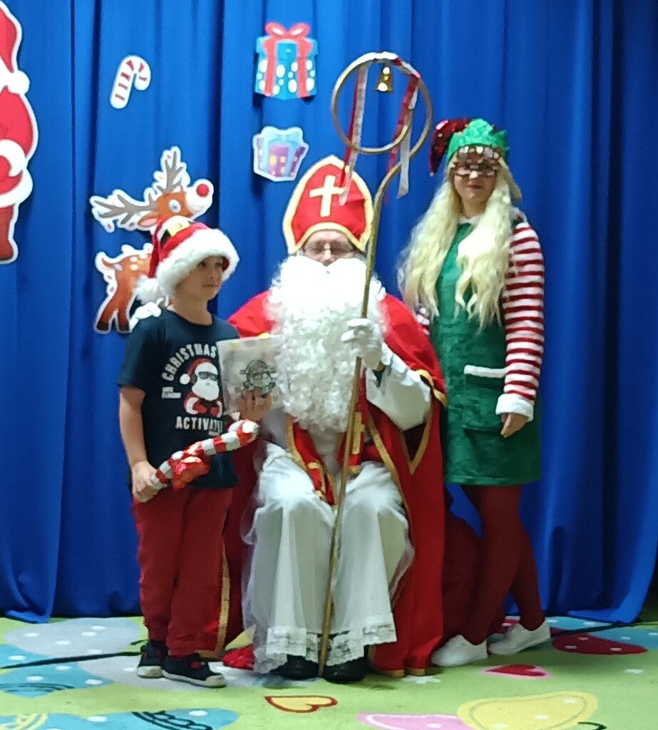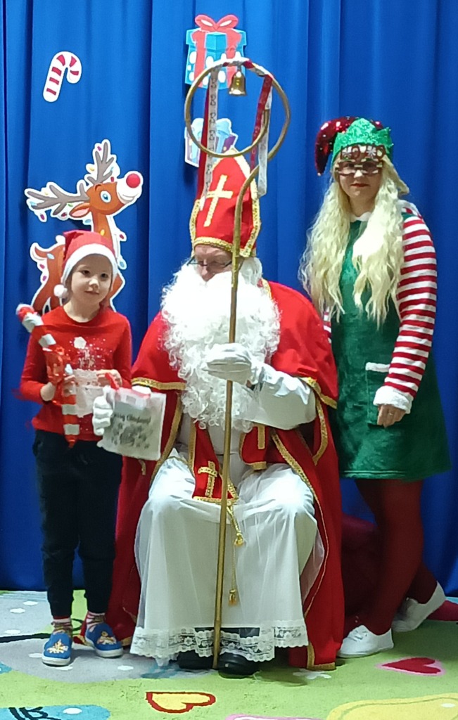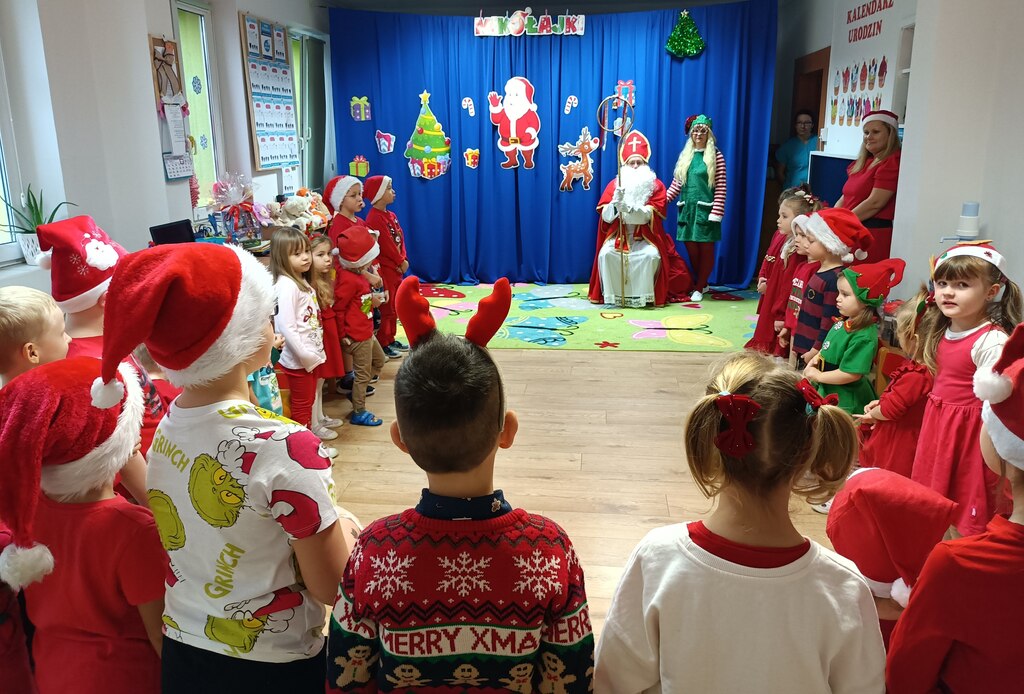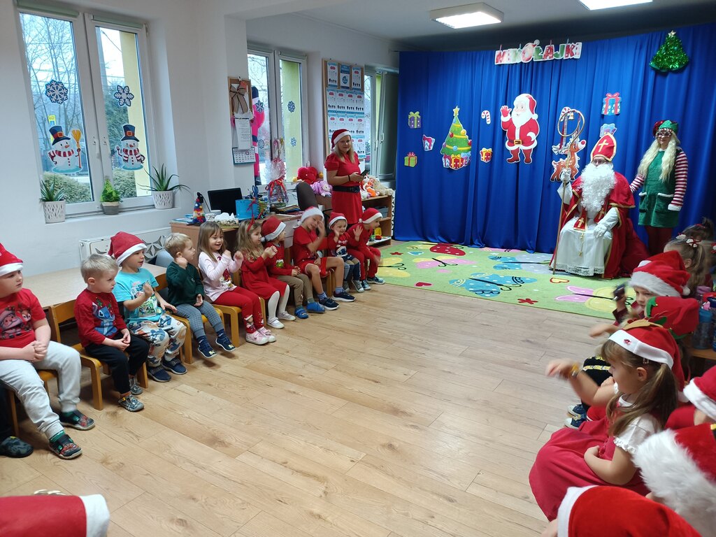 5 grudnia w naszym przedszkolu zrobiło się naprawdę magicznie! Od rana dzieci z ciekawością wyglądały przez okna, czekając na wyjątkowego gościa. W końcu pojawił się Święty Mikołaj biskup, a towarzyszyła mu uśmiechnięta Pani Elf. Ich wizyta od razu wywołała wśród dzieci ogromną radość. Mikołaj porozmawiał z przedszkolakami o dobrym zachowaniu, szacunku, miłości oraz o tym, jak ważne jest pomaganie sobie nawzajem. Dzieci z zaangażowaniem zaśpiewały mu piosenki i wyrecytowały wierszyki, które specjalnie przygotowały na tę okazję.