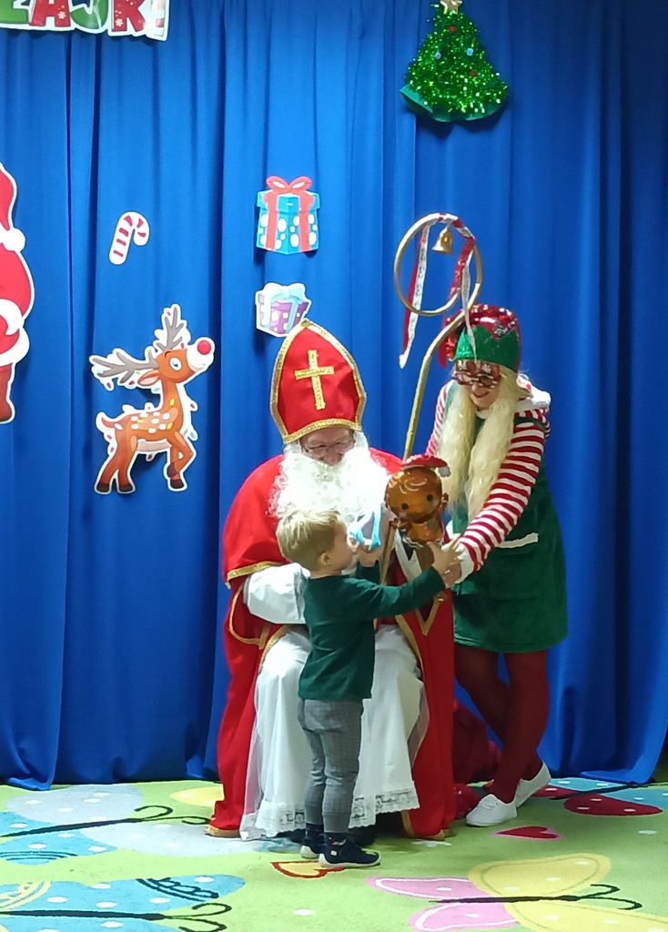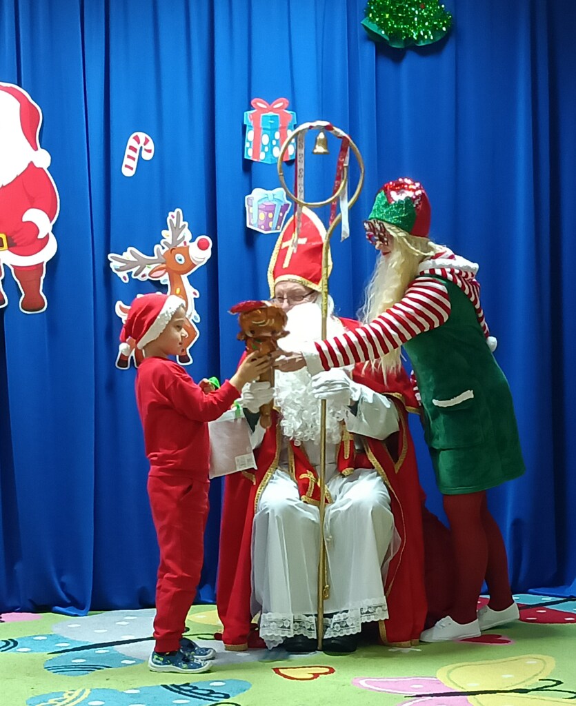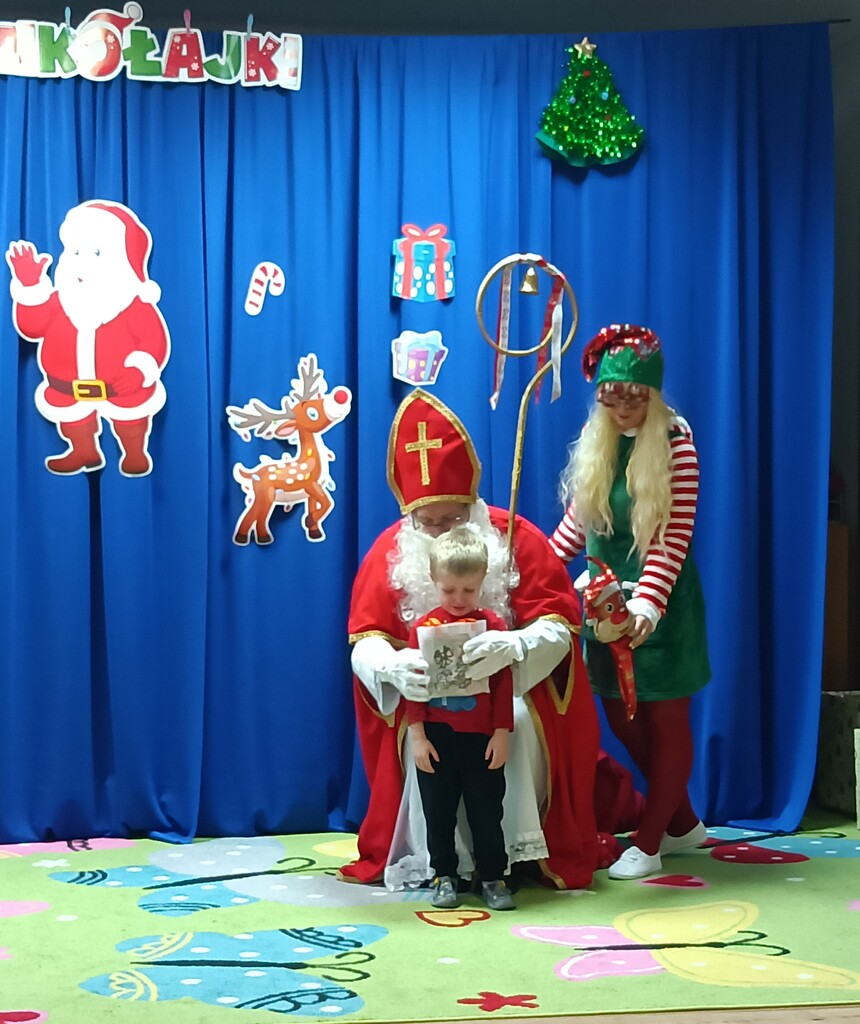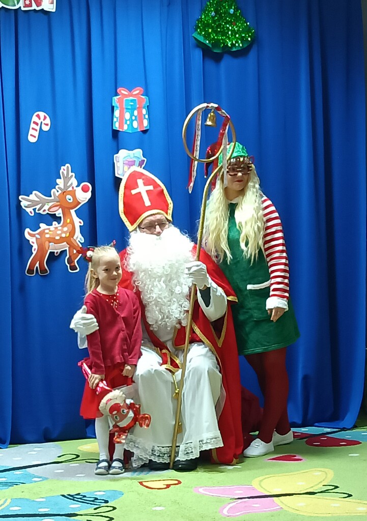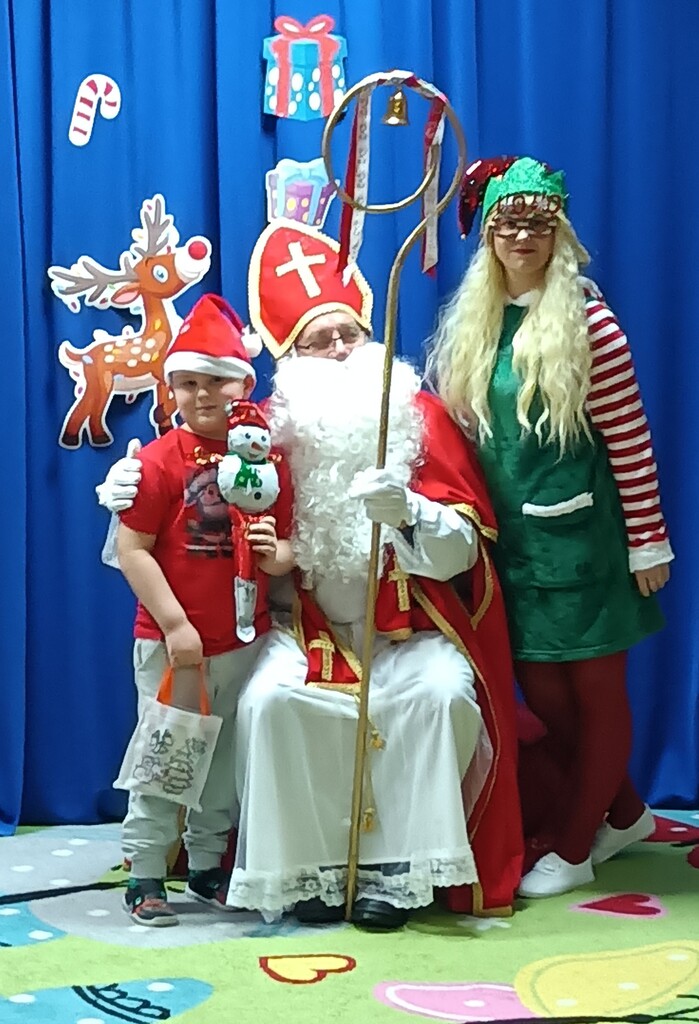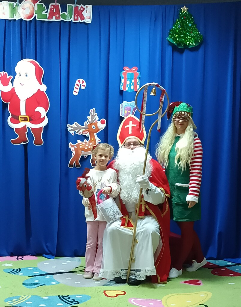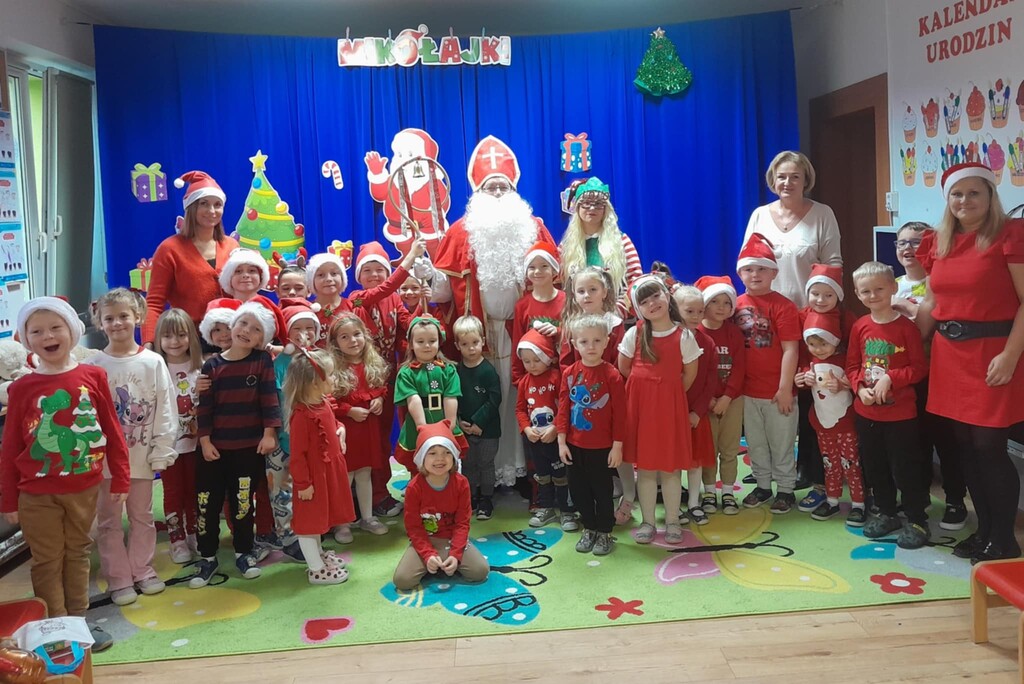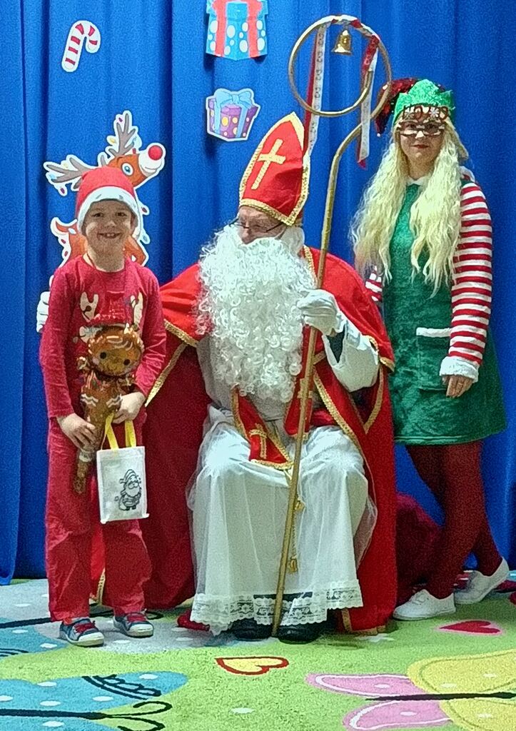 5 grudnia w naszym przedszkolu zrobiło się naprawdę magicznie! Od rana dzieci z ciekawością wyglądały przez okna, czekając na wyjątkowego gościa. W końcu pojawił się Święty Mikołaj biskup, a towarzyszyła mu uśmiechnięta Pani Elf. Ich wizyta od razu wywołała wśród dzieci ogromną radość. Mikołaj porozmawiał z przedszkolakami o dobrym zachowaniu, szacunku, miłości oraz o tym, jak ważne jest pomaganie sobie nawzajem. Dzieci z zaangażowaniem zaśpiewały mu piosenki i wyrecytowały wierszyki, które specjalnie przygotowały na tę okazję.