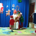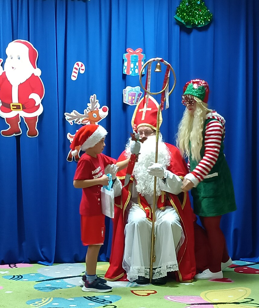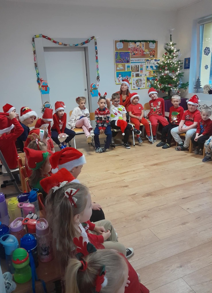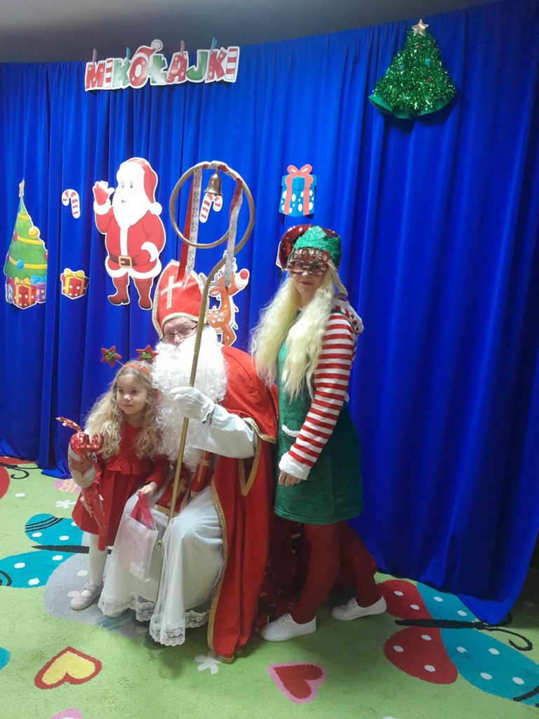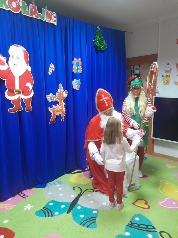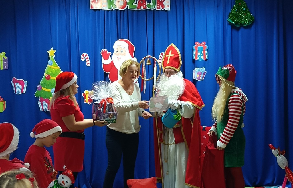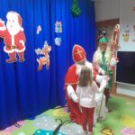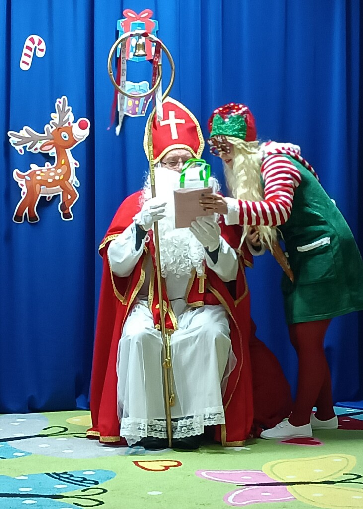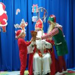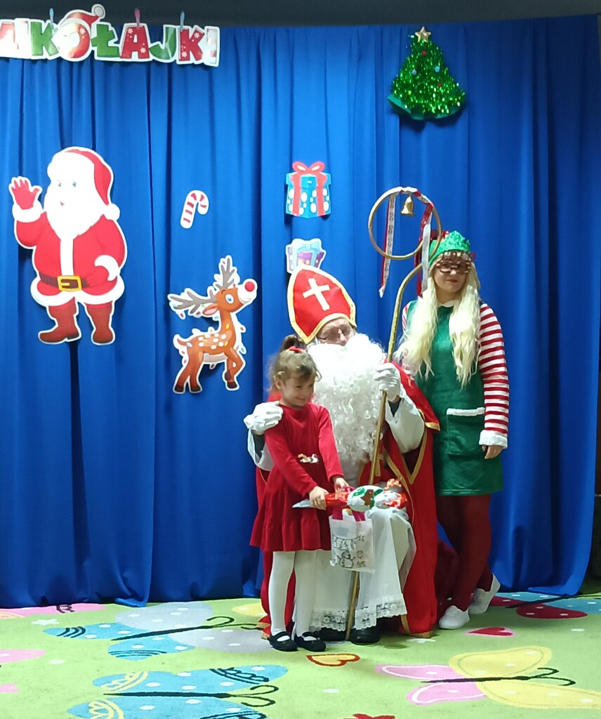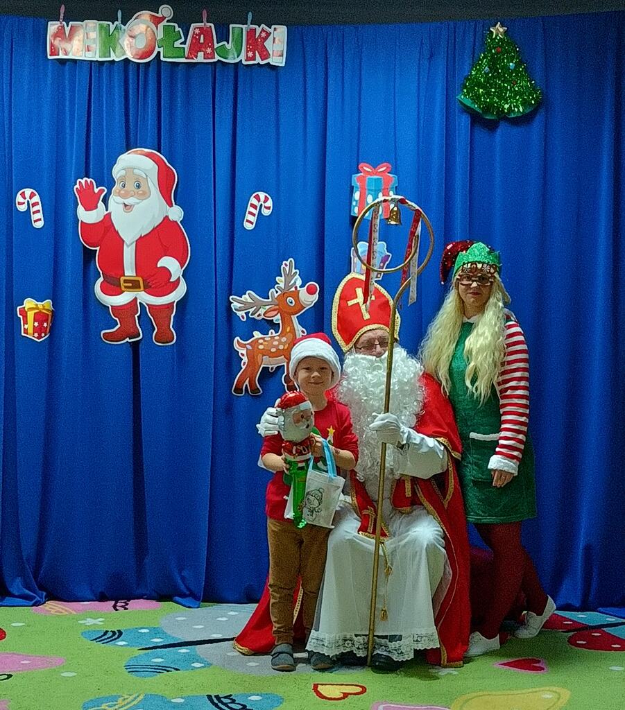 5 grudnia w naszym przedszkolu zrobiło się naprawdę magicznie! Od rana dzieci z ciekawością wyglądały przez okna, czekając na wyjątkowego gościa. W końcu pojawił się Święty Mikołaj biskup, a towarzyszyła mu uśmiechnięta Pani Elf. Ich wizyta od razu wywołała wśród dzieci ogromną radość. Mikołaj porozmawiał z przedszkolakami o dobrym zachowaniu, szacunku, miłości oraz o tym, jak ważne jest pomaganie sobie nawzajem. Dzieci z zaangażowaniem zaśpiewały mu piosenki i wyrecytowały wierszyki, które specjalnie przygotowały na tę okazję.