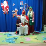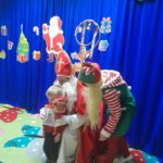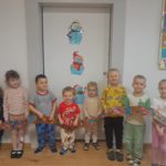 Nasz gość obdarował każde dziecko pięknym prezentem, a sam również został mile zaskoczony – przedszkolaki wręczyły mu dwa długie, własnoręcznie zrobione szale na zimowe dni, co bardzo go ucieszyło 🙂