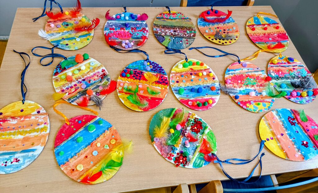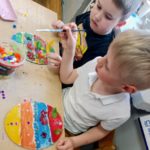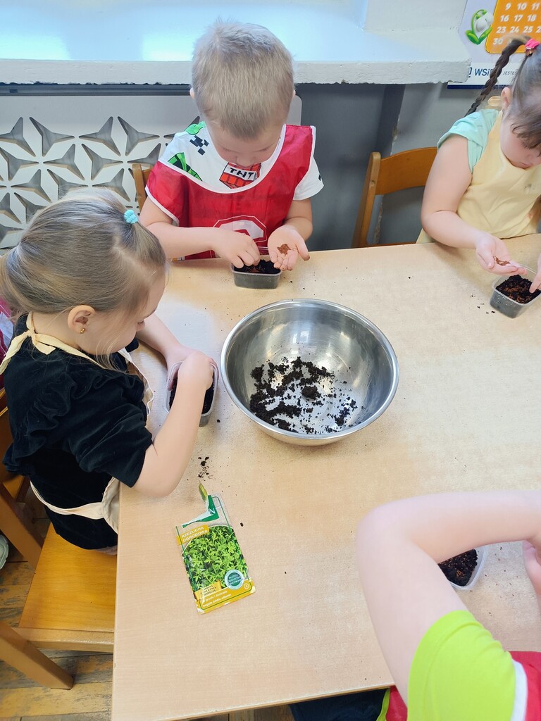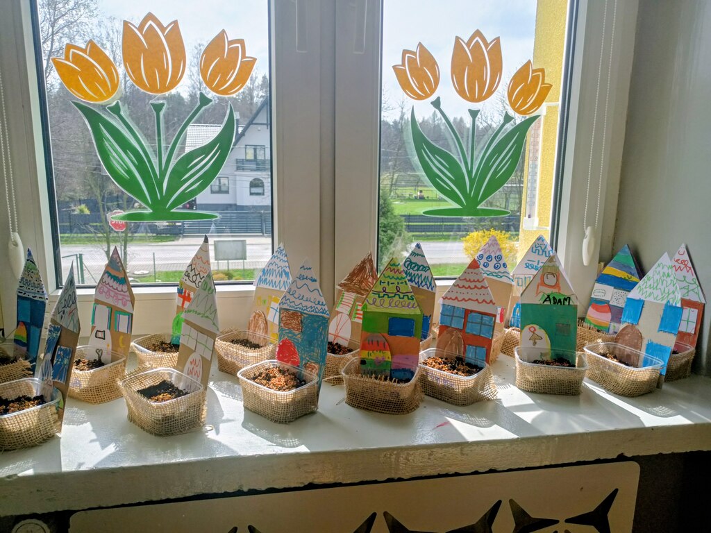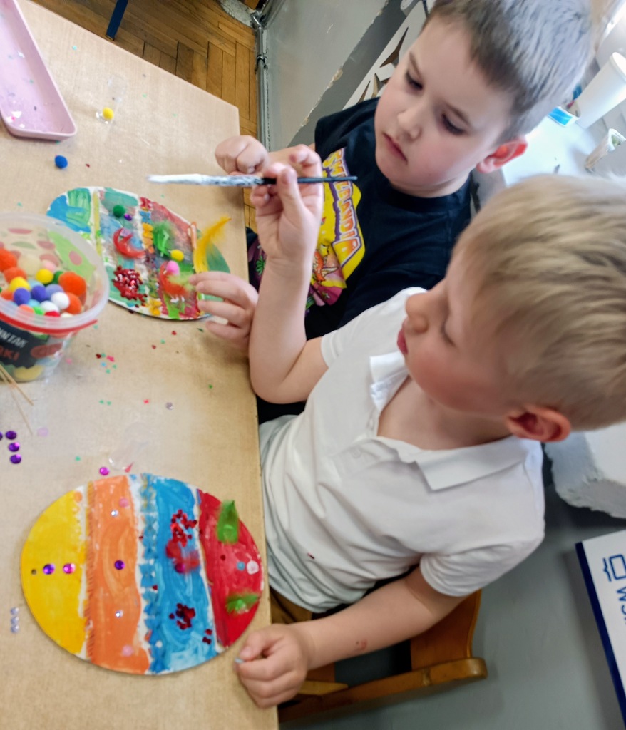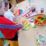 Przygotowania do Wielkanocy były w naszym przedszkolu czasem radości i wspólnej zabawy. Dzieci z zaangażowaniem tworzyły świąteczne prace plastyczne – pisanki i kolorowe dekoracje. Wspólnie zasialiśmy także rzeżuchę, o którą codziennie dbaliśmy.
