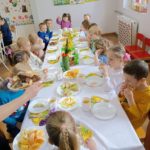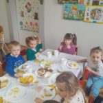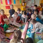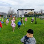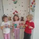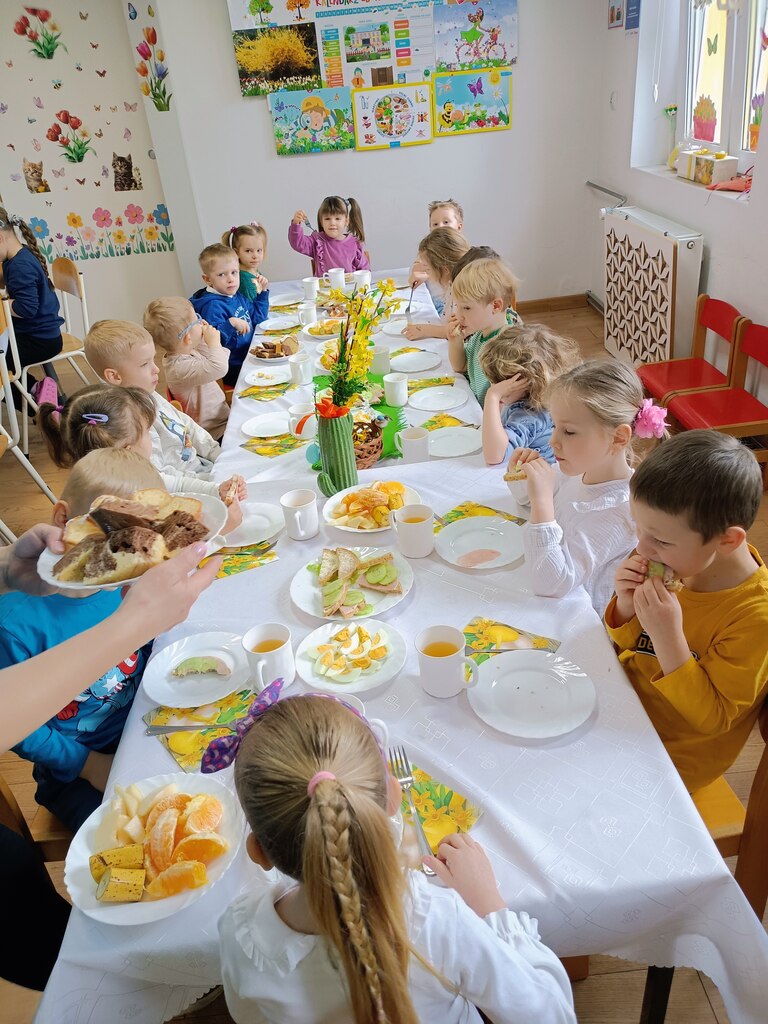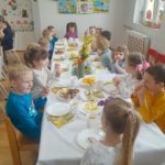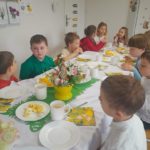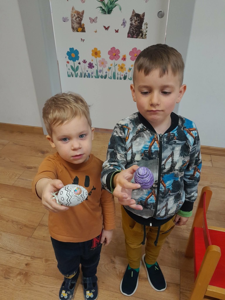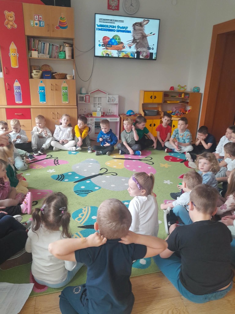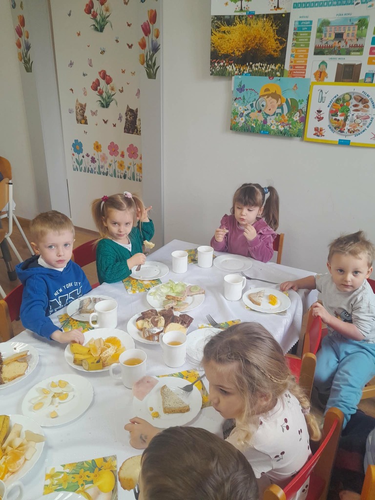W czwartek zasiedliśmy do wspólnego śniadania wielkanocnego. Było bardzo uroczyście – śpiewaliśmy piosenki, mówiliśmy wierszyki z pokazywaniem oraz rozmawialiśmy o wielkanocnych symbolach i tradycjach. Po śniadaniu dzieci z niecierpliwością czekały na zajączka, dlatego wybraliśmy się do ogrodu przedszkolnego. Tam rozpoczęło się poszukiwanie prezentów – każdy przedszkolak znalazł swój upominek, co wywołało wiele radości i uśmiechów.