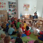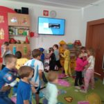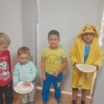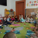 Tego dnia dzieci przyszły przebrane za swoje ulubione bajkowe postacie lub ubrane w koszulki z bohaterami z bajek.Na początku odbyło się wspólne powitanie i rozmowy o ulubionych bajkach, a następnie dzieci rozwiązywały zagadki bajkowe, wykazując się doskonałą znajomością bajkowego świata. Nie zabrakło także teatrzyku, podczas którego zaprezentowana została bajka „Trzy Świnki” – mali widzowie z ogromnym zainteresowaniem śledzili przygody bohaterów! 🐷🐷🐷