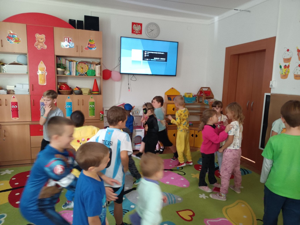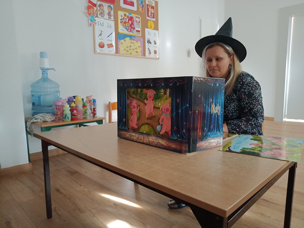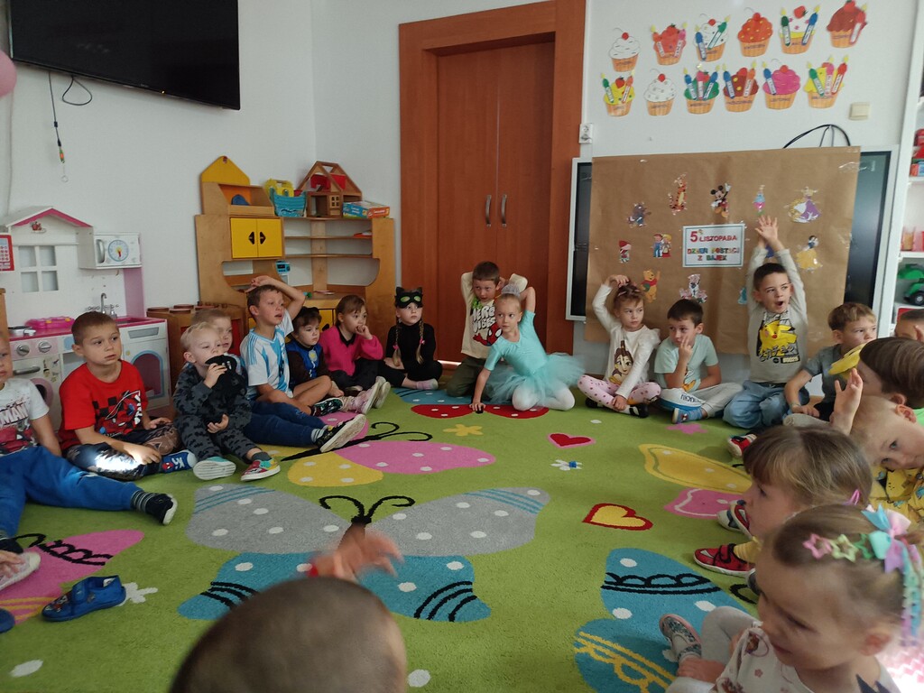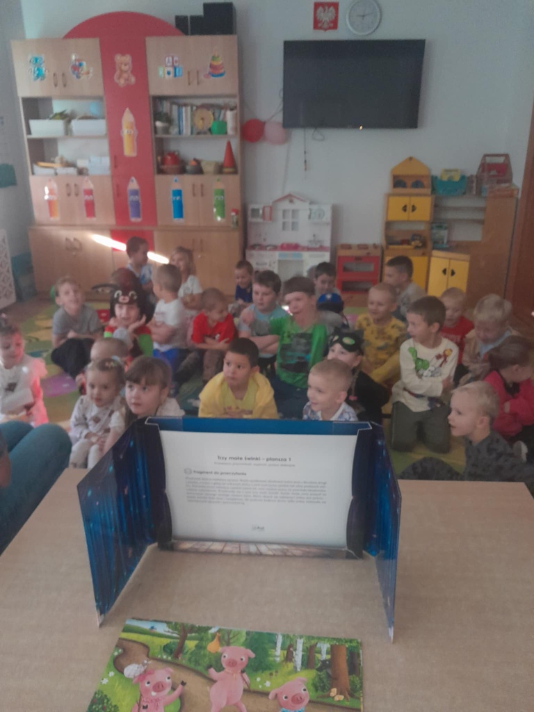 Tego dnia dzieci przyszły przebrane za swoje ulubione bajkowe postacie lub ubrane w koszulki z bohaterami z bajek.Na początku odbyło się wspólne powitanie i rozmowy o ulubionych bajkach, a następnie dzieci rozwiązywały zagadki bajkowe, wykazując się doskonałą znajomością bajkowego świata. Nie zabrakło także teatrzyku, podczas którego zaprezentowana została bajka „Trzy Świnki” – mali widzowie z ogromnym zainteresowaniem śledzili przygody bohaterów! 🐷🐷🐷