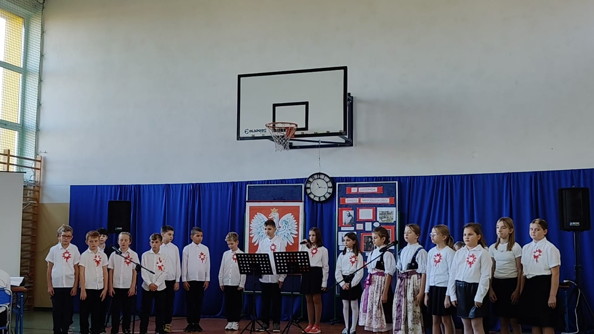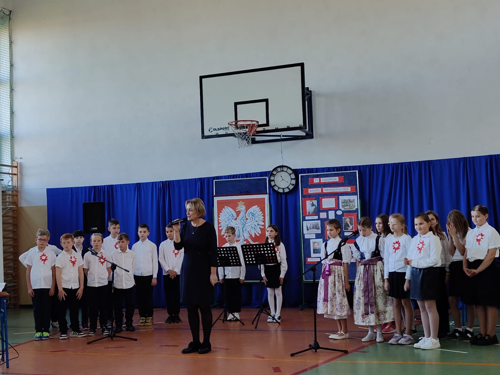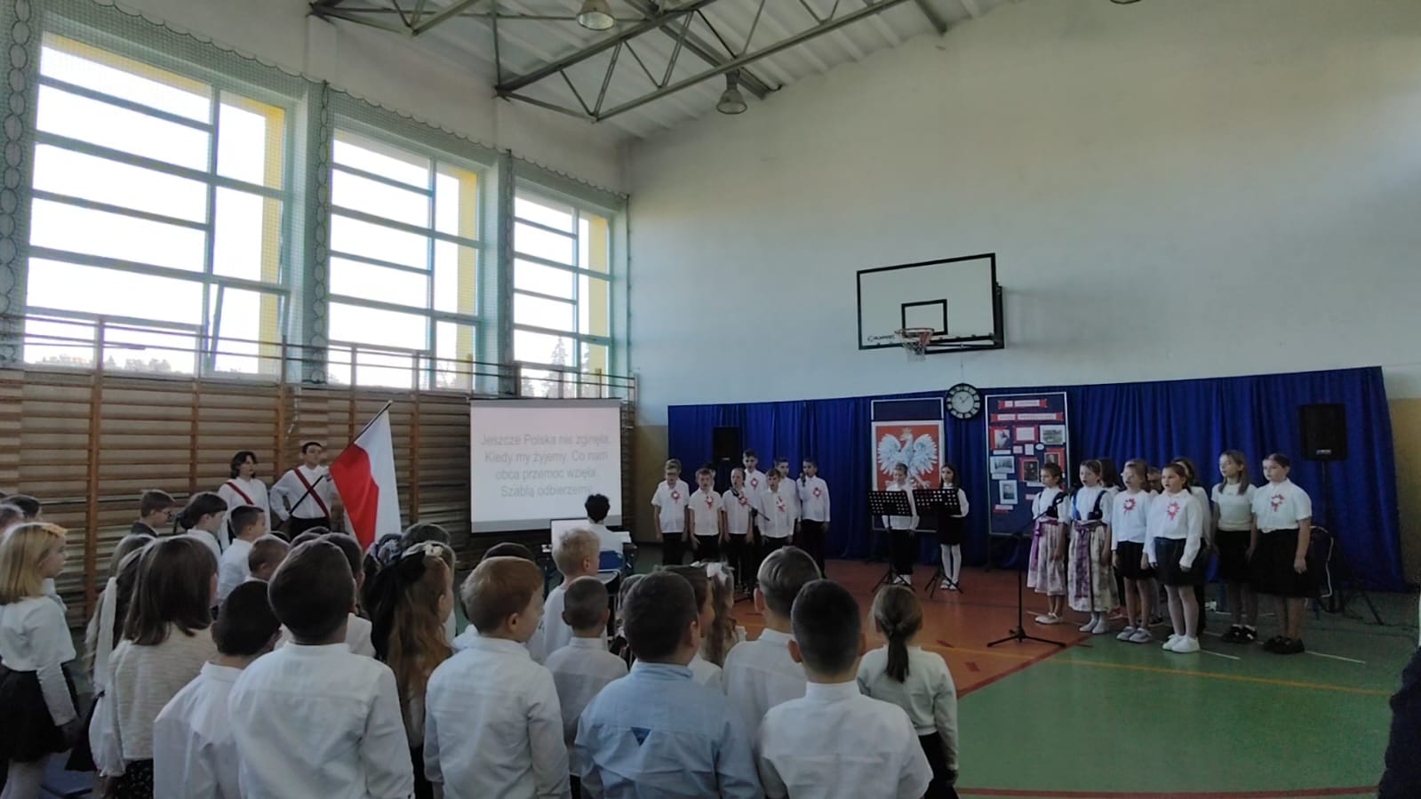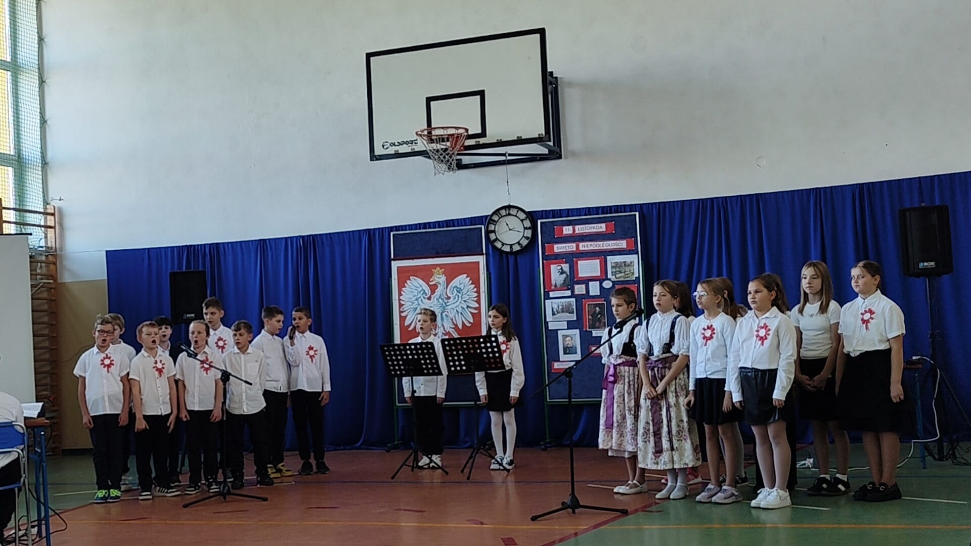 W dniu 11 listopada nasza szkoła z dumą wzięła udział w uroczystej akademii przygotowanej z okazji Narodowe Święto Niepodległości. Szczególnie piękny występ zaprezentowała klasa IV pod czujnym okiem wychowawcy, który wspierał dzieci w przygotowaniu scenografii, recytacji i śpiewu.