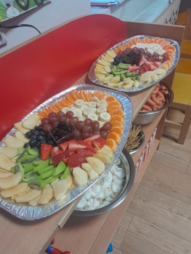 Po zabawie na dzieci czekały smaczne przekąski – owoce oraz pyszne desery przygotowane przez Radę Rodziców.