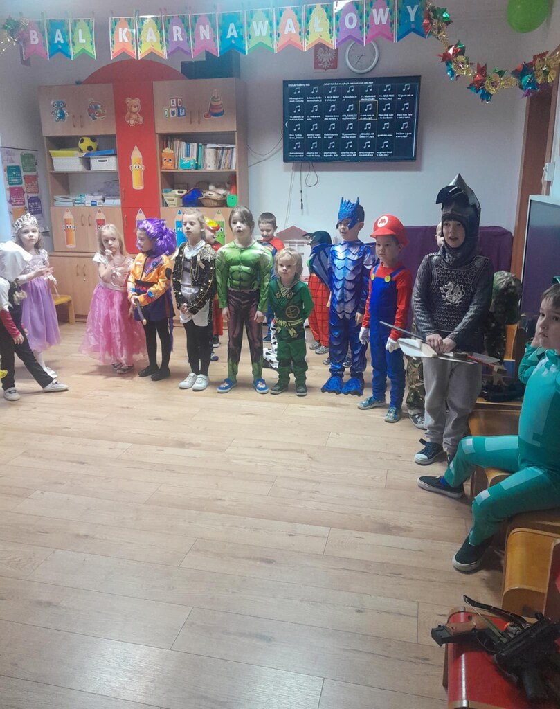 Bal upłynął w bardzo miłej atmosferze i dostarczył dzieciom wielu niezapomnianych wrażeń. Serdecznie dziękujemy Rodzicom za przygotowanie pięknych strojów dla dzieci na bal karnawałowy 💛
