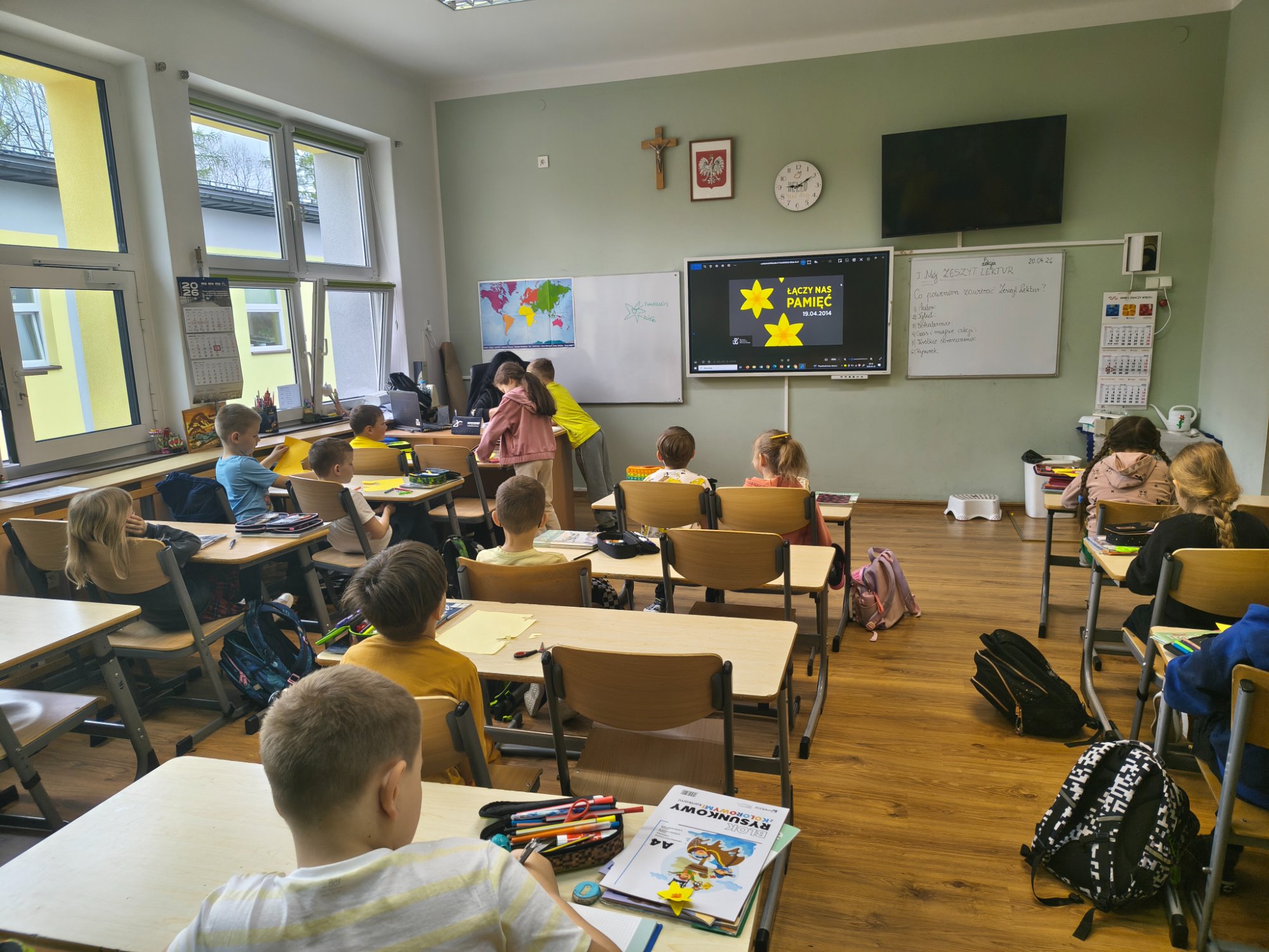 W czasie zajęć w klasach uczniowie własnoręcznie przygotowywali papierowe żonkile, które stały się wyrazem ich zaangażowania oraz formą upamiętnienia wydarzeń historycznych.
