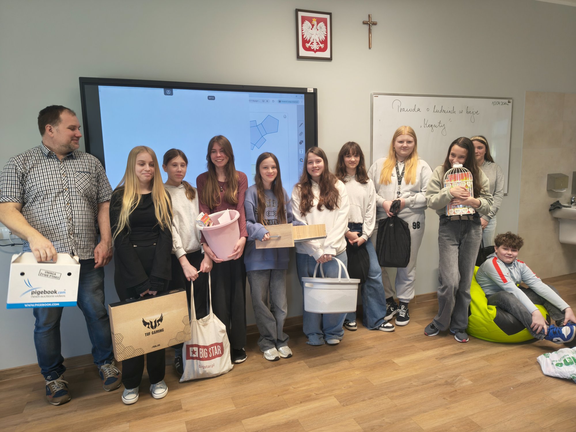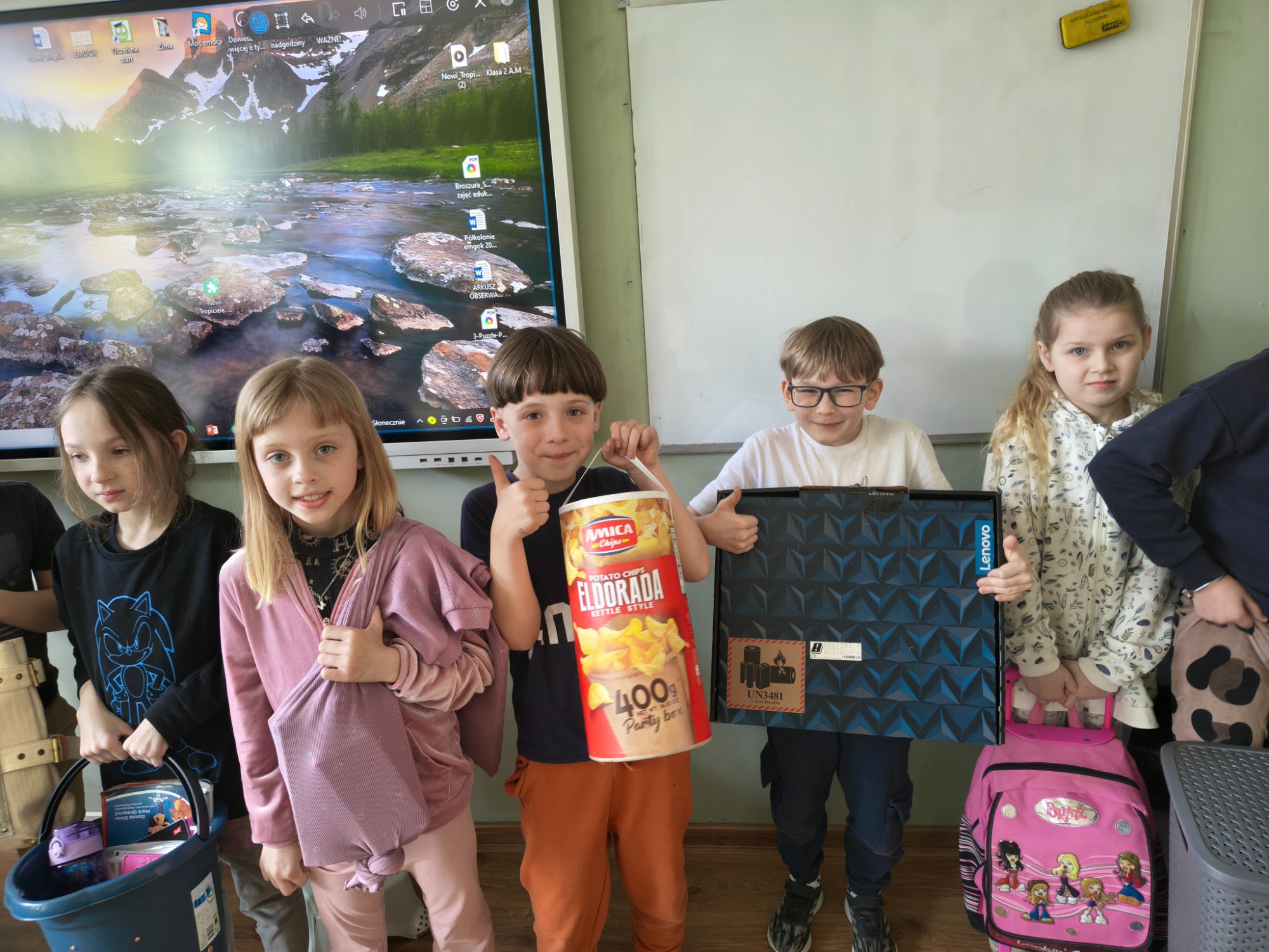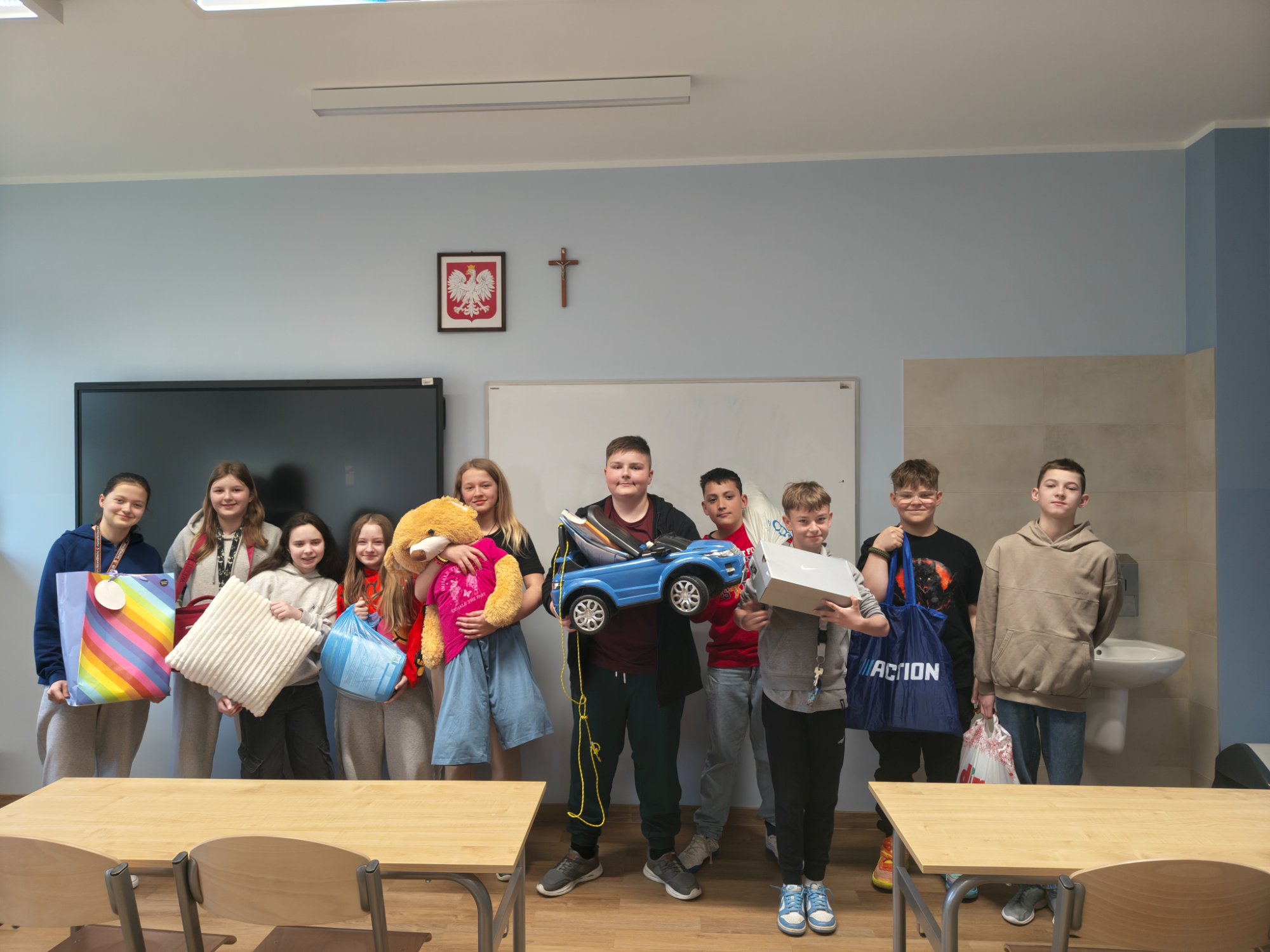 Nagrodą był odblask LED, który nie tylko sprawił radość, ale także zwiększy bezpieczeństwo uczniów. Upominki zostały ufundowane przez Samorząd Uczniowski.