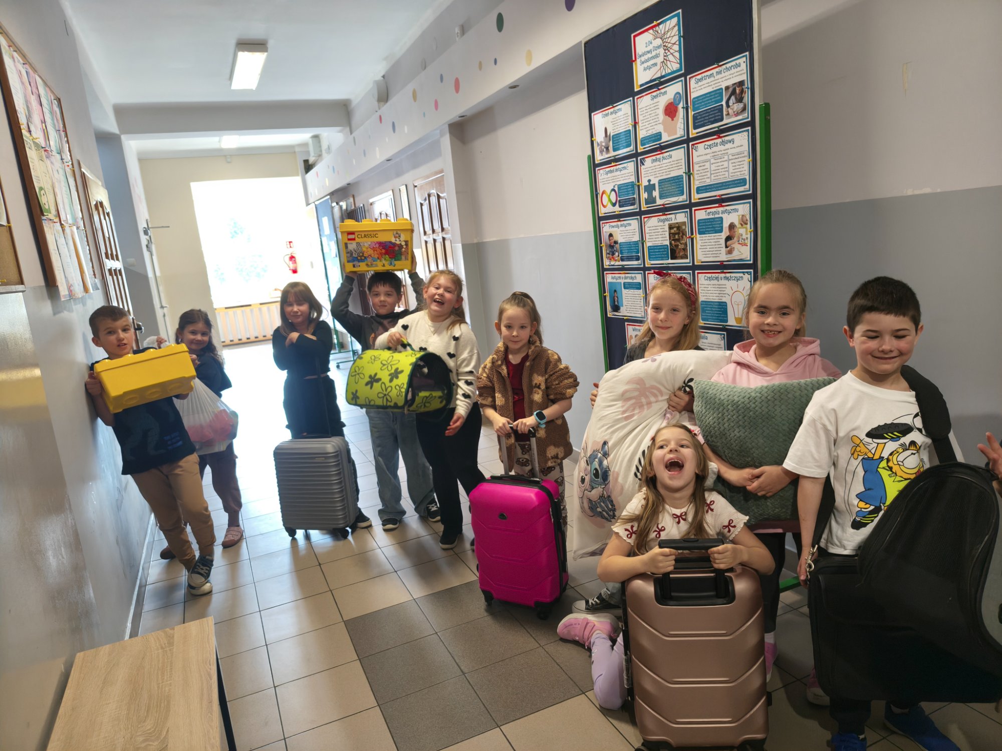 10 kwietnia w naszej szkole odbył się „Dzień bez plecaka”, który jak co roku wzbudził wiele emocji i uśmiechu. Tego dnia uczniowie wykazali się dużą kreatywnością, zastępując tradycyjne plecaki nietypowymi rozwiązaniami – pojawiły się m.in. koszyki, walizki, pudełka, a nawet przedmioty codziennego użytku w zupełnie nowej roli.