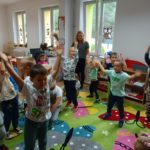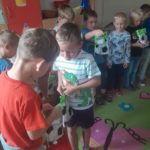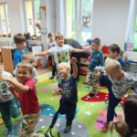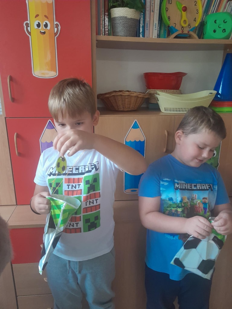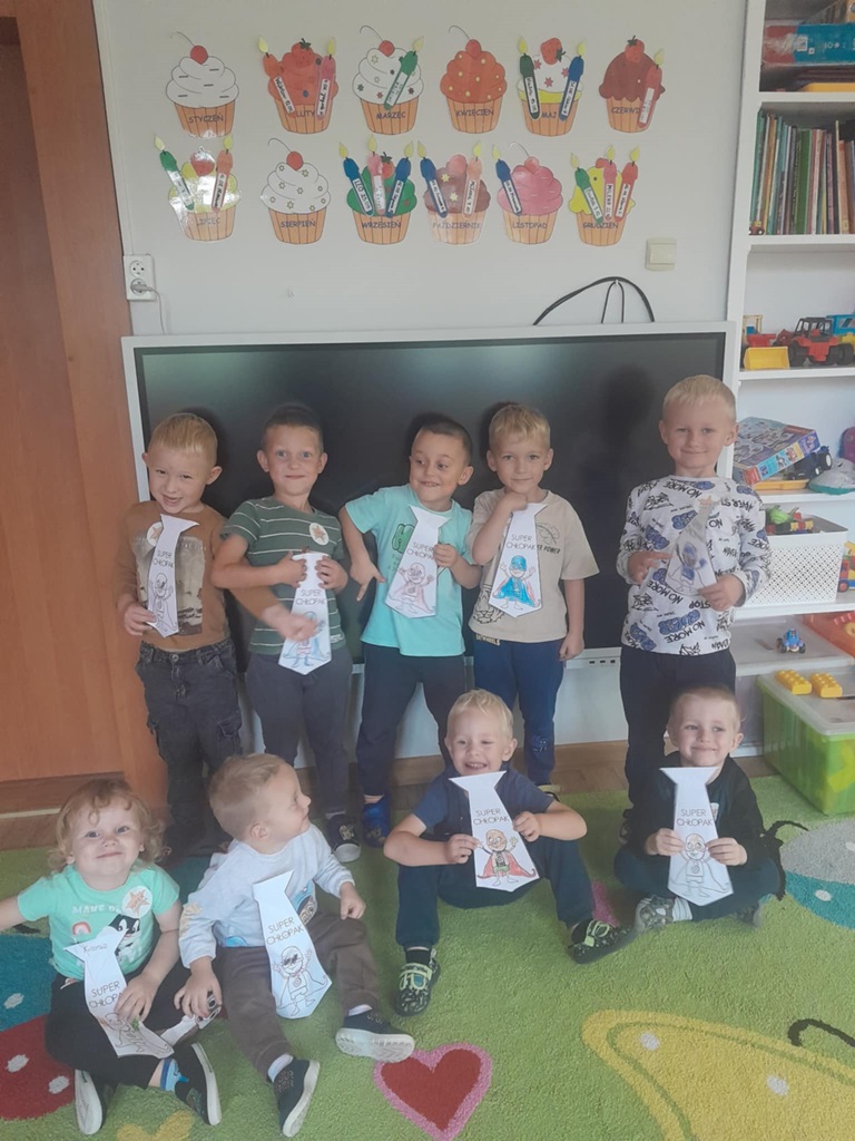 Chłopcy wzięli udział w teście sprawności i wytrzymałości 🏃♂️🤸 oraz w teście prawdziwego dżentelmena – oczywiście spisali się na medal 🥇. Dziewczynki wręczyły kolegom drobne upominki, a wszystkie dzieci wspólnie kolorowały krawaty 👔 przygotowane specjalnie na ten dzień.