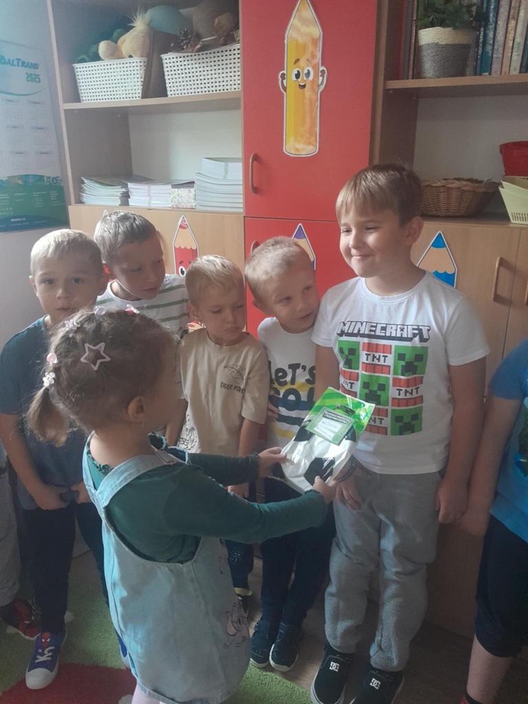 Nie zabrakło także słodkiego poczęstunku 🍫, który sprawił wszystkim wiele radości. Serdecznie dziękujemy Radzie Rodziców za przygotowanie upominków 💐.