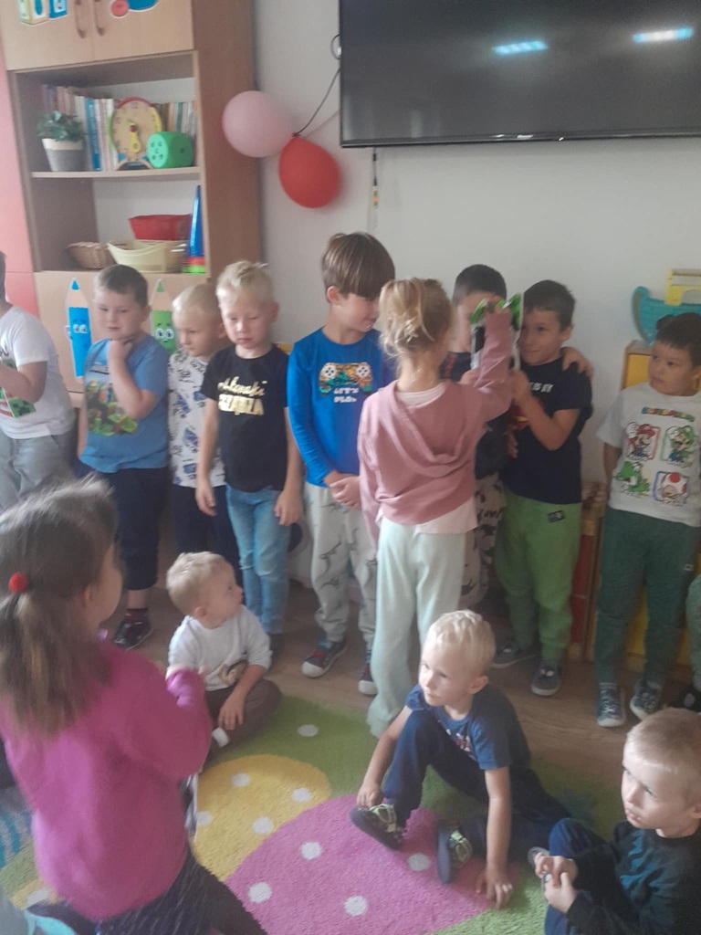 30 września świętowaliśmy w naszym przedszkolu Dzień Chłopaka 🥳. Na początku dziewczynki zaśpiewały chłopcom gromkie „Sto lat” 🎶, a następnie rozmawialiśmy o tym, jakie cechy i zachowania powinien mieć super chłopak.