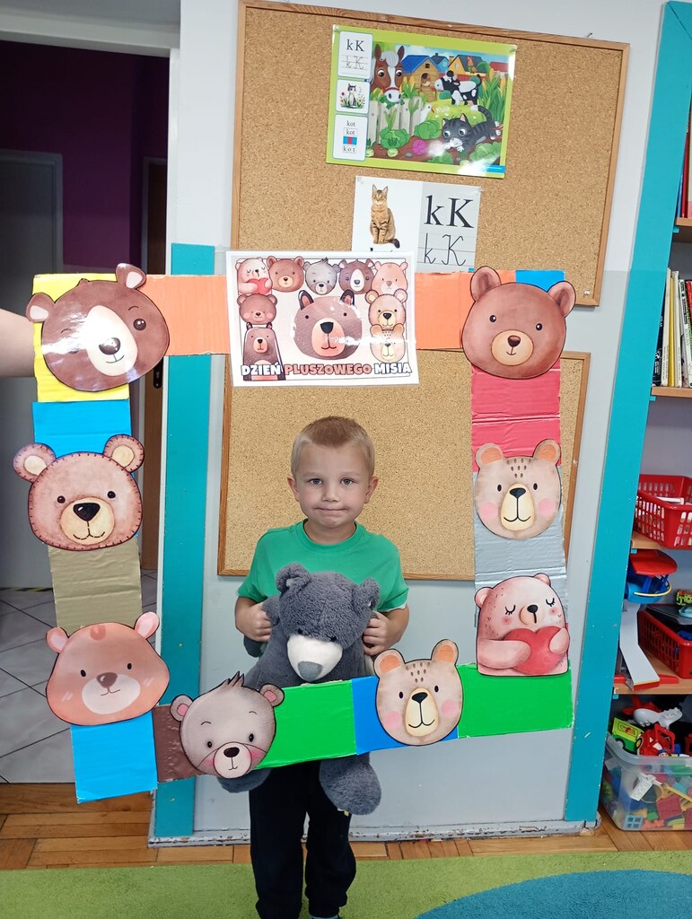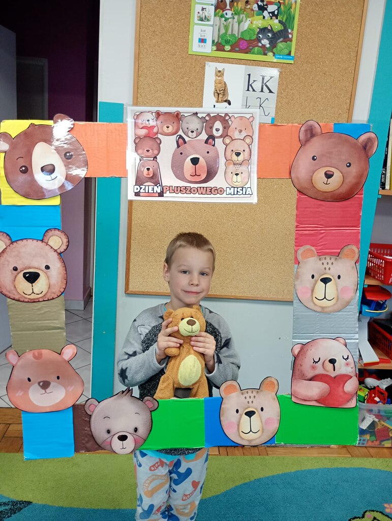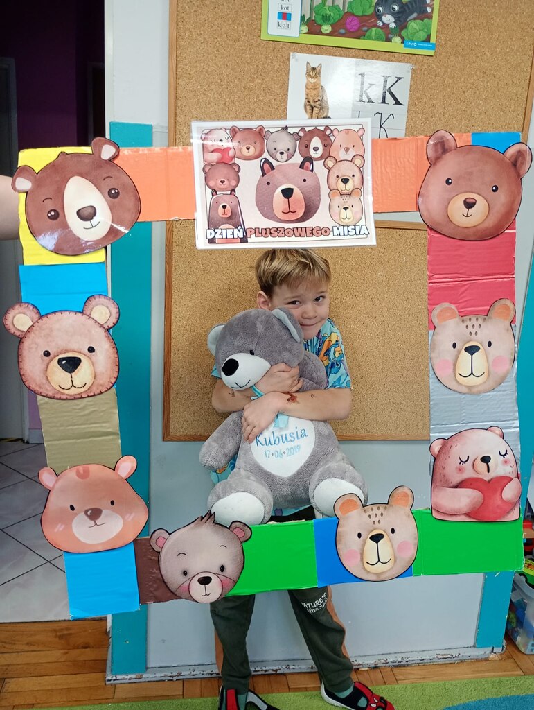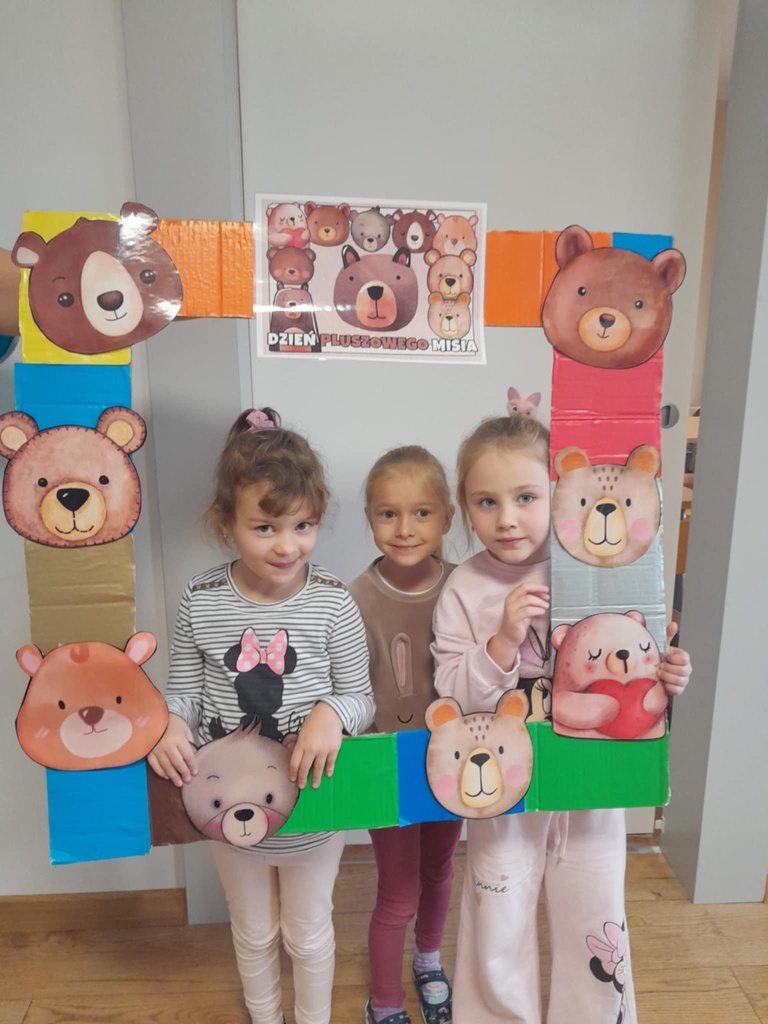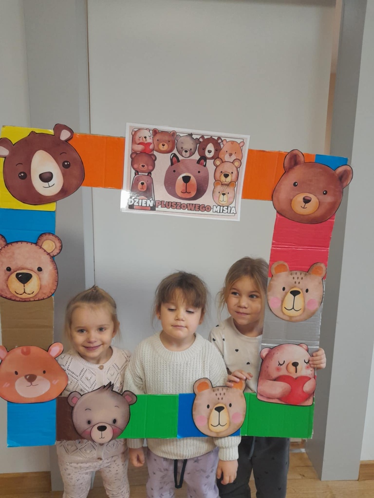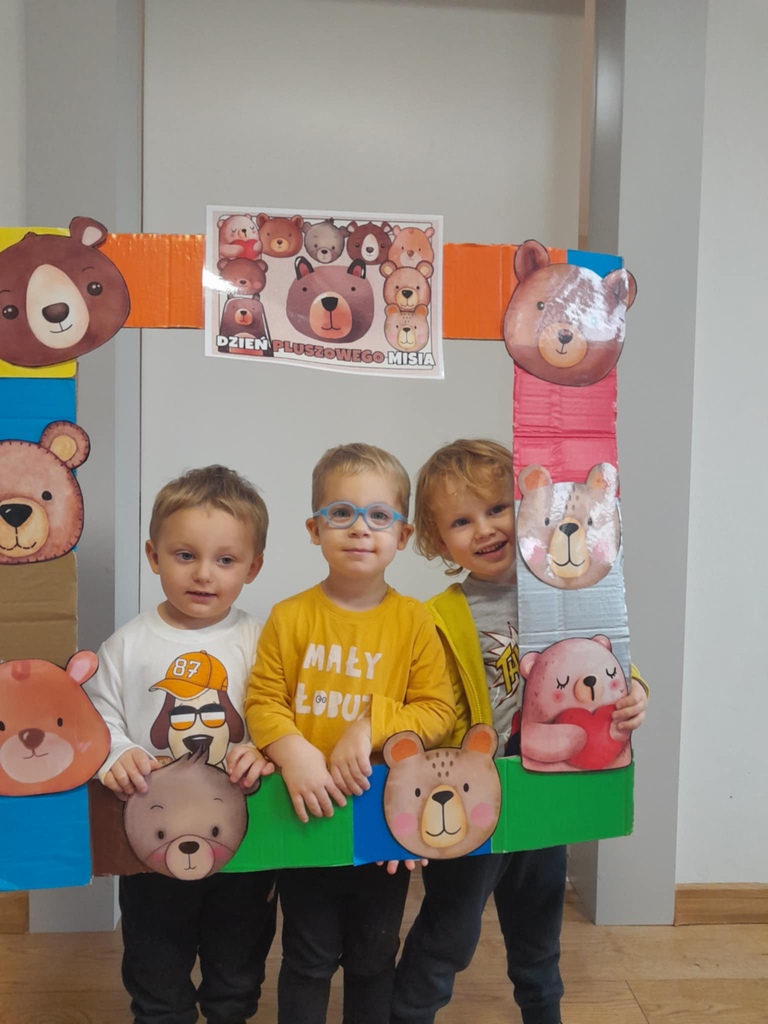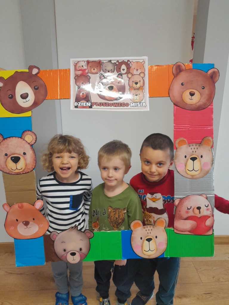W ciągu dnia bawiliśmy się w zabawy muzyczno-ruchowe, rozwiązywaliśmy zagadki o misiach z bajek, tworzyliśmy „misiowy pociąg” oraz uczestniczyliśmy w zabawach w kole, które pięknie integrowały przedszkolaki z obu grup. Była też misiowa foto budka:)