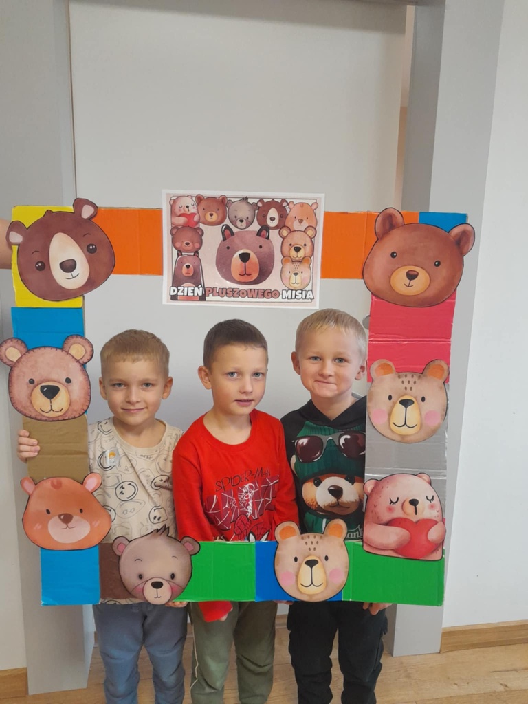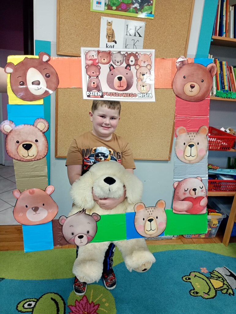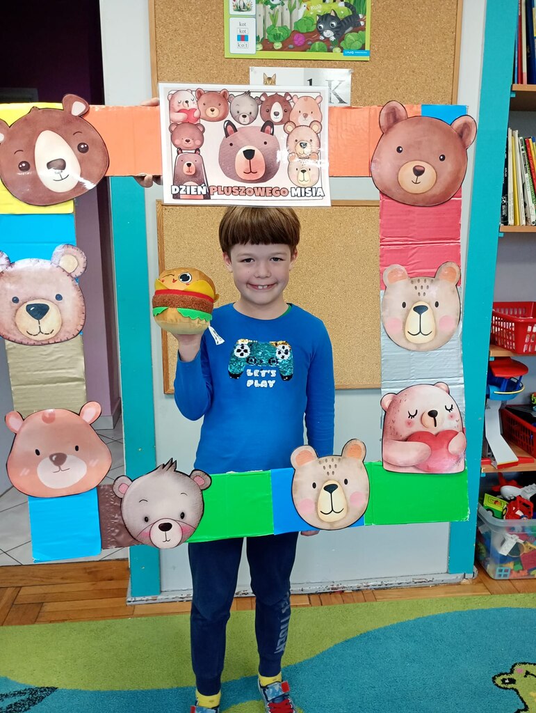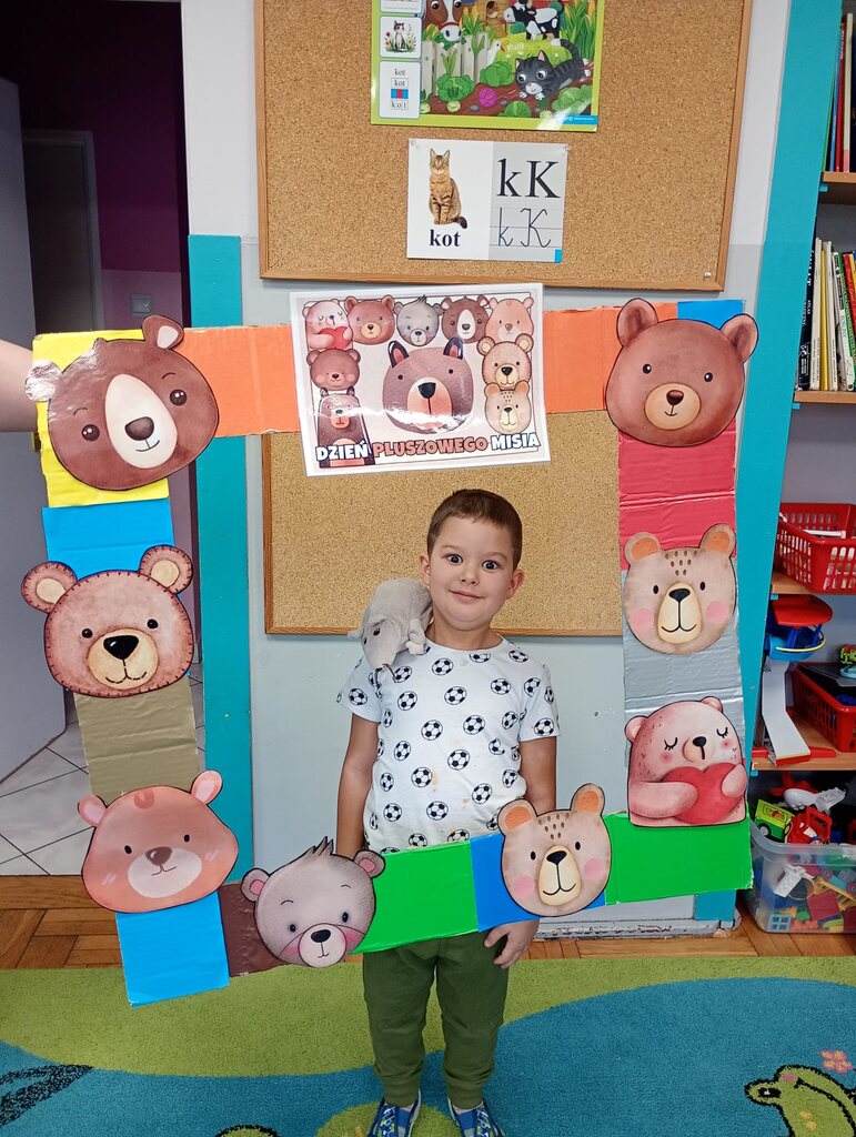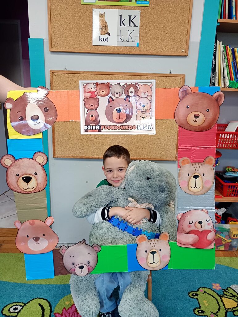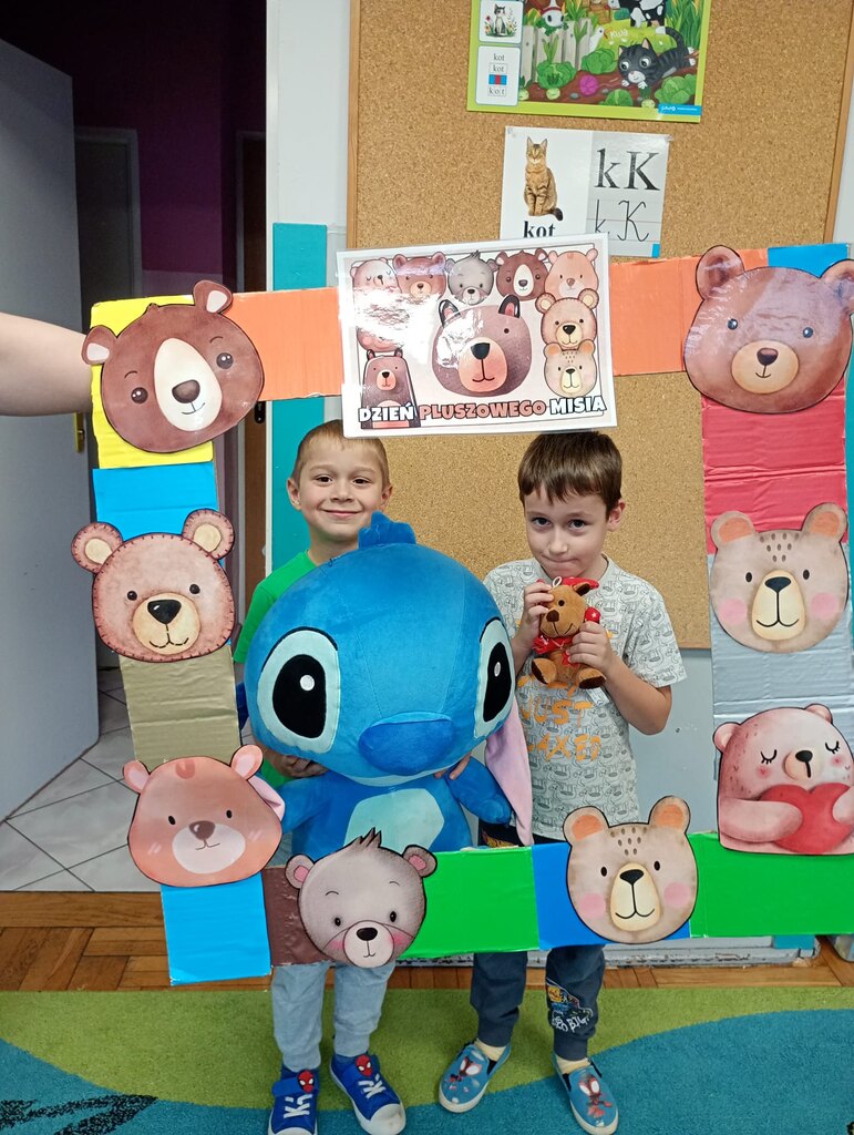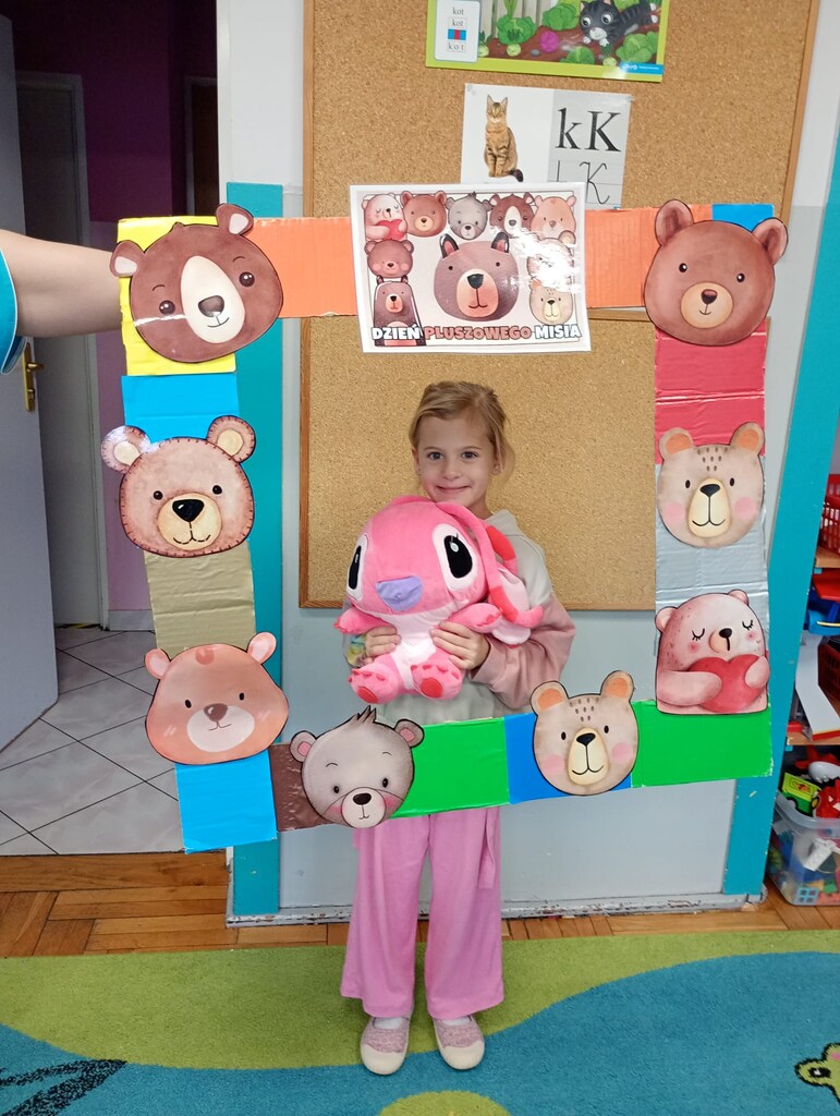 W ciągu dnia bawiliśmy się w zabawy muzyczno-ruchowe, rozwiązywaliśmy zagadki o misiach z bajek, tworzyliśmy „misiowy pociąg” oraz uczestniczyliśmy w zabawach w kole, które pięknie integrowały przedszkolaki z obu grup. Była też misiowa foto budka:)