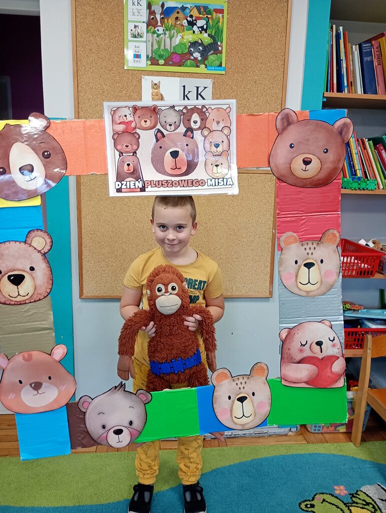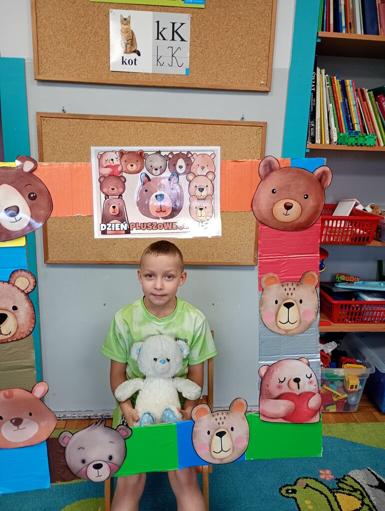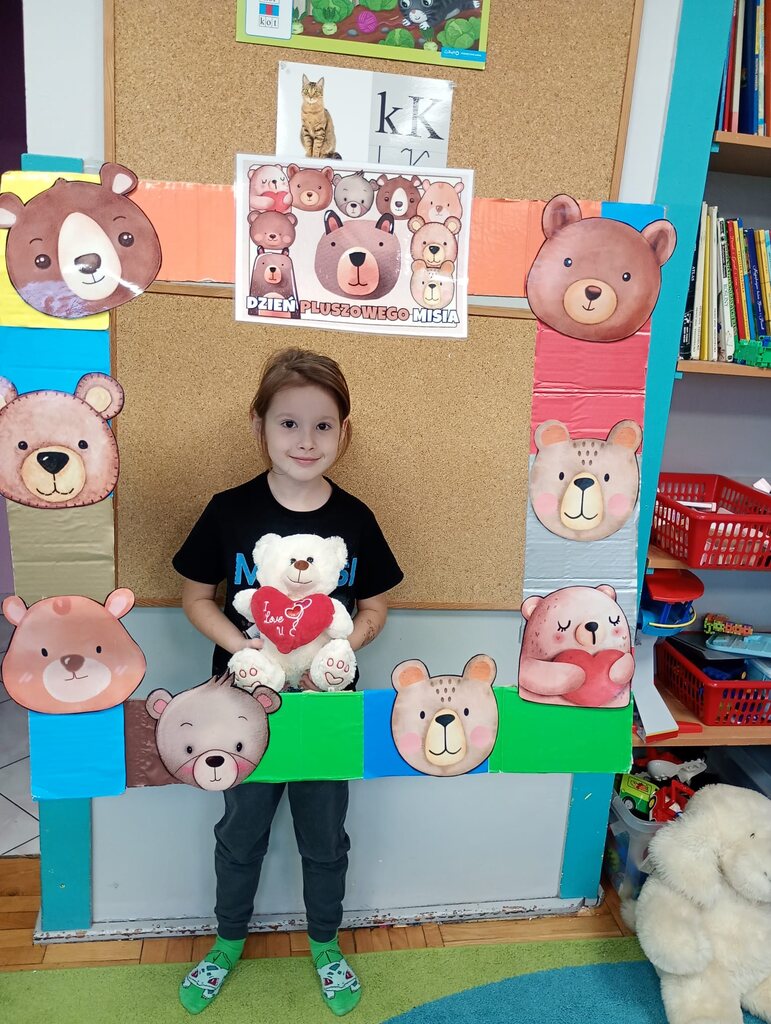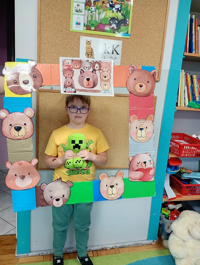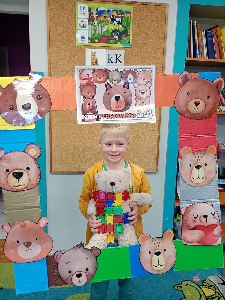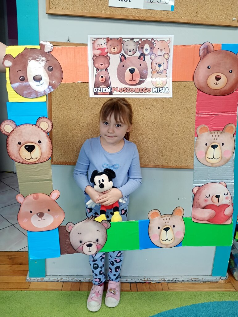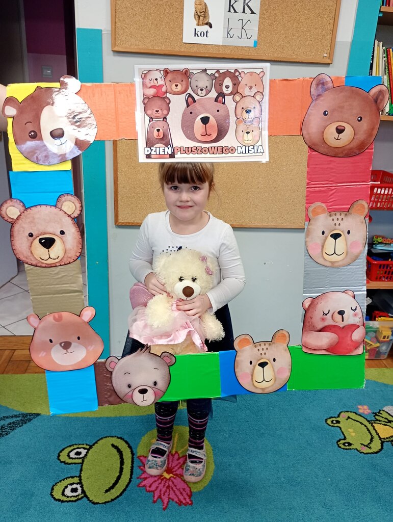 W ciągu dnia bawiliśmy się w zabawy muzyczno-ruchowe, rozwiązywaliśmy zagadki o misiach z bajek, tworzyliśmy „misiowy pociąg” oraz uczestniczyliśmy w zabawach w kole, które pięknie integrowały przedszkolaki z obu grup. Była też misiowa foto budka:)