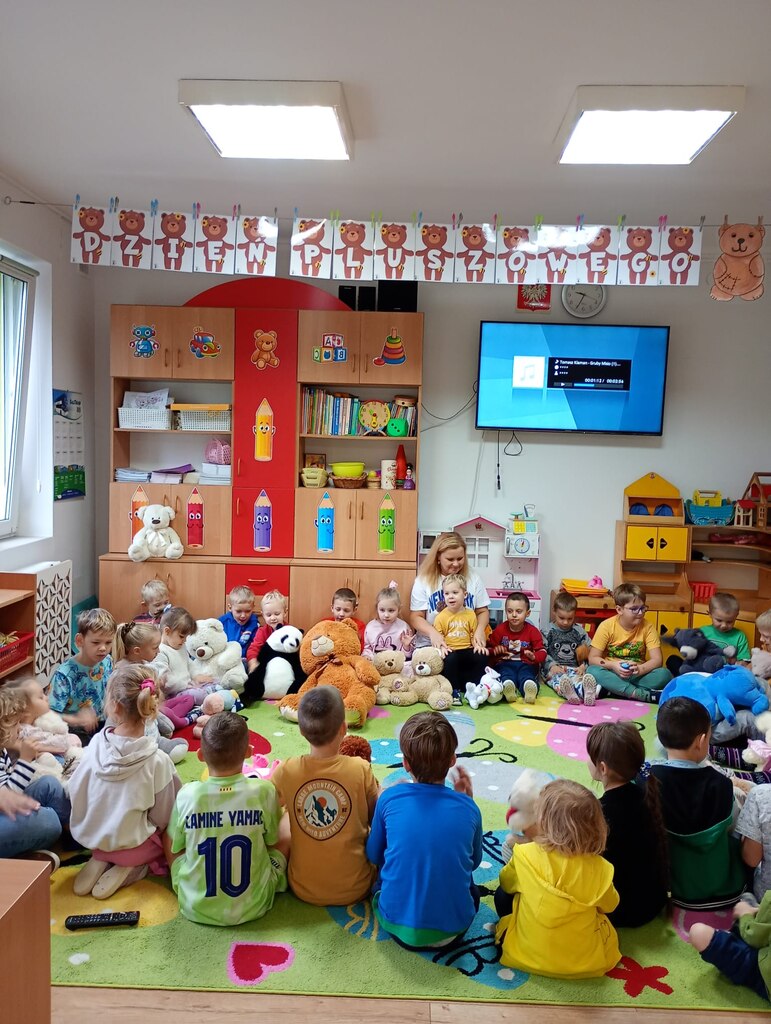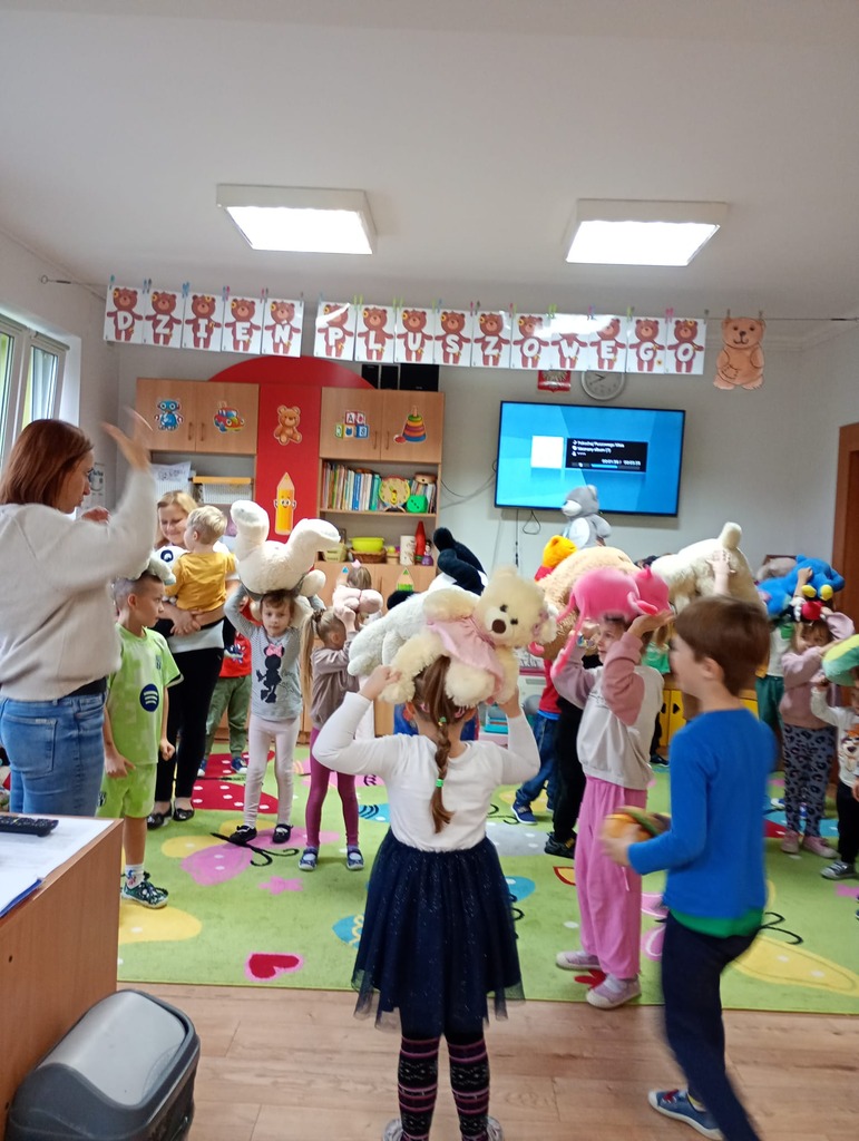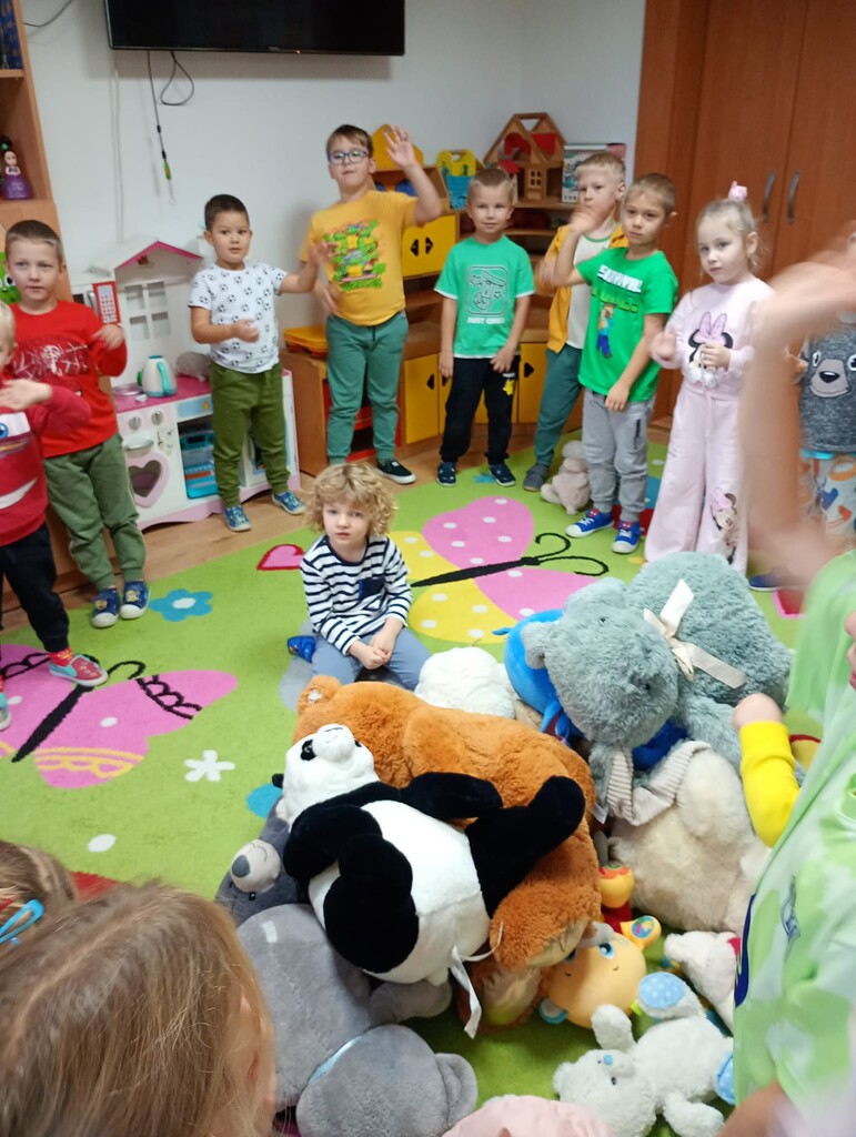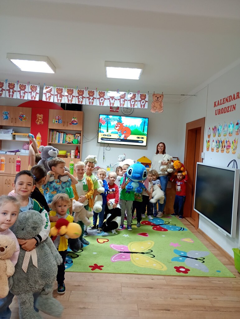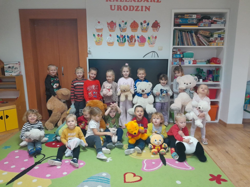 25 listopada w naszym przedszkolu świętowaliśmy Dzień Pluszowego Misia. Tego dnia dzieci przyniosły swoje ulubione pluszaki, a cały dzień upłynął nam na radosnych zabawach z udziałem misiów. Na początku zaśpiewaliśmy naszym misiom „Sto lat”, a potem dzieci poznały historię powstania pluszowego misia – skąd się wziął i dlaczego stał się tak wyjątkową zabawką na całym świecie.