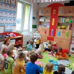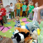 Następnie odbyła się prezentacja misiów – chętne dzieci przedstawiały swoje pluszaki i opowiadały o nich kilka słów. To była świetna okazja, aby poćwiczyć odwagę, mówienie na forum i wzajemne słuchanie.