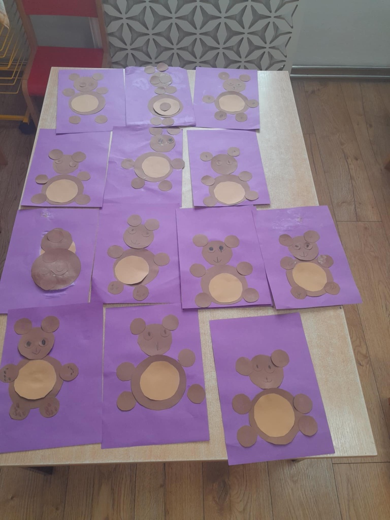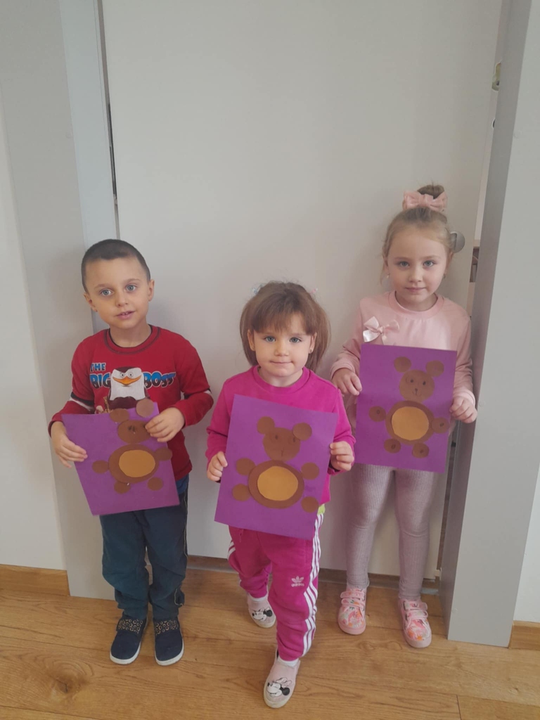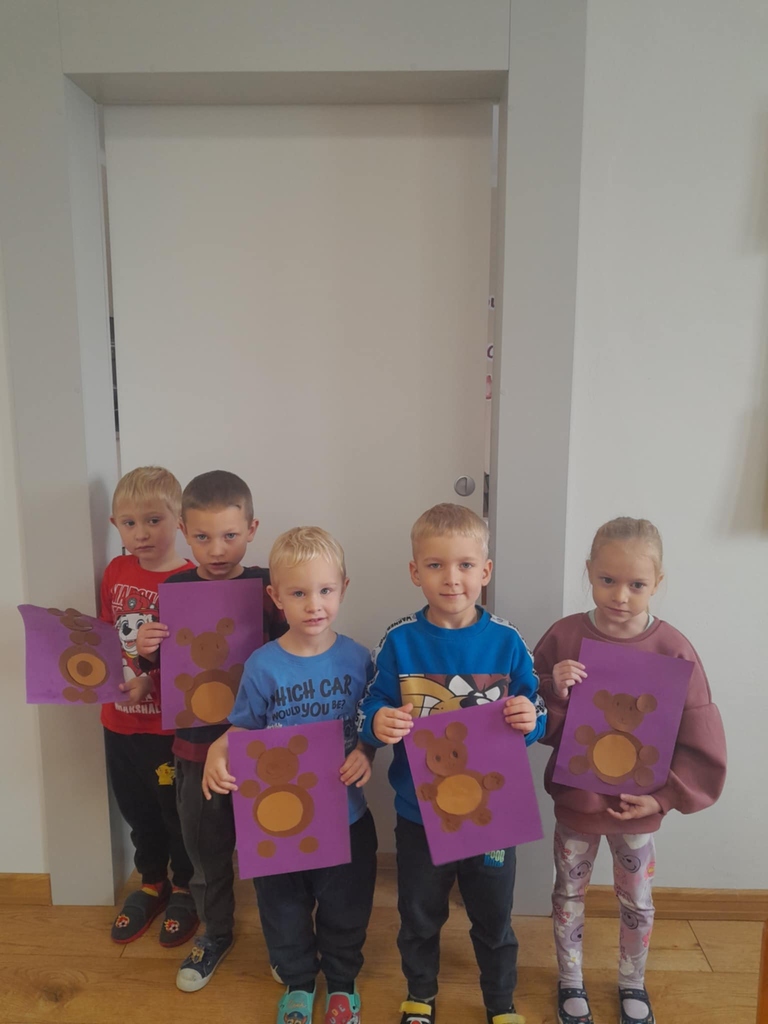 Na zakończenie dzieci wykonały misiowe prace plastyczne, które teraz zdobią nasze szatnie i przypominają o tym wyjątkowym dniu.