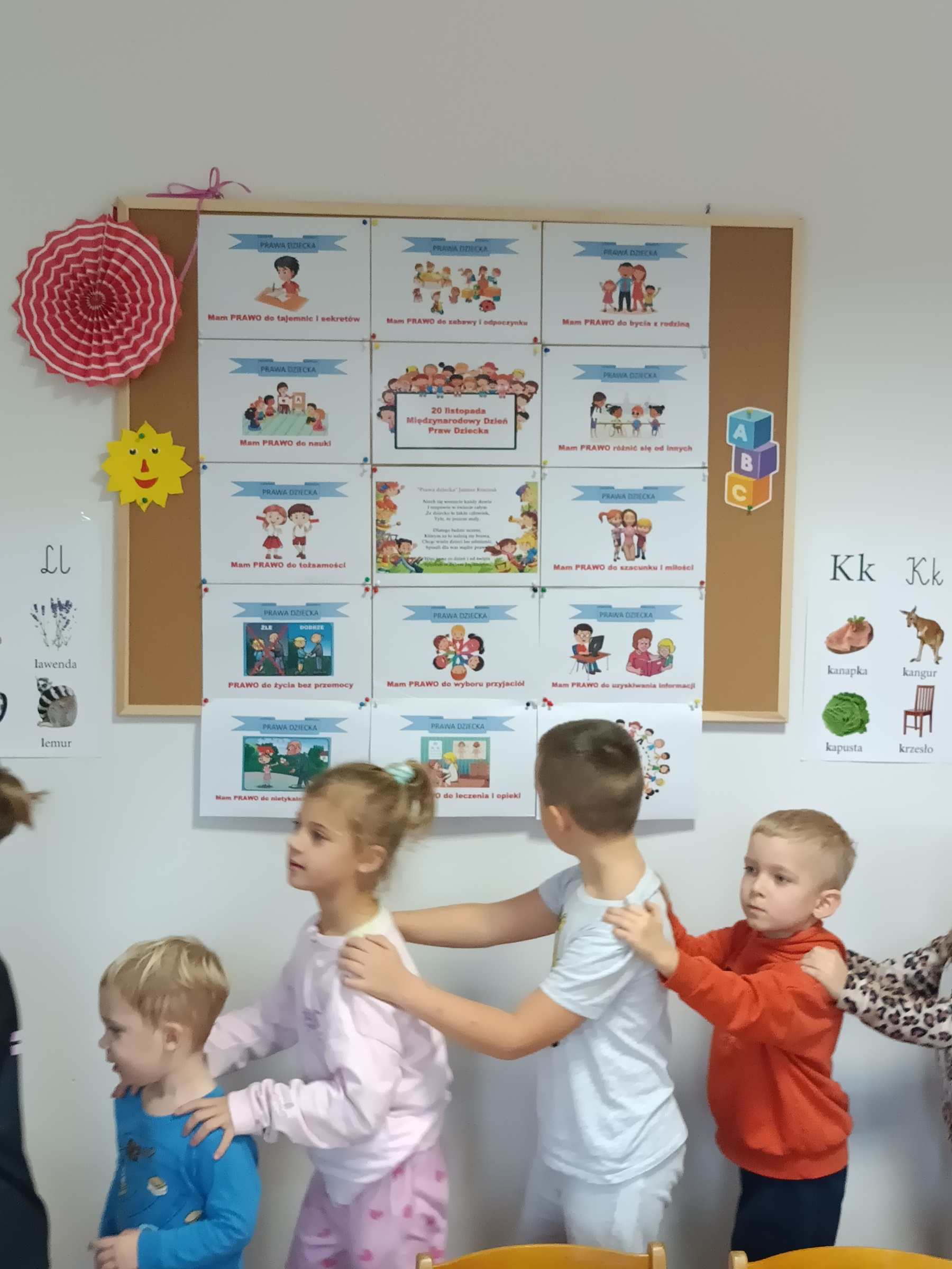 W naszym przedszkolu obchodziliśmy Dzień Praw Dziecka, podczas którego przedszkolaki poznawały i utrwalały najważniejsze prawa wszystkich dzieci. Zajęcia rozpoczęliśmy rozmową kierowaną na temat tego, czym są prawa dziecka i dlaczego są tak ważne. Dzieci obejrzały również krótki film edukacyjny poświęcony Prawom Dzieci, który pomógł im lepiej zrozumieć omawiane treści. Nie zabrakło także aktywności ruchowej – podczas zabawy muzyczno-ruchowej „Moje prawa” dzieci w radosny sposób utrwalały zdobytą wiedzę.