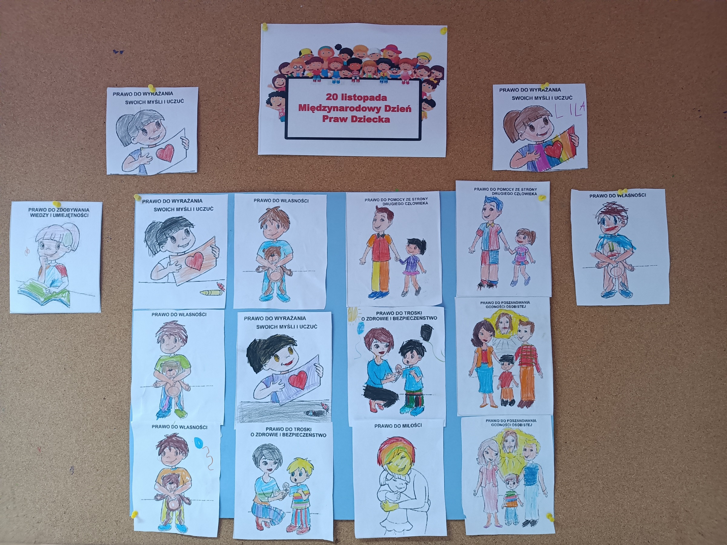 Na zakończenie przedszkolaki wykonały grupowy plakat „Nasze prawa”, który stał się pięknym podsumowaniem całego dnia.