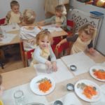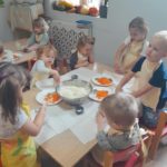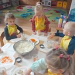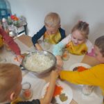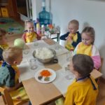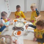 28 października nasze Maluchy wzięły udział w zajęciach kulinarnych podczas, których kisiły kapustę🥬🫙, a także podsumowały swoją wiedzę na temat przetworów na zimę. W czasie zajęć przedszkolaki dowiedziały się iż, kiszona kapusta, oprócz walorów smakowych, jest cennym źródłem wielu witamin. W pierwszej części dzieci miały okazję poznać kapustę wszystkimi zmysłami ( wzrok, smak, zapach, dotyk) i dowiedzieć sie jak dawniej przygotowywano zapasy na zimę. W drugiej części zajęć przedszkolaki zapoznaly się z etapami kiszenia kapusty. Po części teoretycznej nasze Maluchy chętnie zabrały się do kiszenia kapusty w słoikach. Teraz cierpliwie czekamy⏳ , aż kapusta ukiśnie i będzie z niej smaczna surówka!🥗