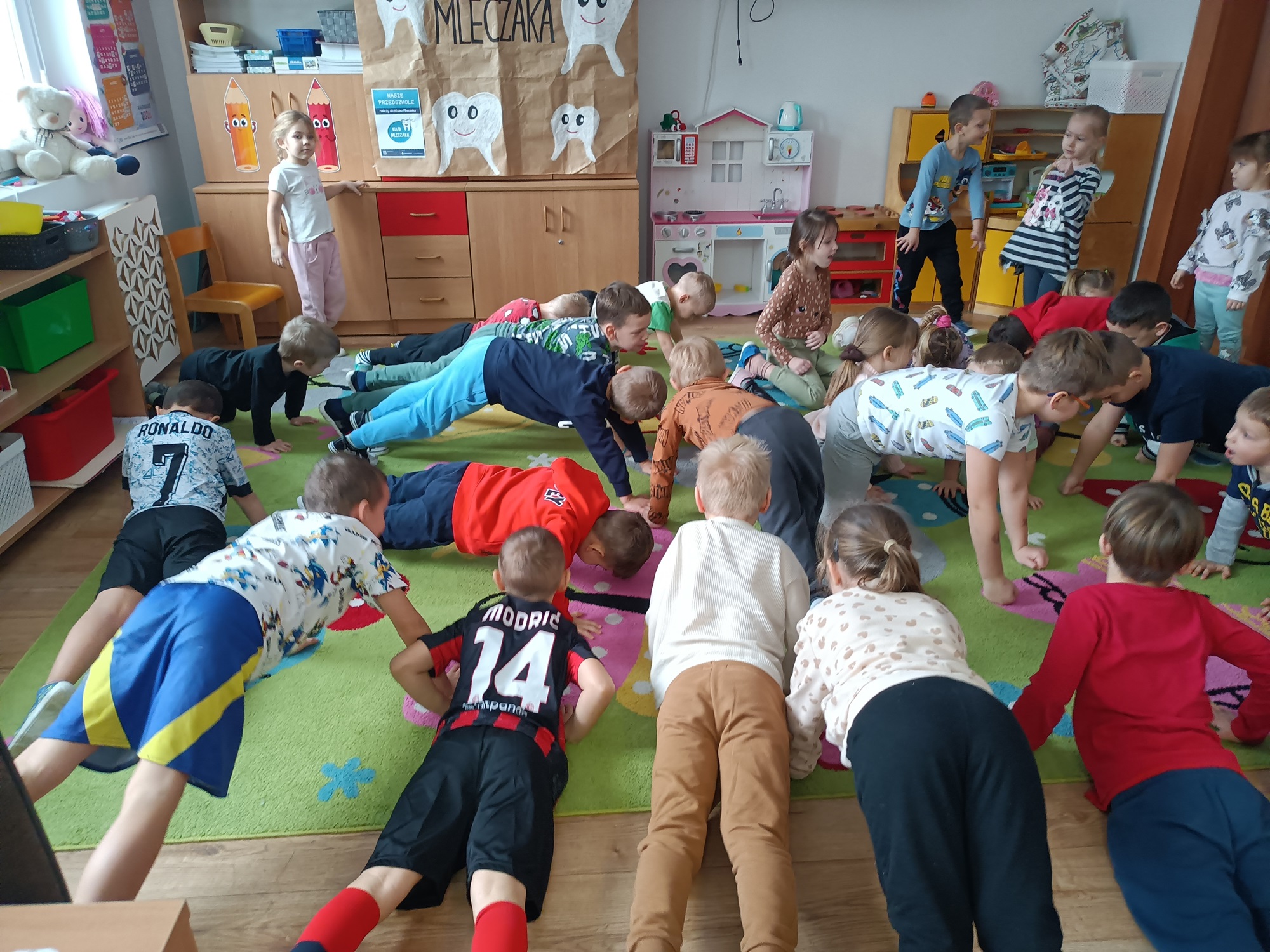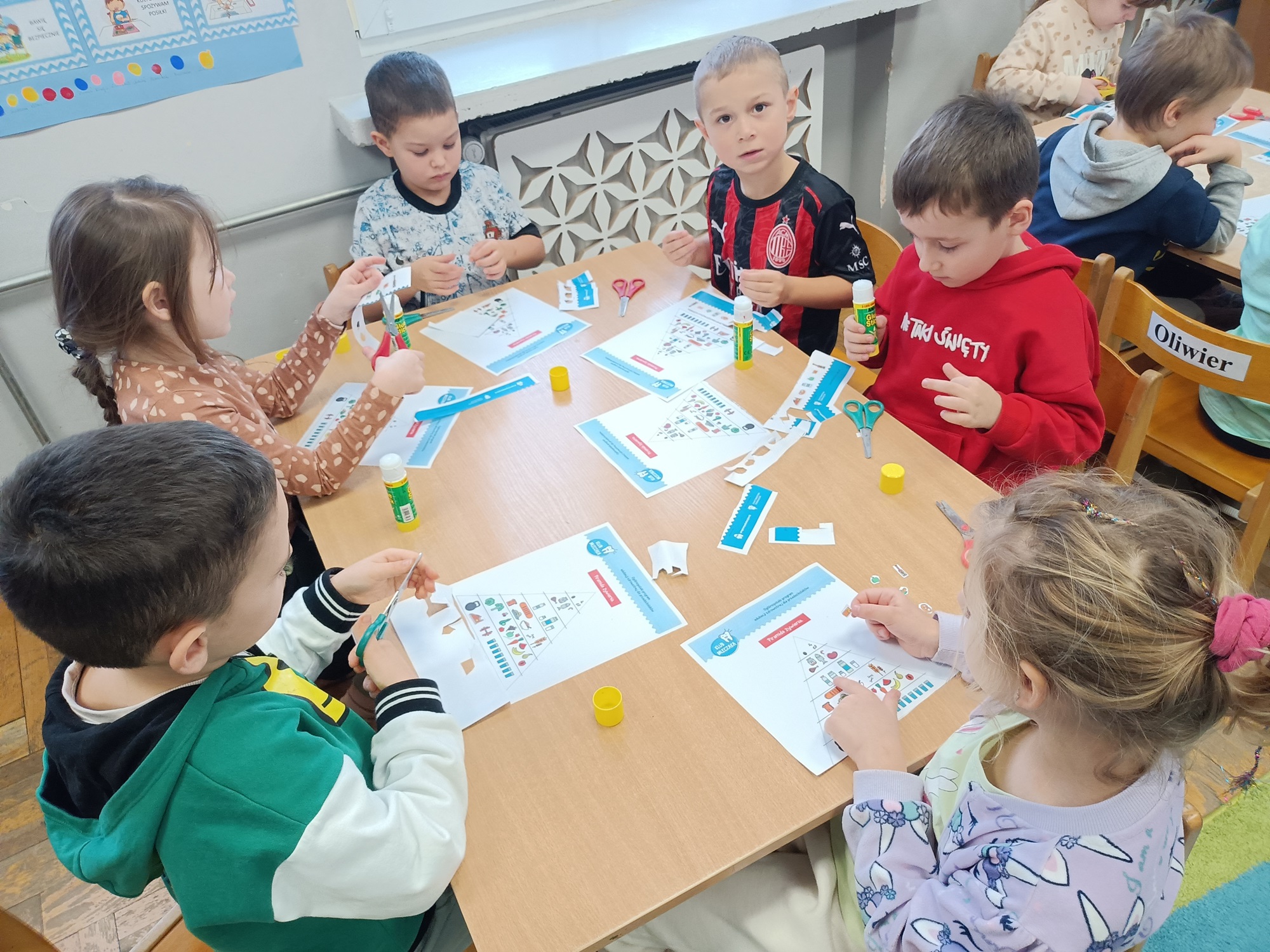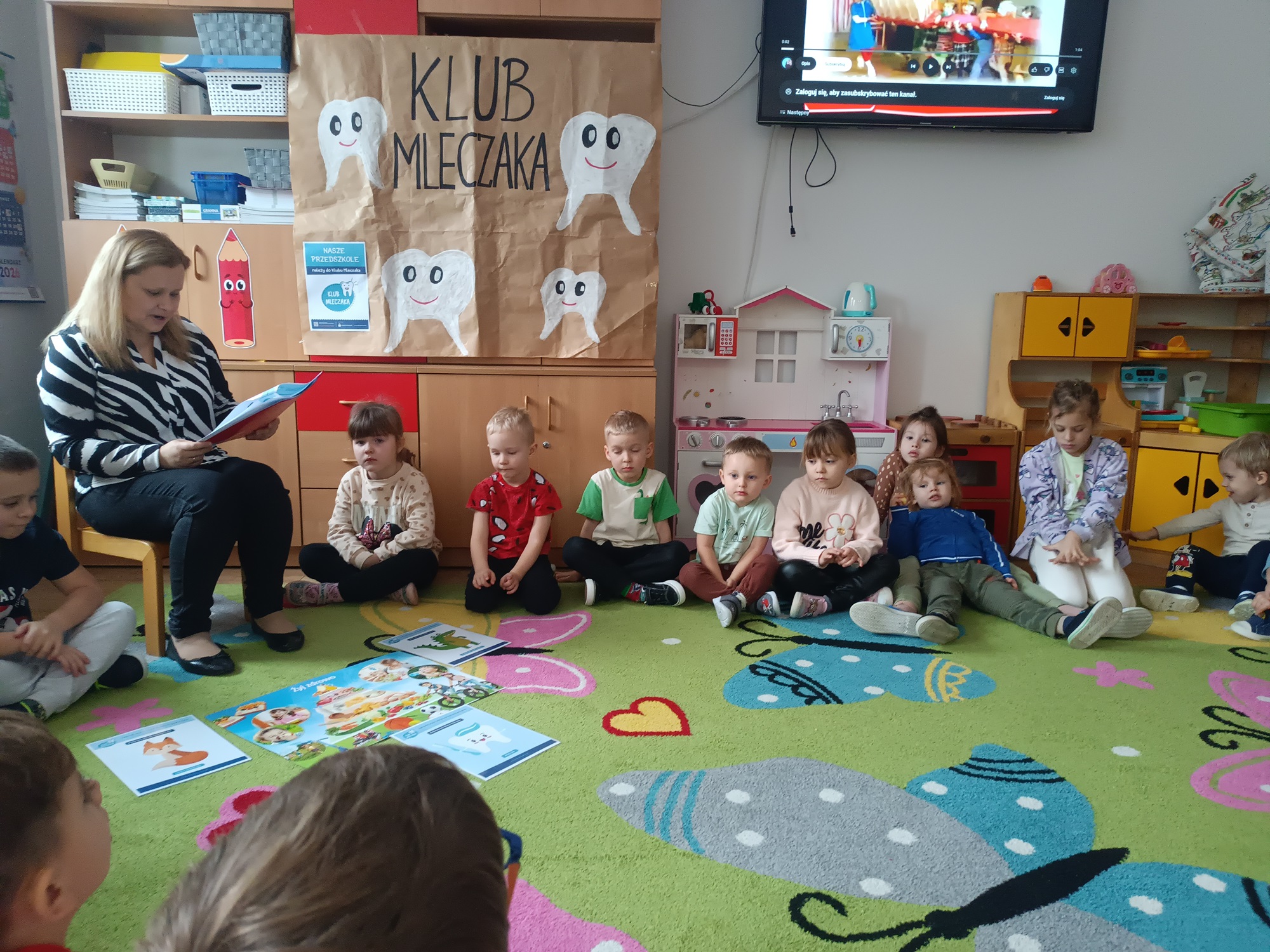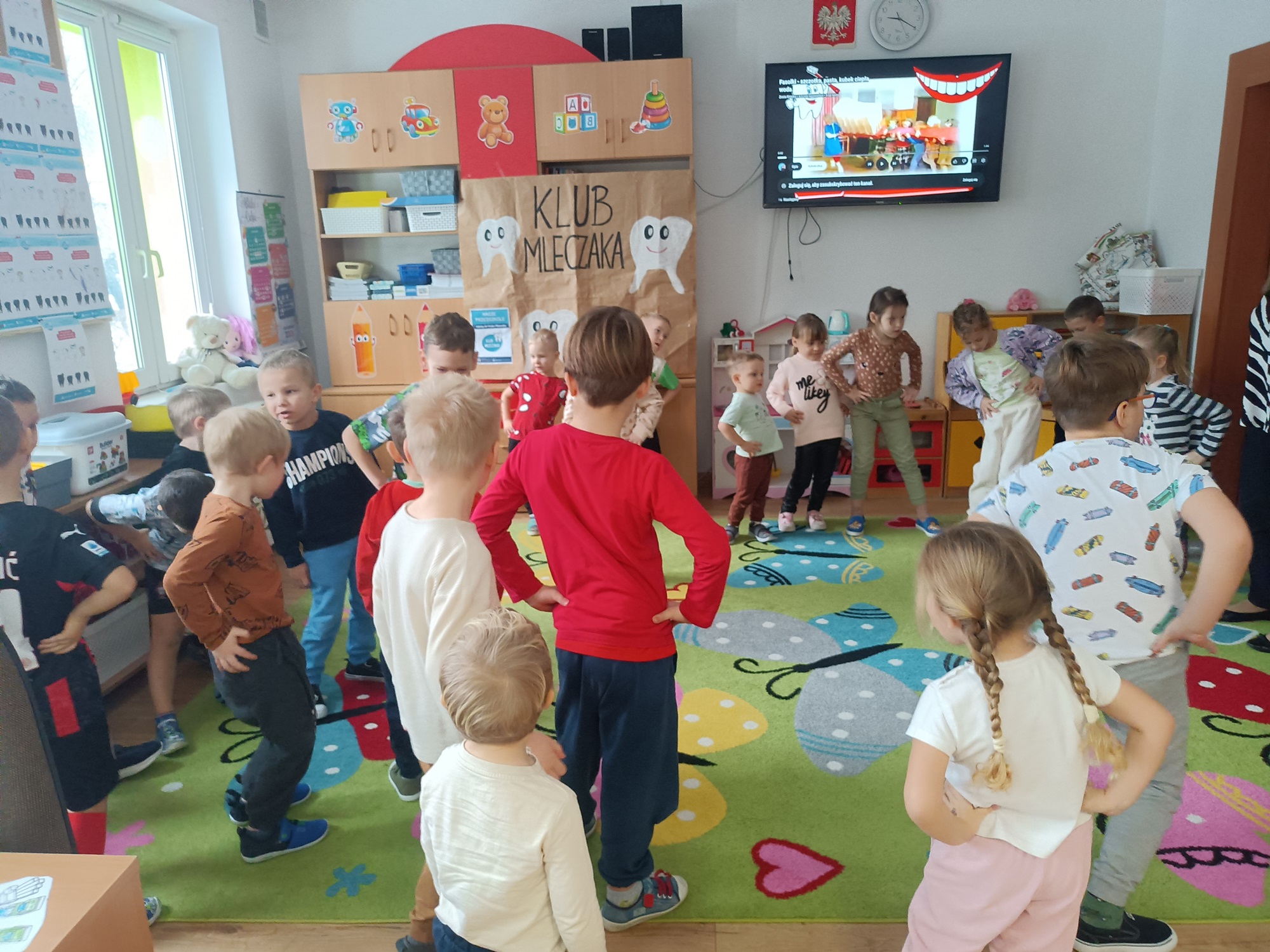 W czwartek 7 stycznia 2026 nasze przedszkolaki zrealizowały kolejny scenariusz programu edukacyjnego Klubu Mleczaka pt:” Zdrowo jemy z Liscicą Karoliną”. Dzieci wysłuchały opowiadania o przygodach Lisicy, która stosuje zasady piramidy żywienia🥦🍎. Dlatego też przypomnieliśmy poszczególne szczeble piramidy, podkreślając co warto jeść, a czego unikać, aby być zdrowym i mieć piękne ząbki. Przedszkolaki dowiedziały się jak ważna w naszym życiu jest aktywność fizyczna. Wspólnie wykonaliśmy ćwiczenia gimnastyczne 🤸 i zaśpiewaliśmy znaną piosenkę ” Myję zęby”🎶🪥. Na koniec przedszkolaki wykonały kartę pracy – piramidę żywienia.
