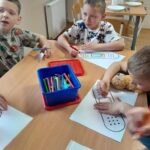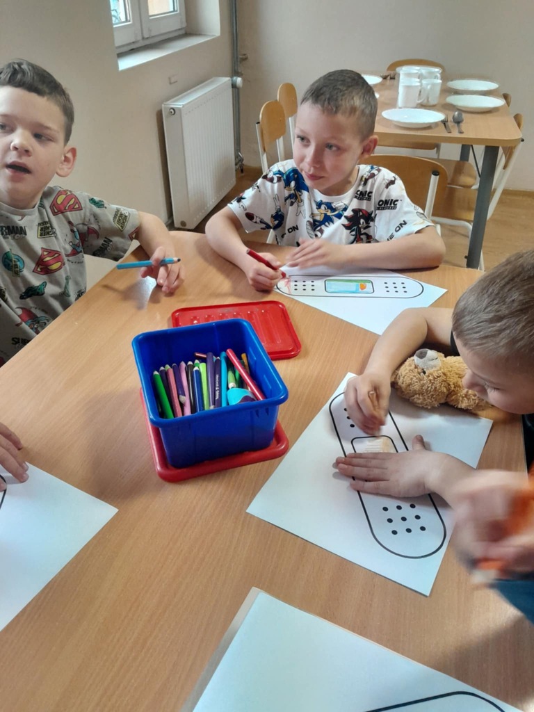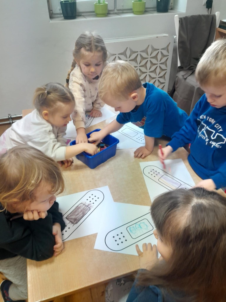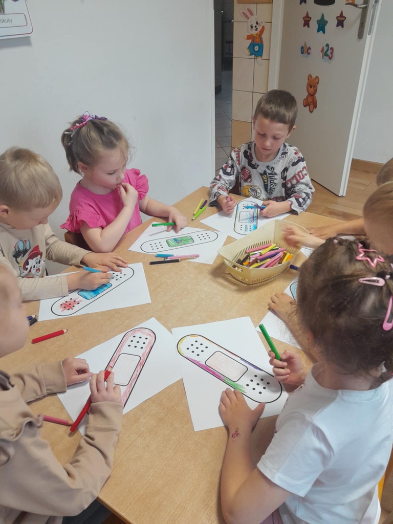 Na zakończenie dzieci wykonały pracę plastyczną – kolorowały i ozdabiały plasterki według własnego pomysłu.