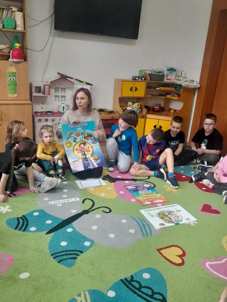 16 marca odbyły się pierwsze zajęcia w ramach projektu. Tematem spotkania było zdrowe odżywianie. Dzieci poznały piramidę zdrowego żywienia, dowiedziały się, jakie produkty warto spożywać codziennie, a których należy unikać. Przedszkolaki chętnie uczestniczyły w rozmowach, rozwiązywały zagadki oraz brały udział w zabawach edukacyjnych związanych z tematyką zdrowego stylu życia.