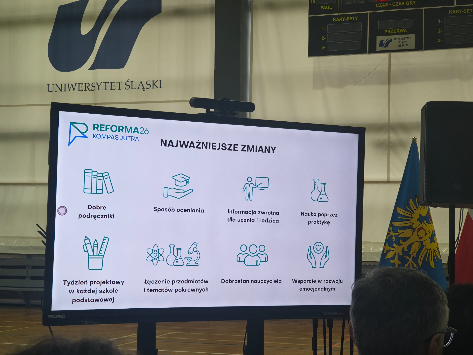 8 kwietnia dyrekcja naszej szkoły wraz z nauczycielami przedmiotów przyrodniczych uczestniczyła w spotkaniu zorganizowanym na Wydziale Sztuki i Nauk o Edukacji Uniwersytetu Śląskiego w Cieszynie. Wydarzenie było częścią ogólnopolskiej trasy „Reforma 26. Kompas Jutra”, której celem jest przedstawienie założeń planowanych zmian w systemie edukacji.