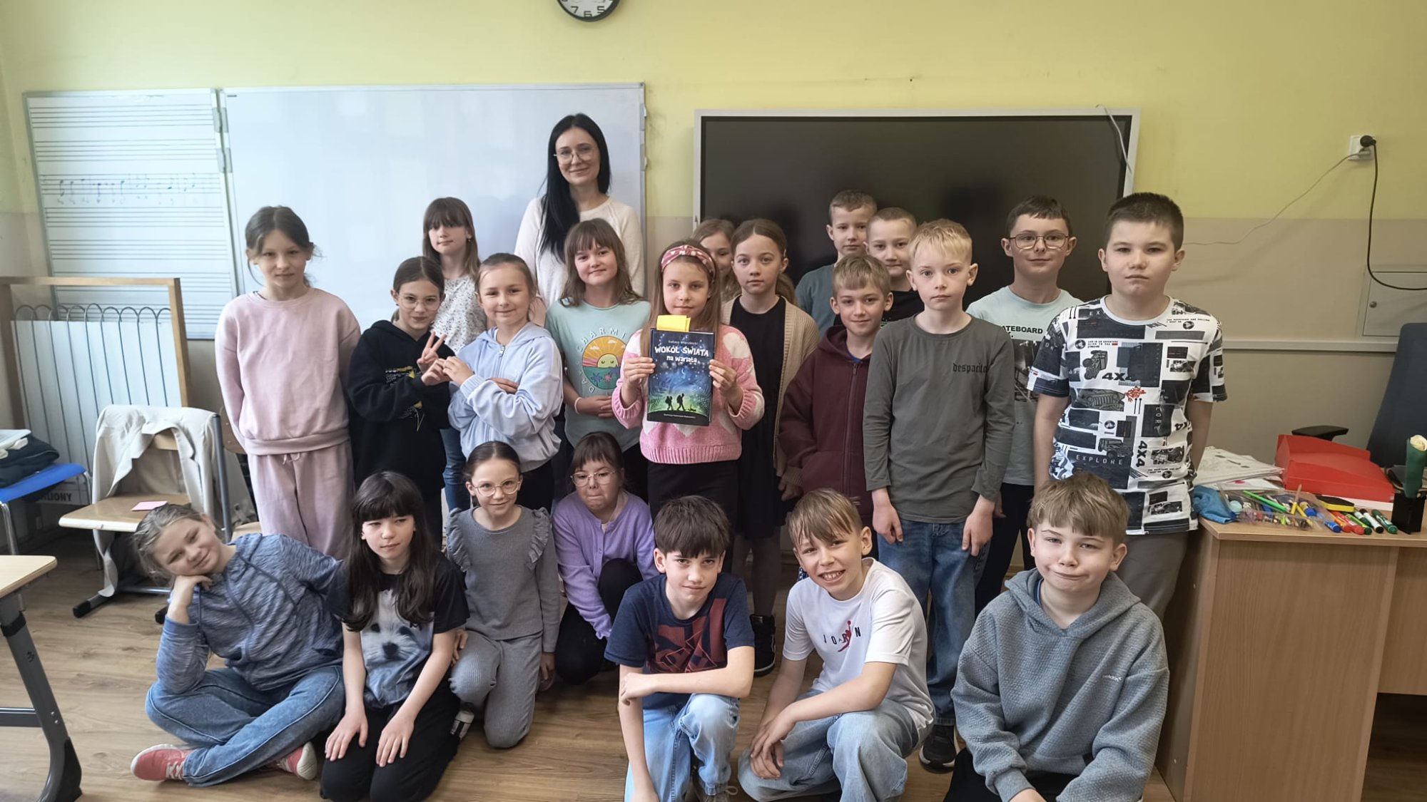 W poniedziałek 13 kwietnia nasza klasa wzięła udział w wyjątkowych zajęciach bibliotecznych prowadzonych przez Panią Agnieszkę Żurat. Przenieśliśmy się w daleki świat śladami niezwykłych podróżników – Tadeusza i Leona, bohaterów książki Łukasza Wierzbickiego pt. „Wokół świata na wariata”.