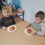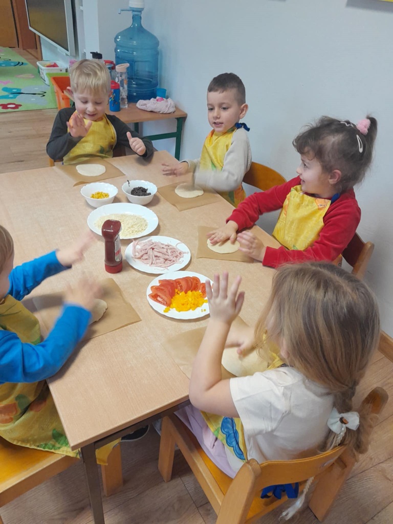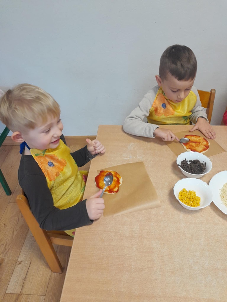 9 lutego w naszym przedszkolu obchodziliśmy Dzień Pizzy! Najpierw obejrzeliśmy krótki film edukacyjny o tym, skąd pochodzi pizza i jakie składniki są najlepsze. Później wzięliśmy się do pracy – własnoręcznie robiliśmy pizzę. Każdy mógł wybrać swoje ulubione dodatki, a potem z radością ją zjedliśmy. Nie zabrakło też nauki – na kartach pracy liczyliśmy składniki do pizzy i ćwiczyliśmy grafomotorykę.