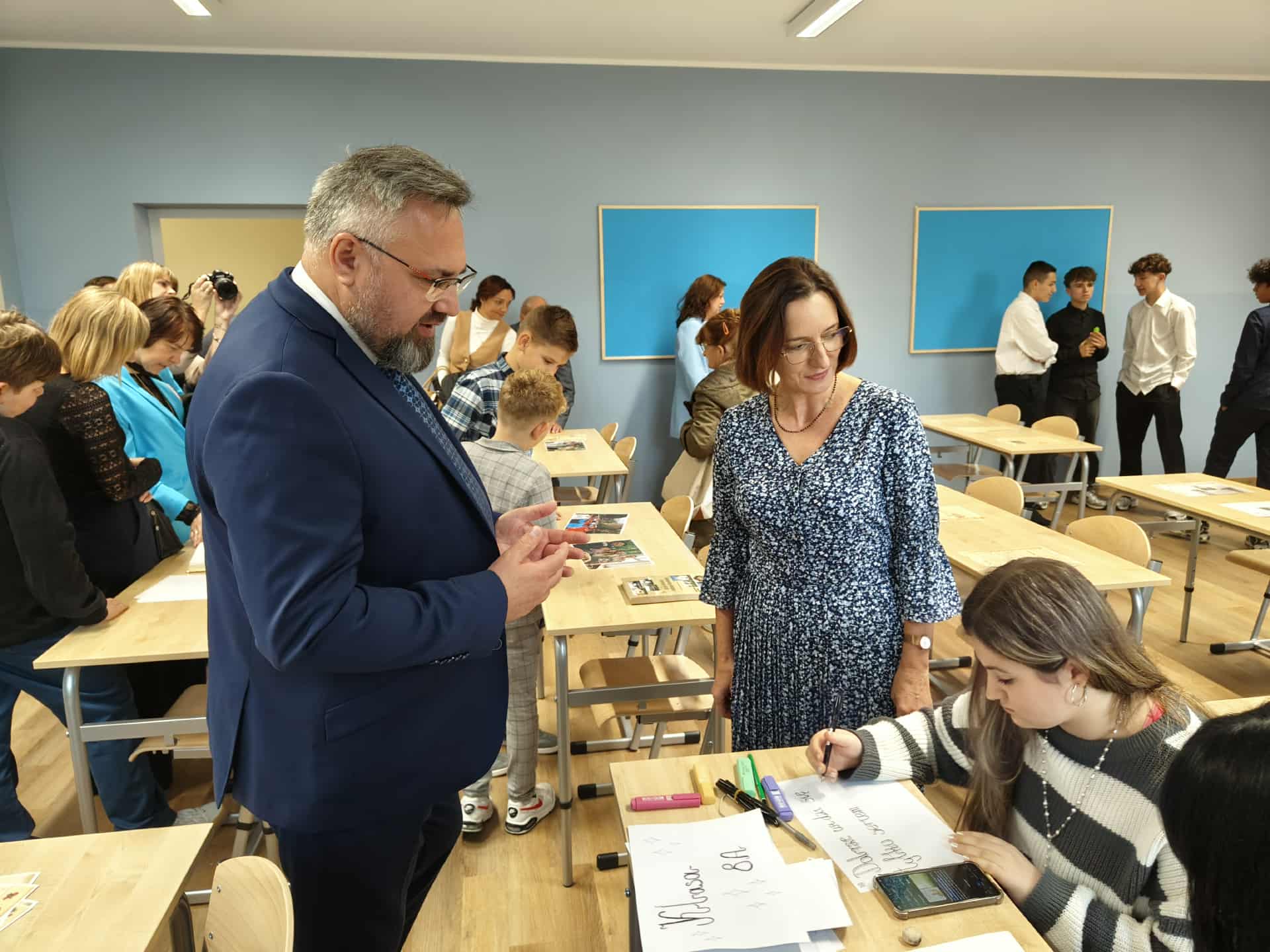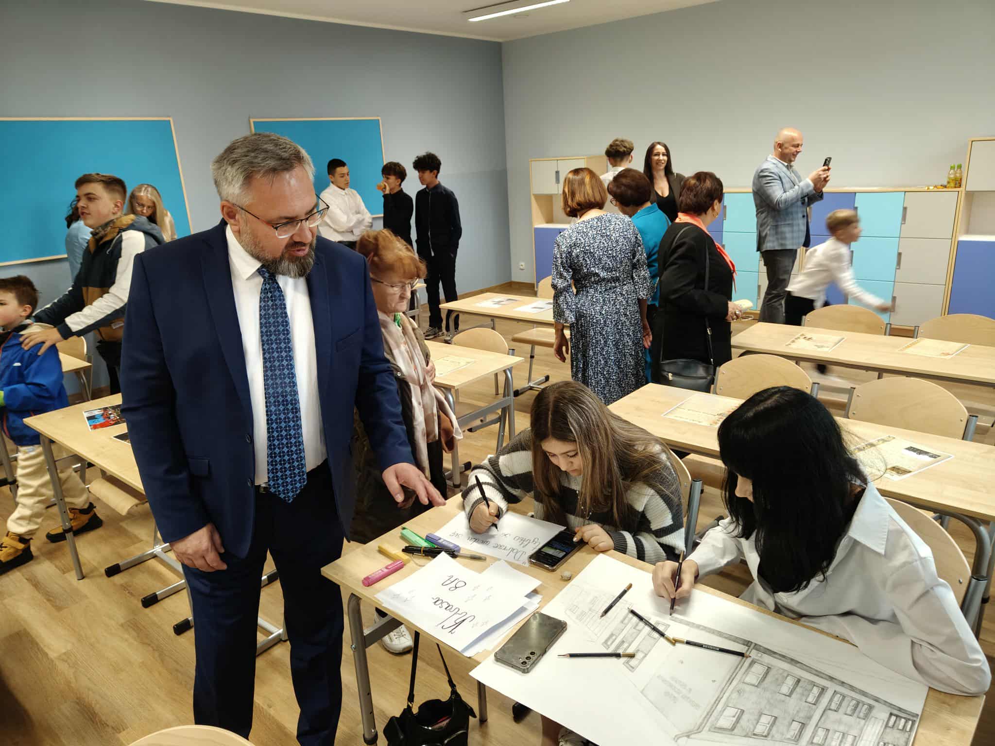 Po części artystycznej nadszedł czas na podziękowania dla wszystkich, którzy przyczynili się do powstania tej nowoczesnej przestrzeni. Następnie uczestnicy uroczystości mieli okazję zwiedzić nowe sale i pomieszczenia – jasne, przestronne i pięknie urządzone, które od razu zachwyciły wszystkich gości. Sale lekcyjne, pomieszczenia administracyjne i przyjazne przestrzenie wspólne tworzą inspirujące miejsce, w którym wkrótce będzie toczyło się codzienne życie szkoły.