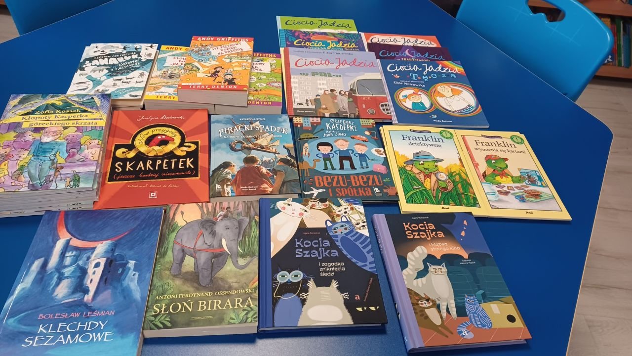 W ostatnim czasie nasza biblioteka wzbogaciła się o 92 nowe pozycje książkowe. Są wśród nich książki dla młodszych czytelników, takie jak seria o Franklinie autorstwa Paulette Bourgeois, książki Elizy Piotrowskiej „Ciocia Jadzia”, czy „Kocia szajka” Agaty Romaniuk. Na uczniów klas starszych czekają z kolei pozycje z serii „Wojownicy” Erin Hunter, „Percy Jackson i bogowie olimpijscy” Ricka Riordana oraz wiele, wiele innych.