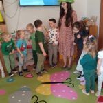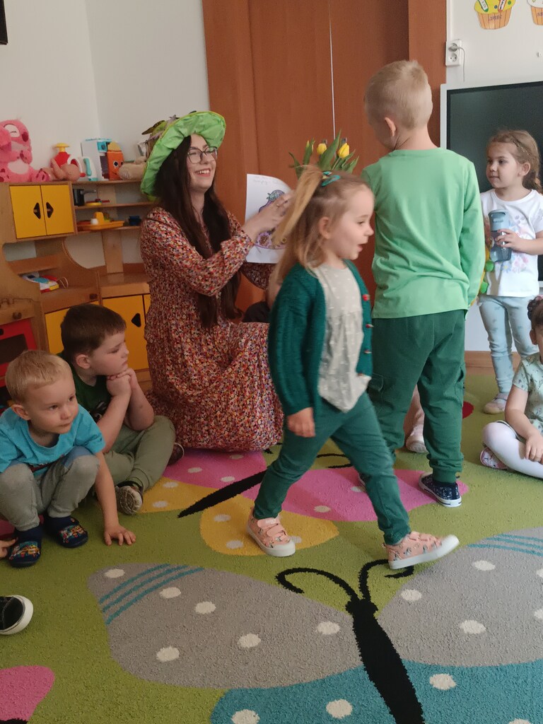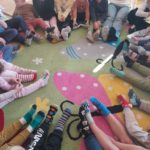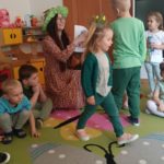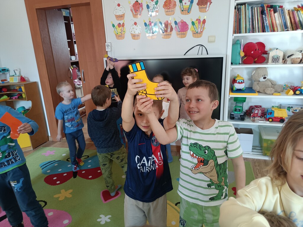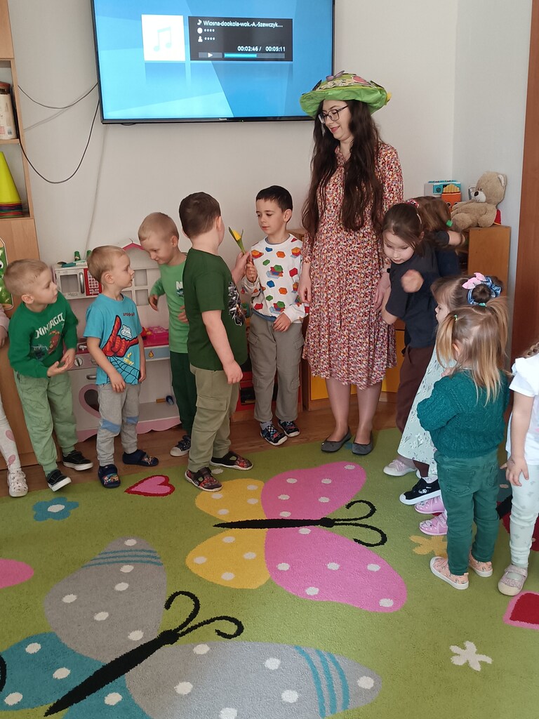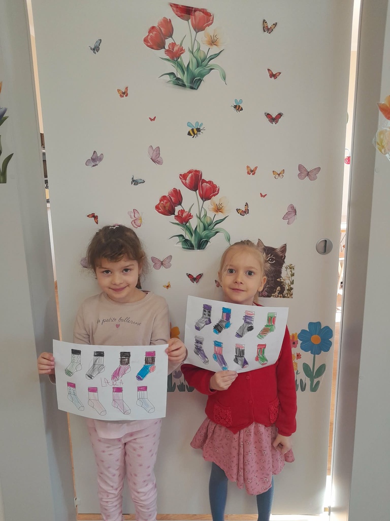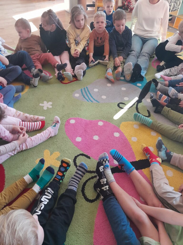 W dniach 20 i 23 marca w naszym przedszkolu obchodziliśmy Powitanie Wiosny oraz Dzień Kolorowej Skarpetki. Odwiedziła nas Pani Wiosna, która opowiedziała dzieciom o pierwszych oznakach wiosny, odpowiadała na ich pytania i wspólnie bawiliśmy się w kole przy piosence „Wiosna, wiosna” oraz w zabawie z tulipanem. Dzień Kolorowej Skarpetki obchodziliśmy w poniedziałek – obejrzeliśmy film o Fredzi, rozmawialiśmy o różnicach między ludźmi, o szacunku, tolerancji i przyjaźni.