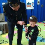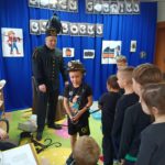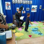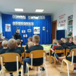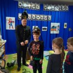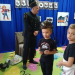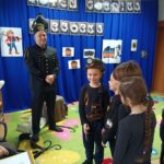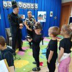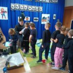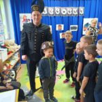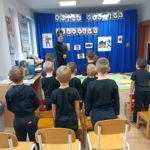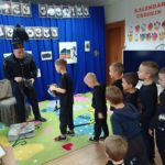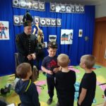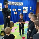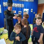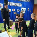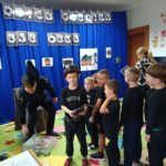 Pan Adrian opowiedział dzieciom o pracy w kopalni, pokazał galowy mundur oraz specjalistyczny sprzęt, którego górnicy używają na co dzień. Na koniec czekała słodka niespodzianka – cukierki rozdane przez naszego gościa.