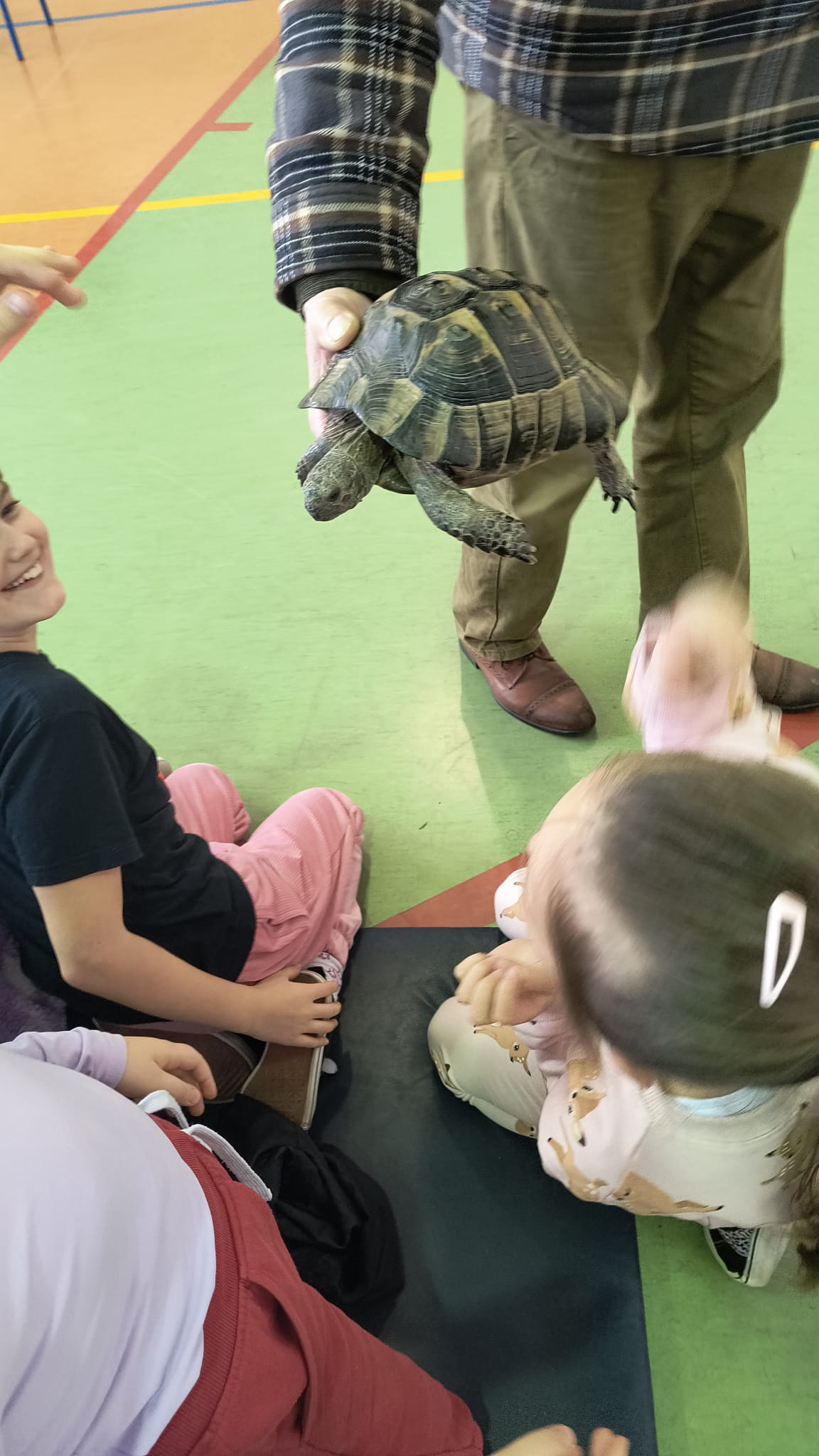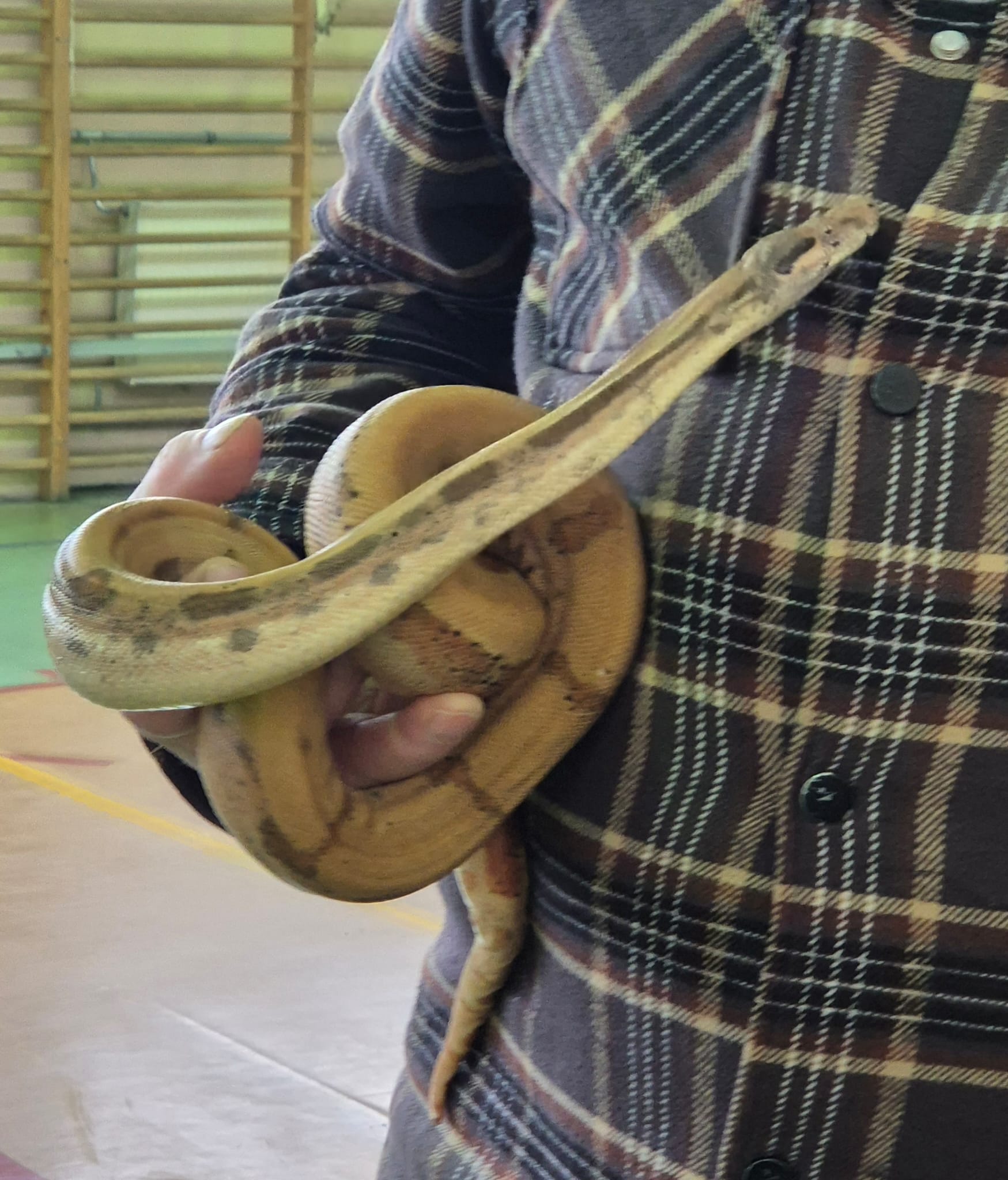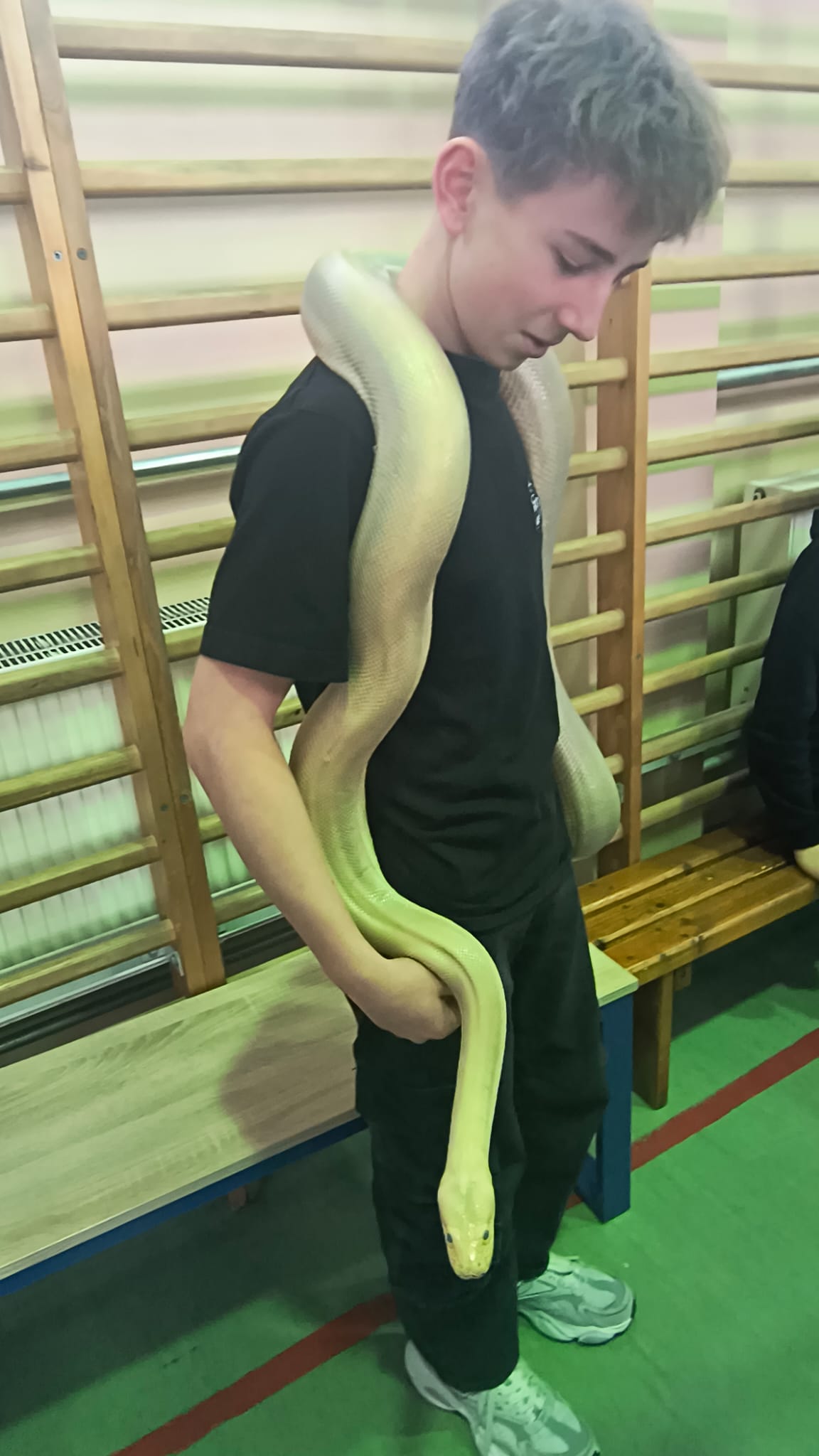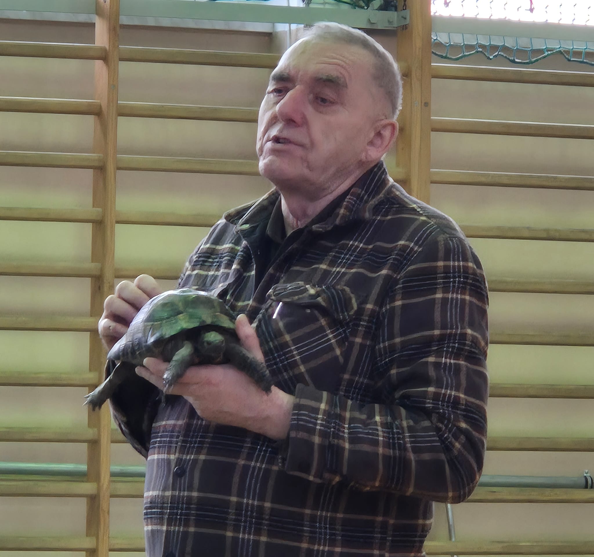 przez Pana Andrzeja Pająka – miłośnika zwierząt i pasjonata świata natury. Podczas spotkania dzieci poznały fascynujące zwyczaje gadów i płazów, które Pan Pająk przywiózł ze sobą do szkoły. Mogły zobaczyć z bliska, a nawet dotknąć niektóre z okazów, co wywołało wiele pozytywnych emocji i ciekawości świata.