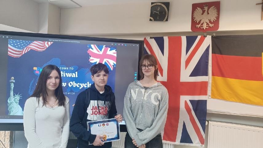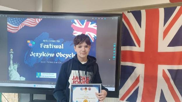 W dniu 13 lutego uczniowie naszej szkoły: Roksana Kożdoń, Justyna Kubowicz i Paweł Fik wzięli udział w XIV Festiwalu Języków Obcych, który został zorganizowany przez Zespół Szkół Ogólnokształcących im. Jana Pawła II w Pawłowicach. Najpierw uczniowie rozwiązywali quiz, który obejmował wiedzę językową głównie w zakresie języka angielskiego, z elementami języka niemieckiego i francuskiego. Następnie uczestniczyli w warsztatach z native speakerem oraz z uczniami jednej z klas dwujęzycznych. W Festiwalu Języków Obcych brali udział przedstawiciele 12 szkół.