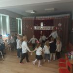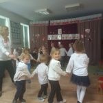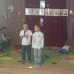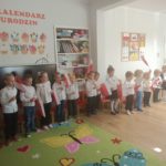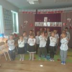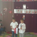 Podczas uroczystości przedszkolaki zaprezentowały wiersze i piosenki o Polsce. Starszaki pięknie opowiadały o tym, czym jest Polska, a maluszki wzruszająco powiedziały wiersz „Kto ty jesteś?”. Następnie maluszki zaśpiewały w kole piosenkę „Jesteśmy Polką i Polakiem”, a potem wszyscy z dumą i na baczność odśpiewaliśmy „Mazurek Dąbrowskiego”. Na zakończenie grupa starsza zaprezentowała piosenkę „Orzeł Biały” wraz z improwizacją ruchową.