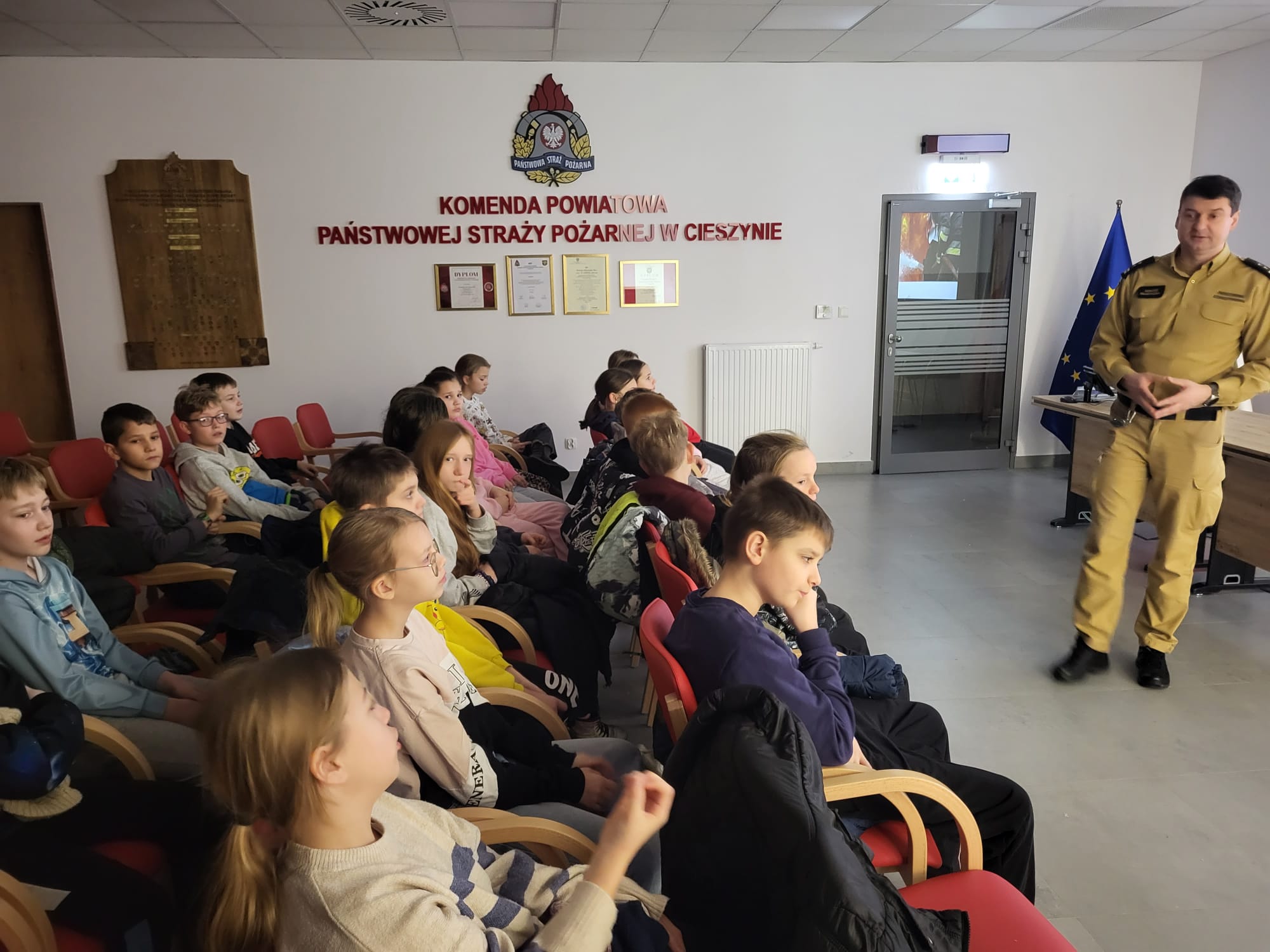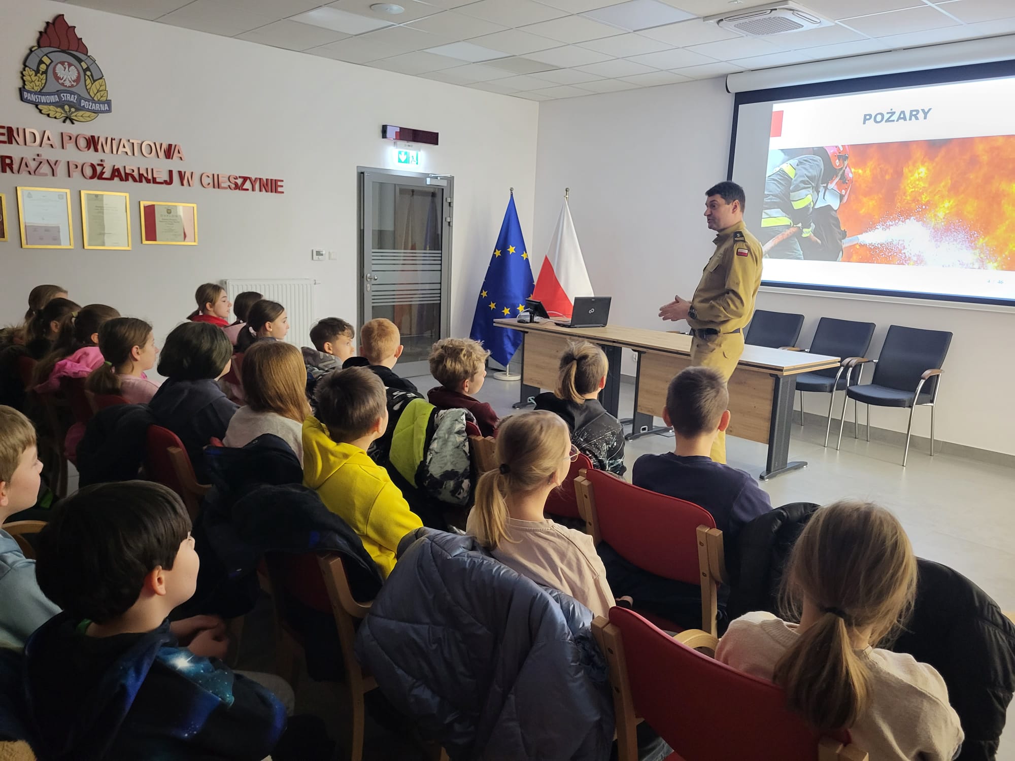 28 stycznia klasa IV udała się na wycieczkę do Komendy Powiatowej Państwowej Straży Pożarnej w Cieszynie. Uczniowie brali udział w warsztatach w nowo otwartej sali edukacyjnej „OGNIK”, stworzonej z myślą o bezpieczeństwie i szerzeniu wiedzy o zagrożeniach pożarowych oraz zasadach postępowania w sytuacjach kryzysowych.