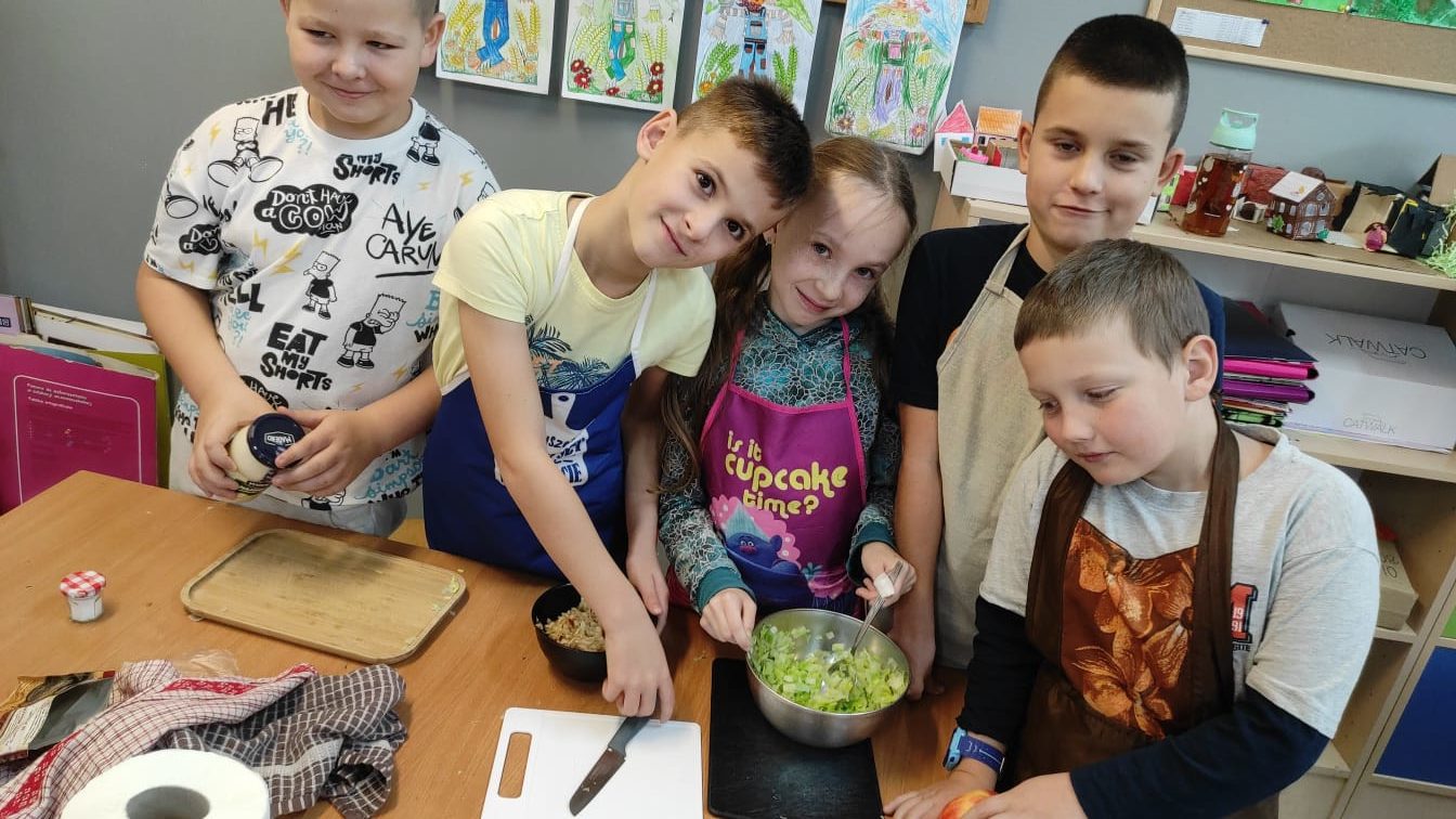 W ramach zajęć praktycznych dzieci przygotowały surówki jesienne z sezonowych warzyw – m.in. z marchewki, jabłka, kapusty i buraków. Uczyły się przy tym zasad higieny, bezpiecznego posługiwania się przyborami kuchennymi oraz współpracy w grupie.