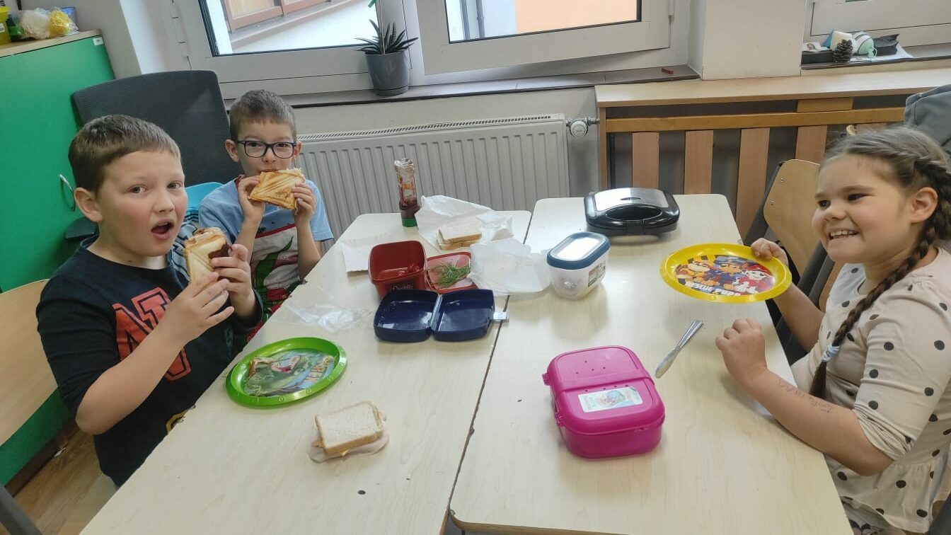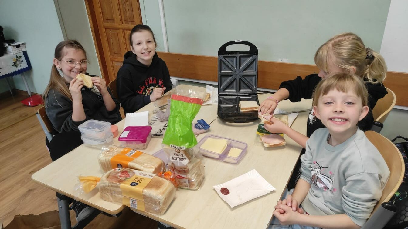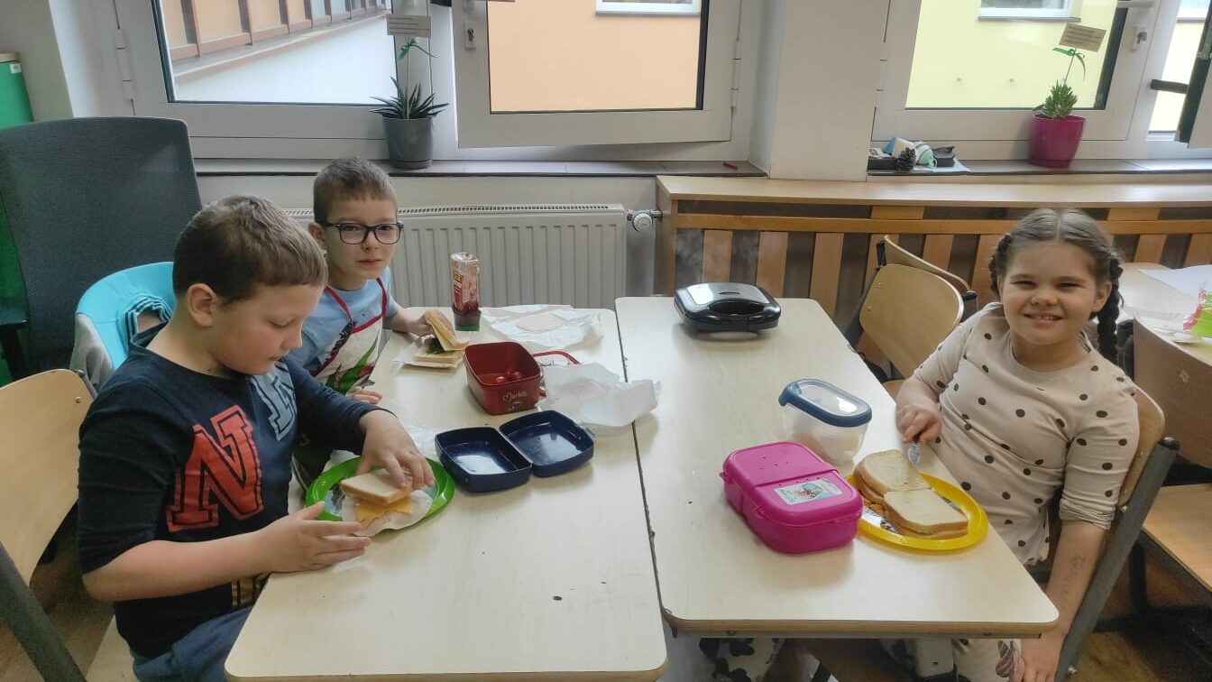 Podczas zajęć edukacyjnych uczniowie mieli okazję wcielić się w małych kucharzy i przygotować własne, zdrowe śniadanie. Pracując w grupach, dzieci samodzielnie komponowały posiłki, dbając nie tylko o ich smak, ale również o estetykę i wartości odżywcze.